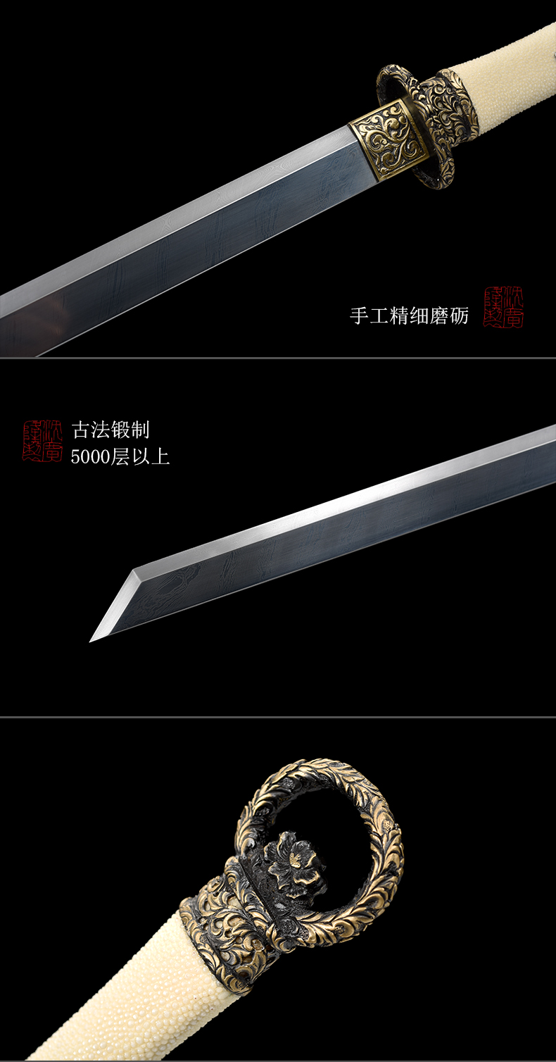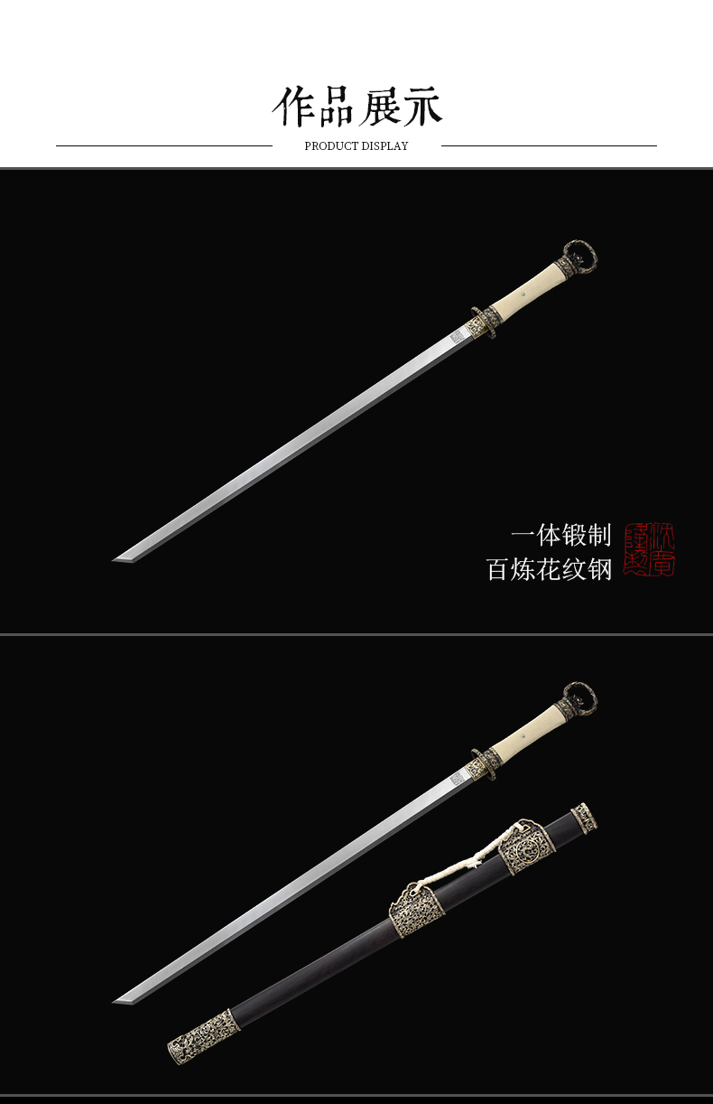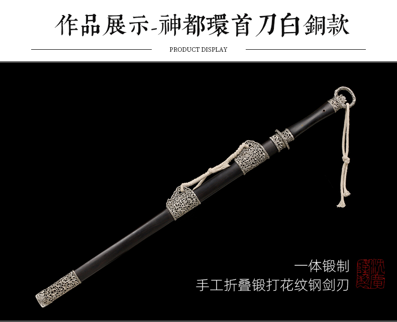 神都环首刀剑 手工传统一体刀剑花纹钢刀剑龙泉沈广隆宝剑 未开刃
