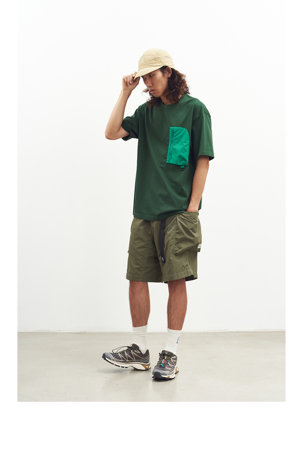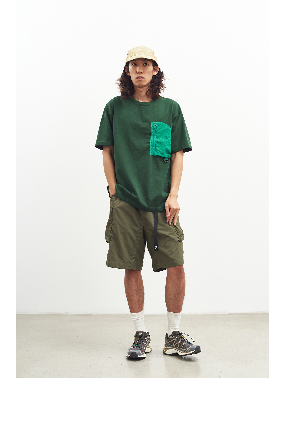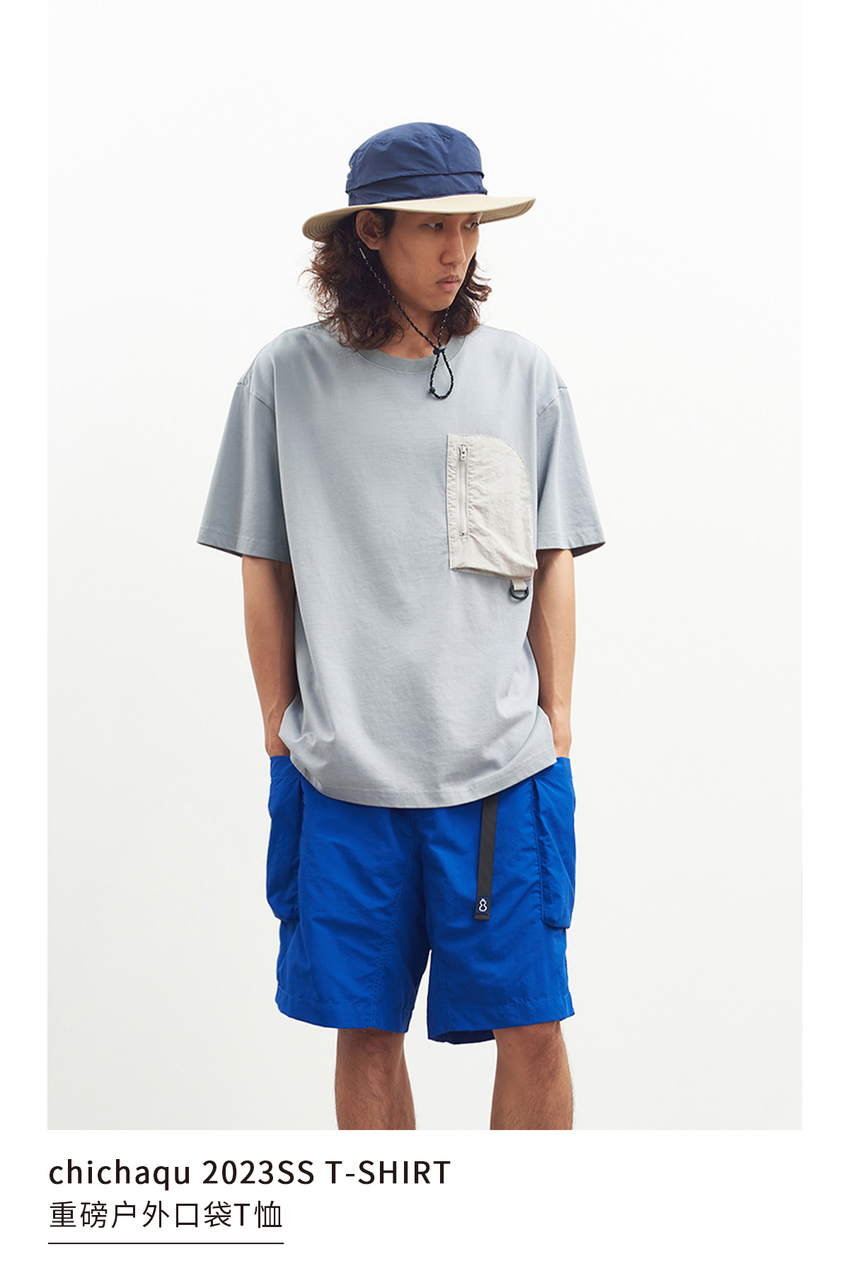 吃茶去chichaqu户外拼贴口袋短袖重磅T恤
