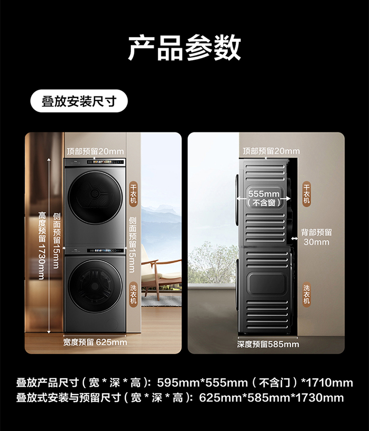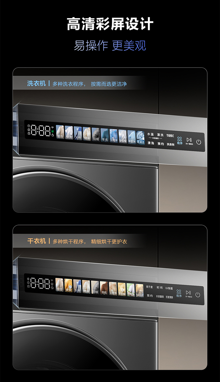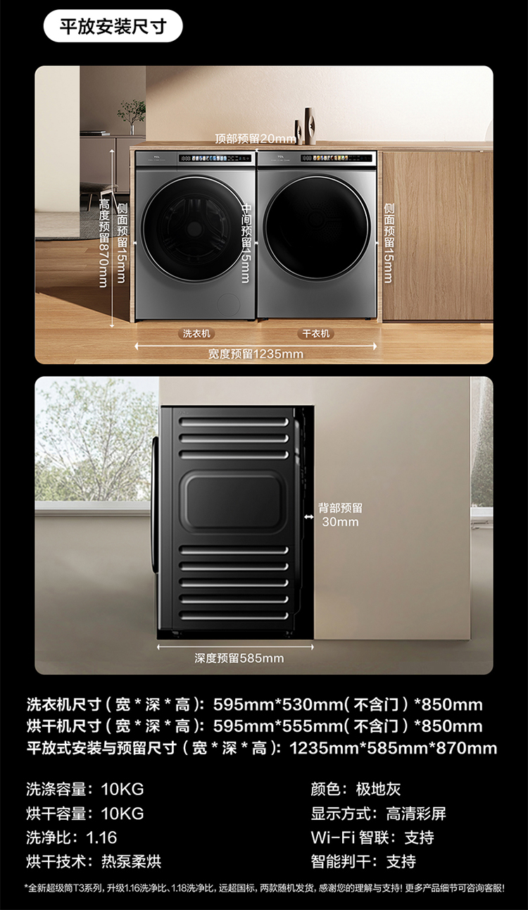 【TCL洗衣机】TCL 超薄洗烘套装T3 热泵柔烘 10KG洗+10KG烘 G100T3-BS+H100T3-S