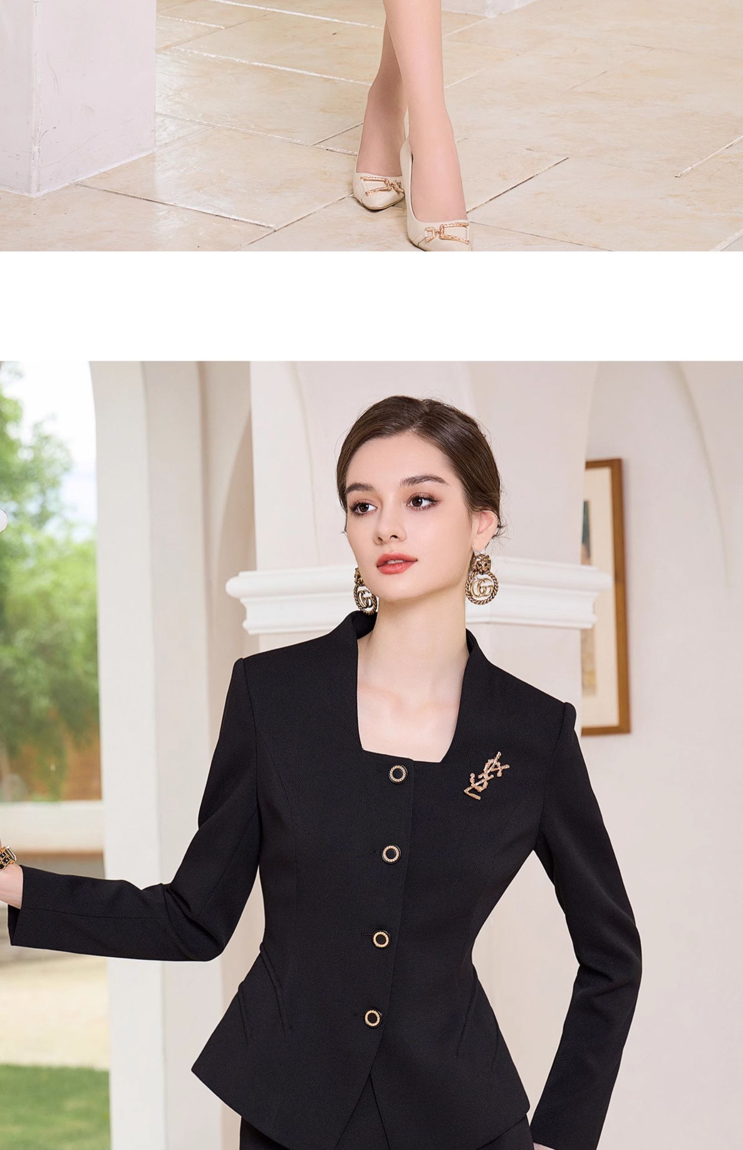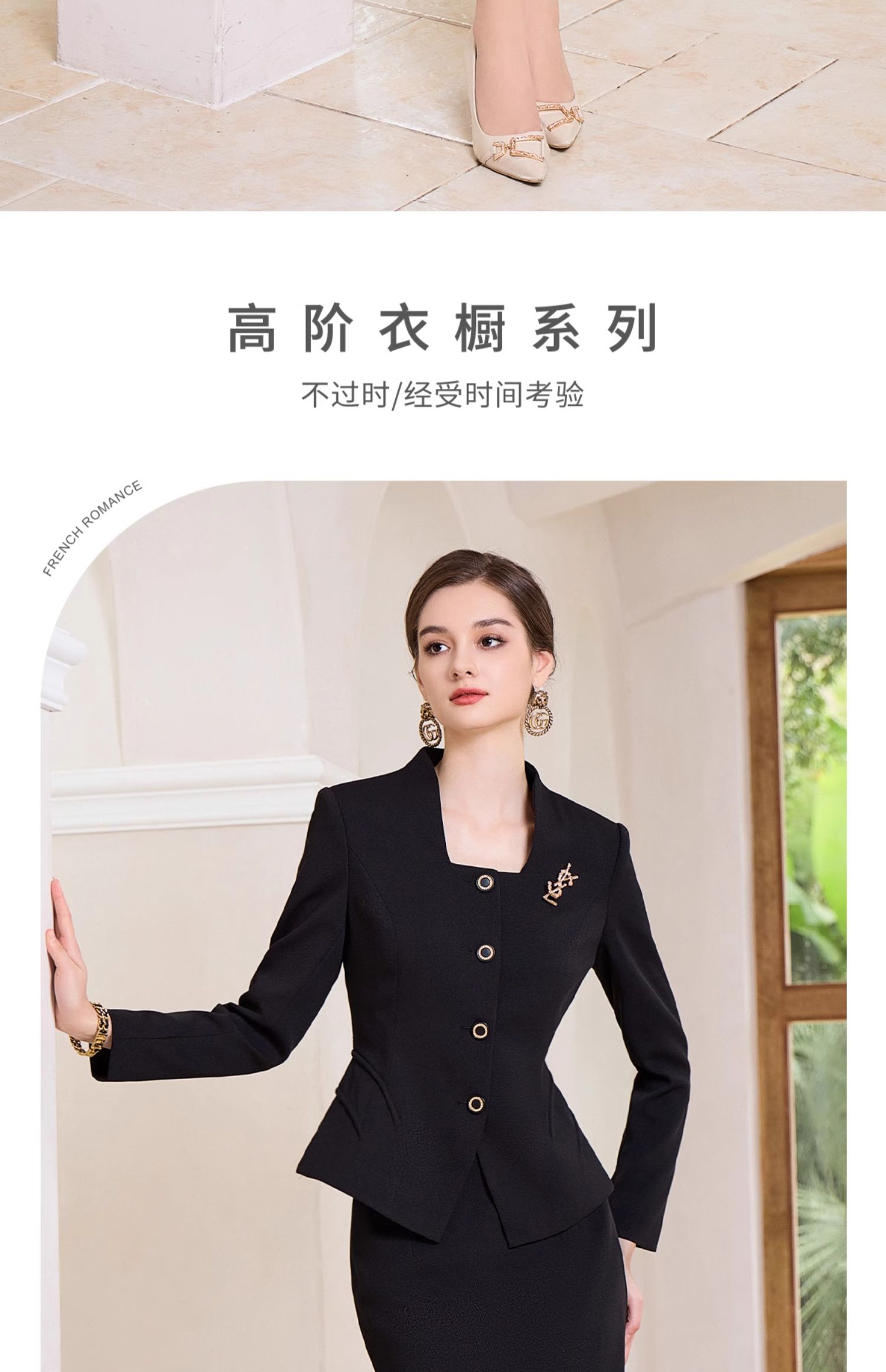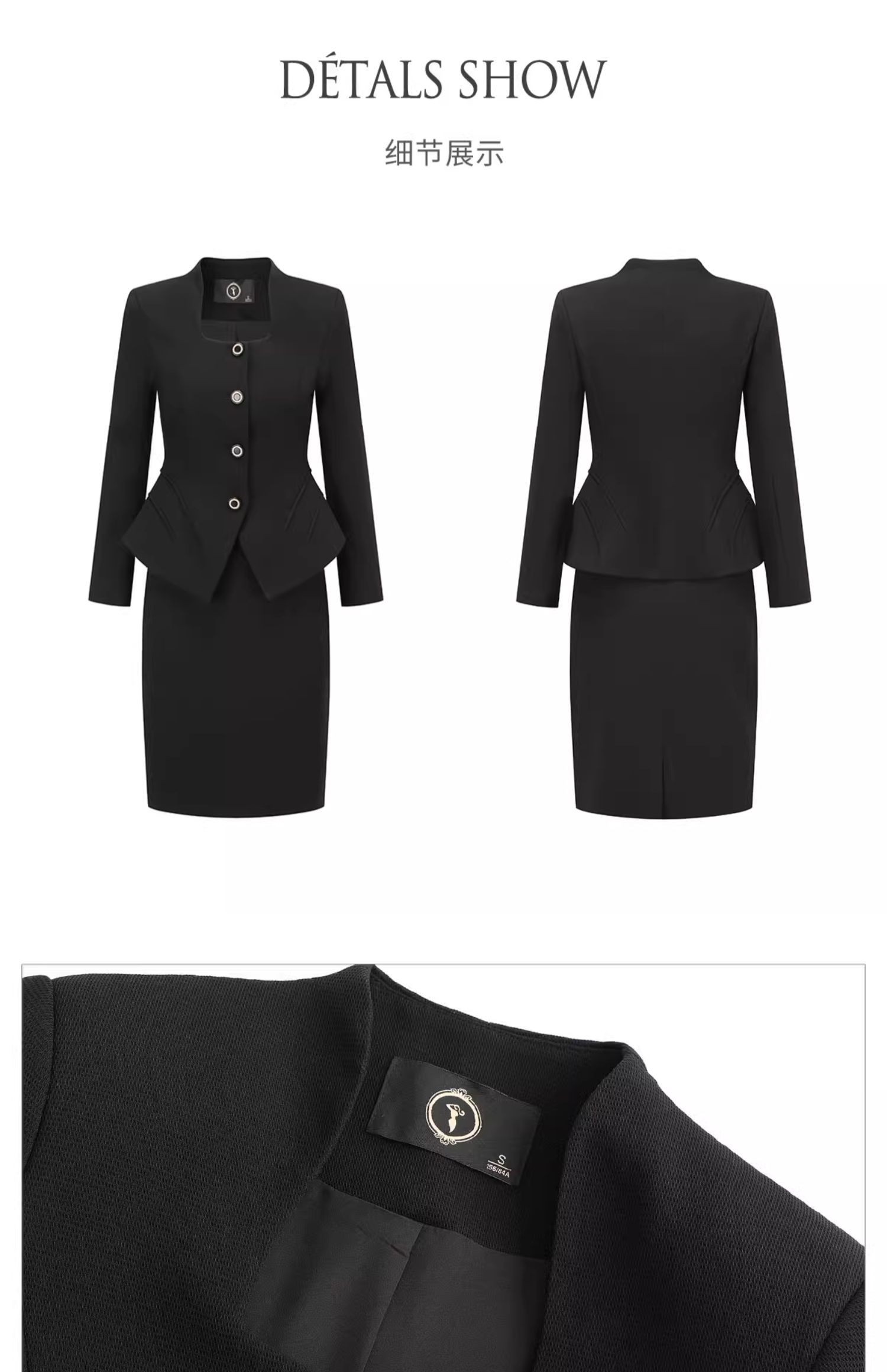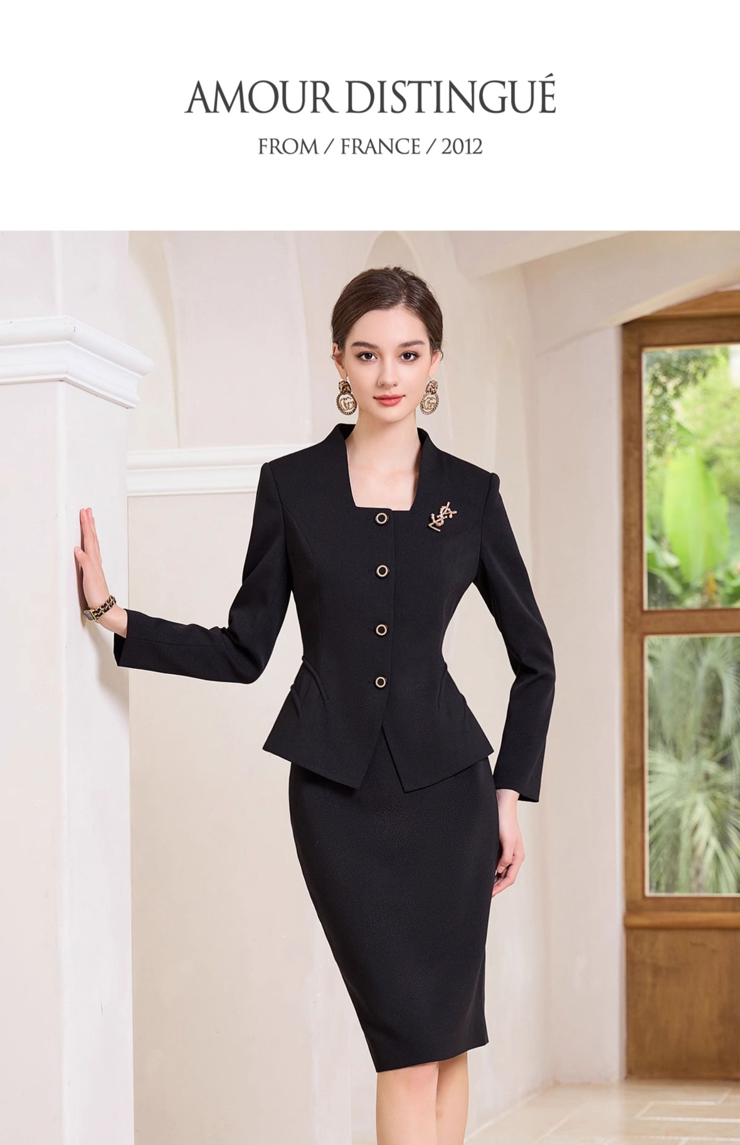 AD赫本风黑色方领西装两件套女秋冬新款法式小香风名媛范正装套裙