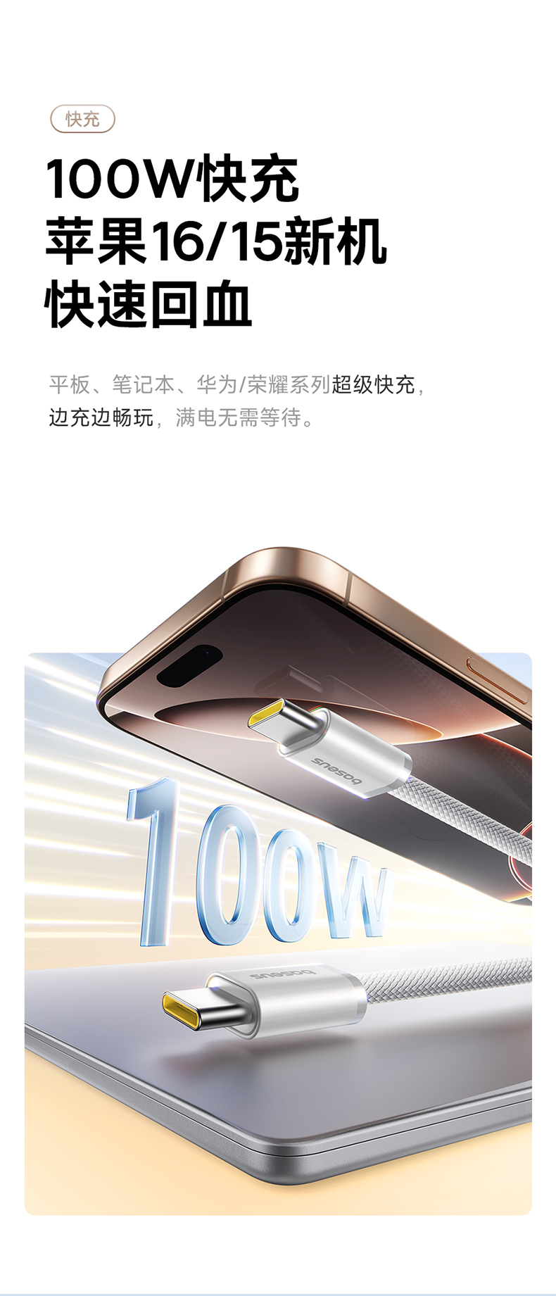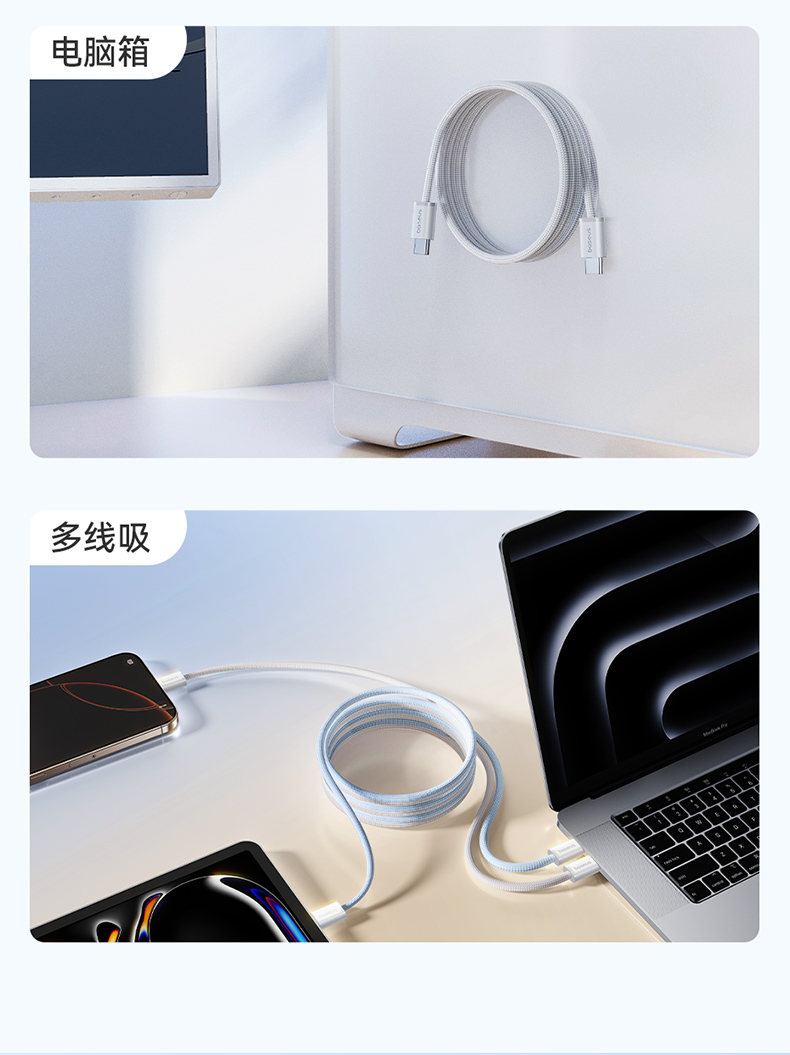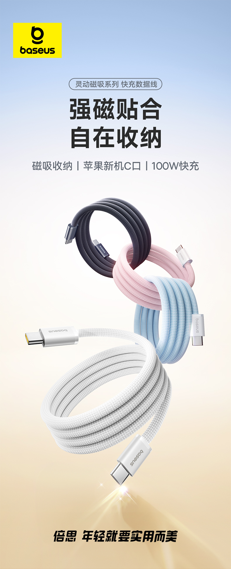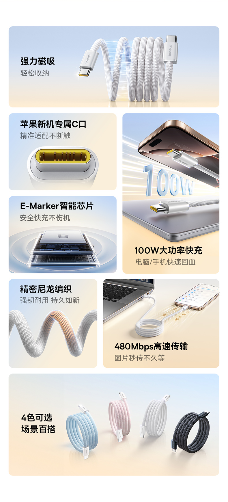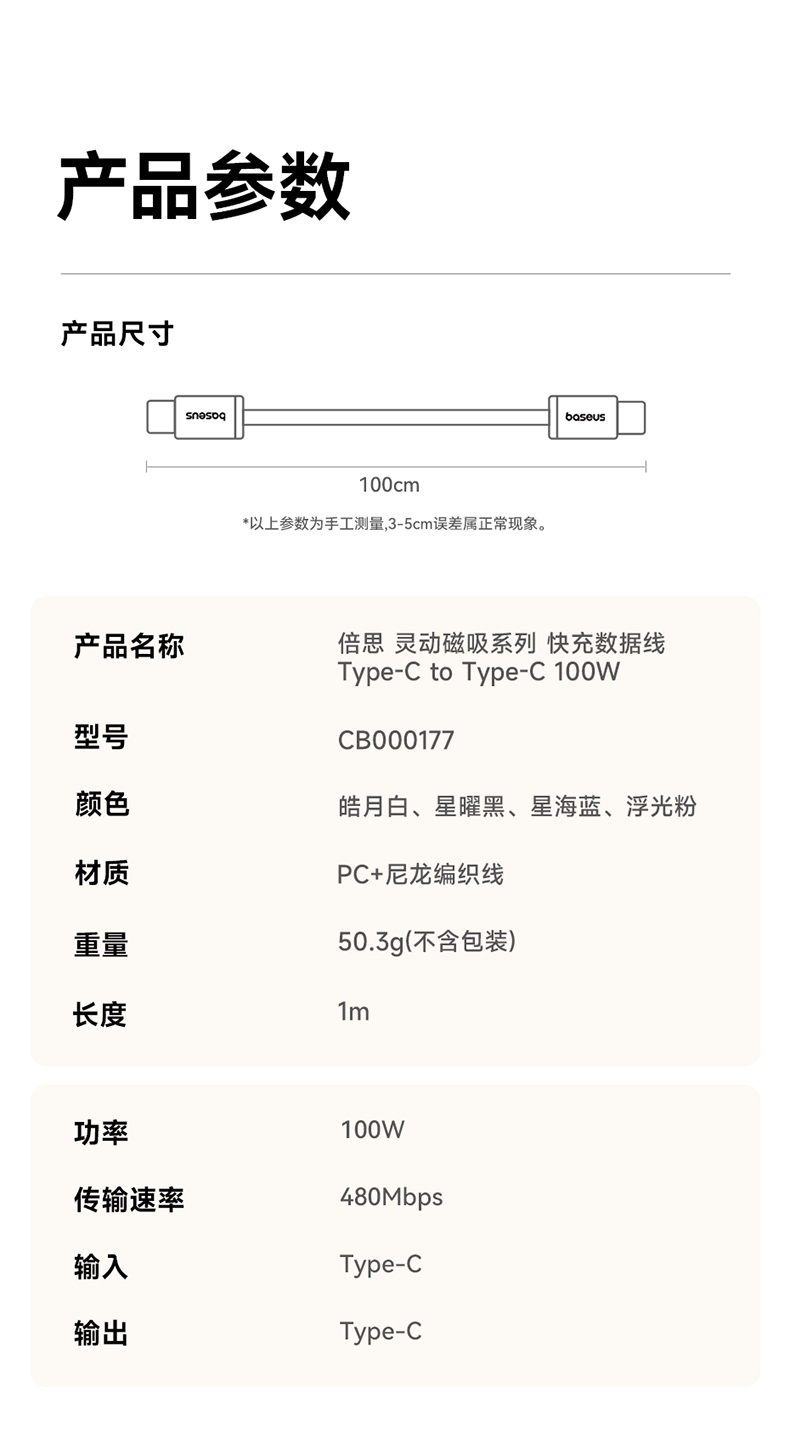 探乐派x倍思 灵动磁吸系列 快充数据线 Type-C to Type-C 100W 1米