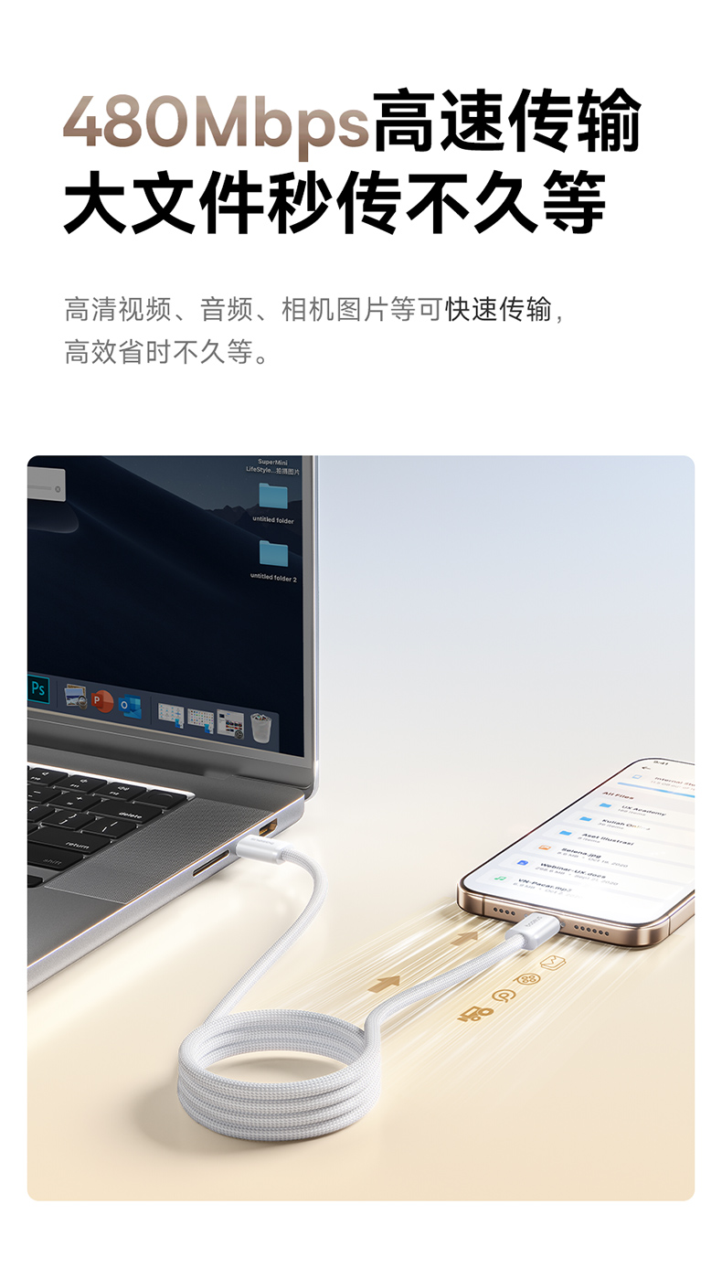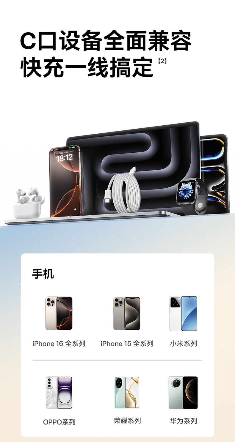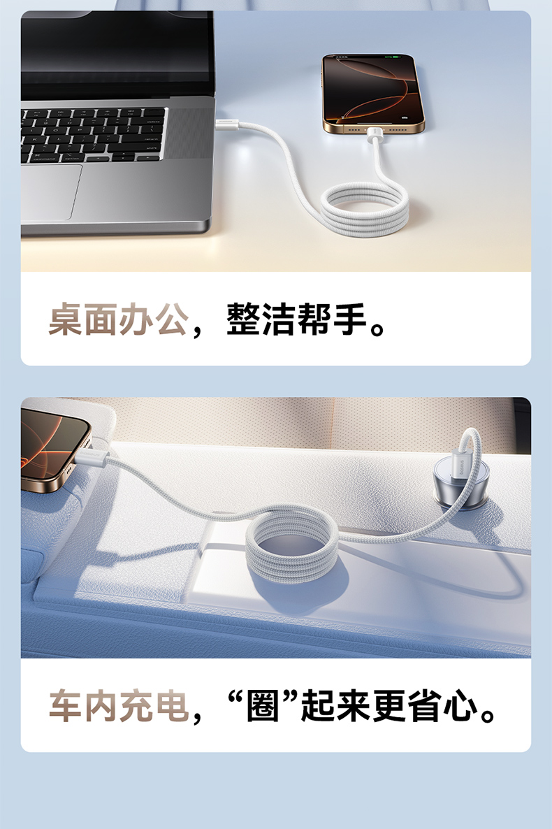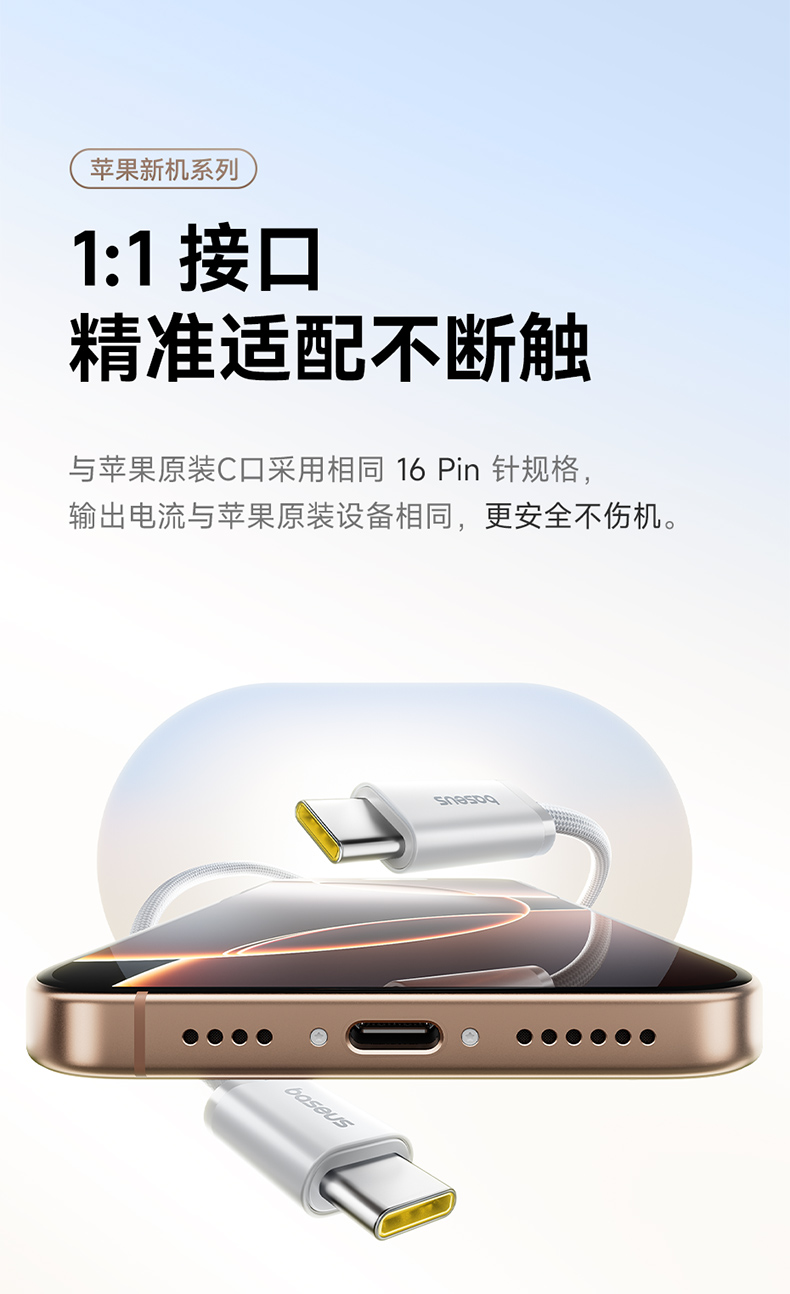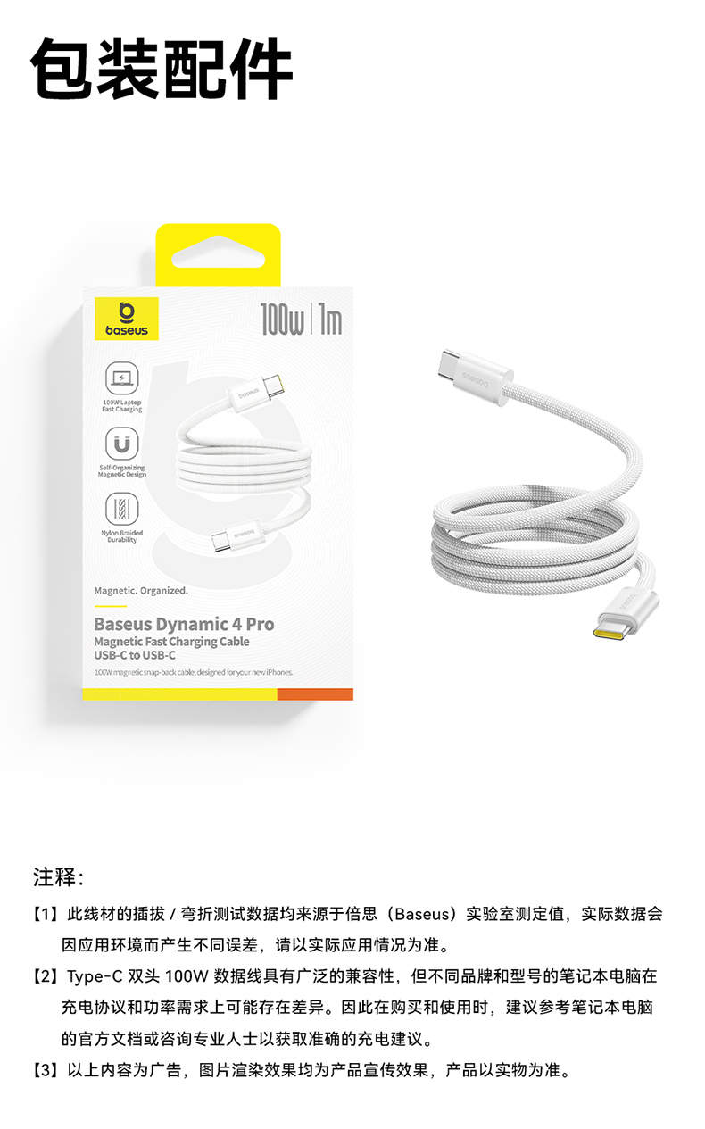 探乐派x倍思 灵动磁吸系列 快充数据线 Type-C to Type-C 100W 1米