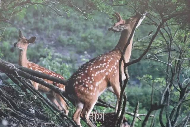 远处的梅花鹿悄悄地穿梭在丛林中,