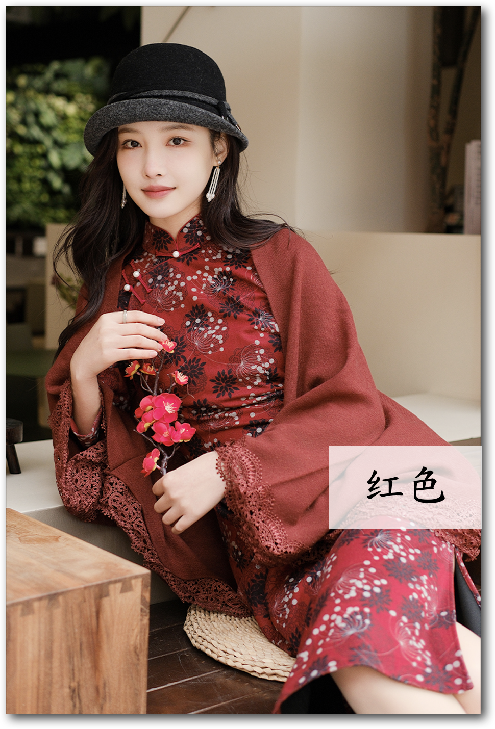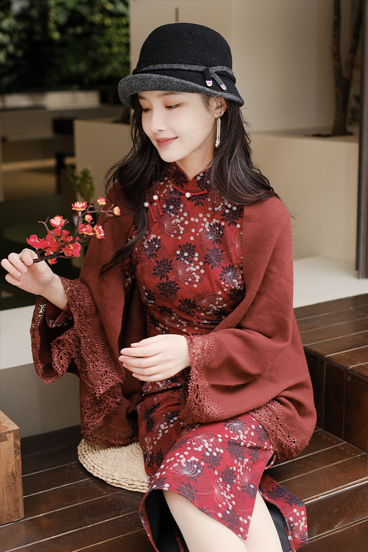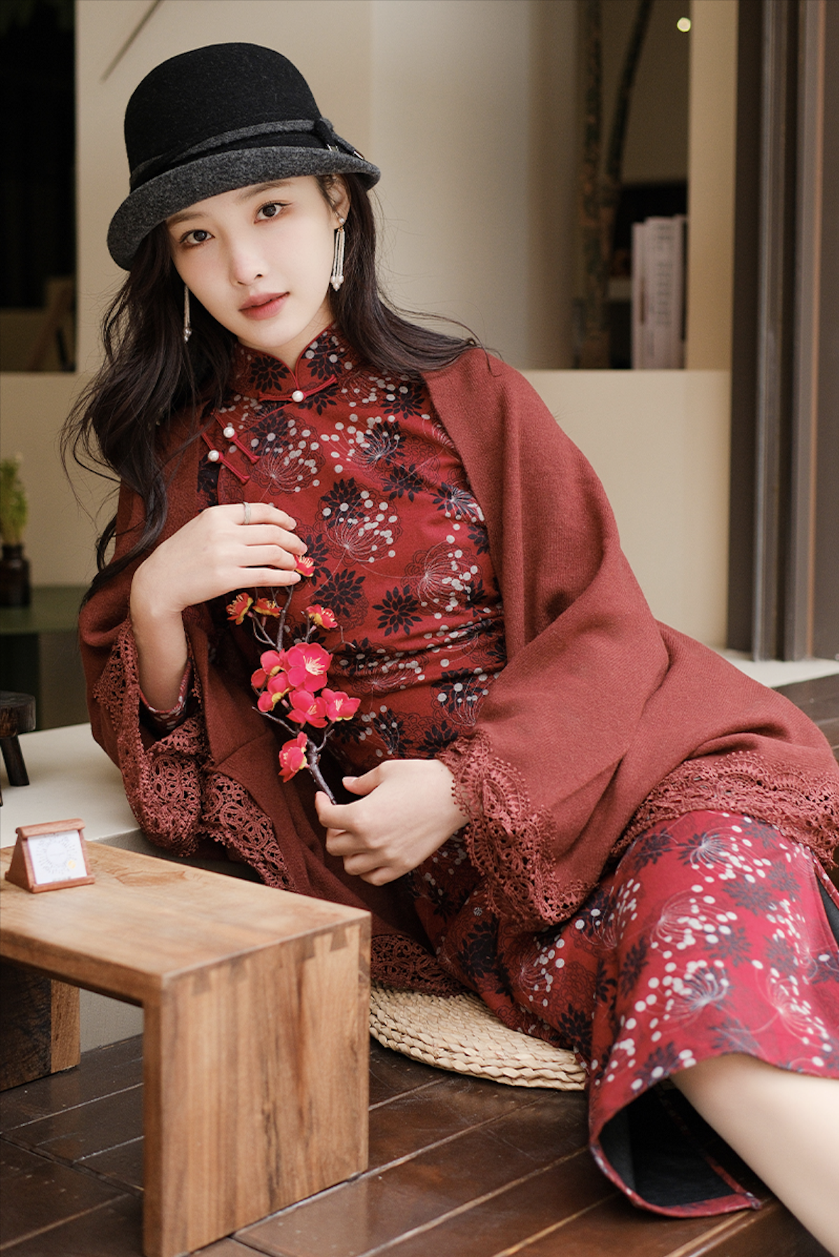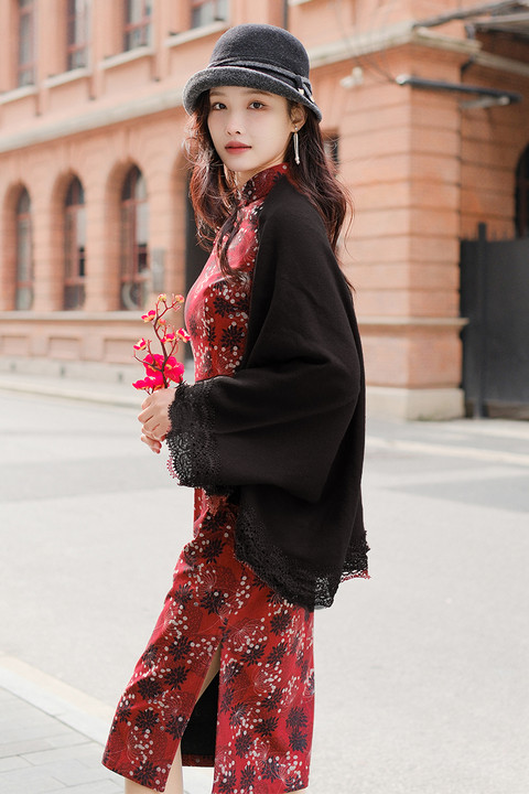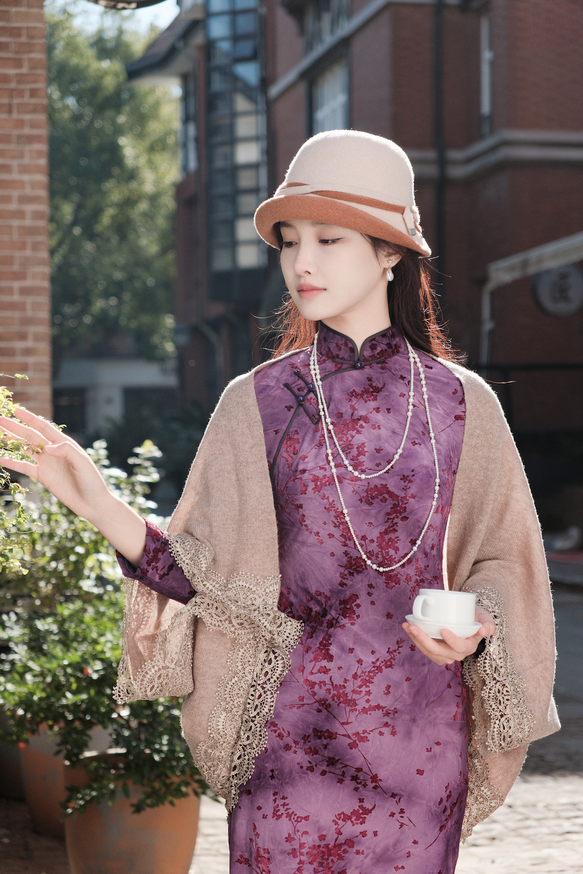 闲时品茶,旗袍披上蕾丝披肩,安静美丽~~~~🍵