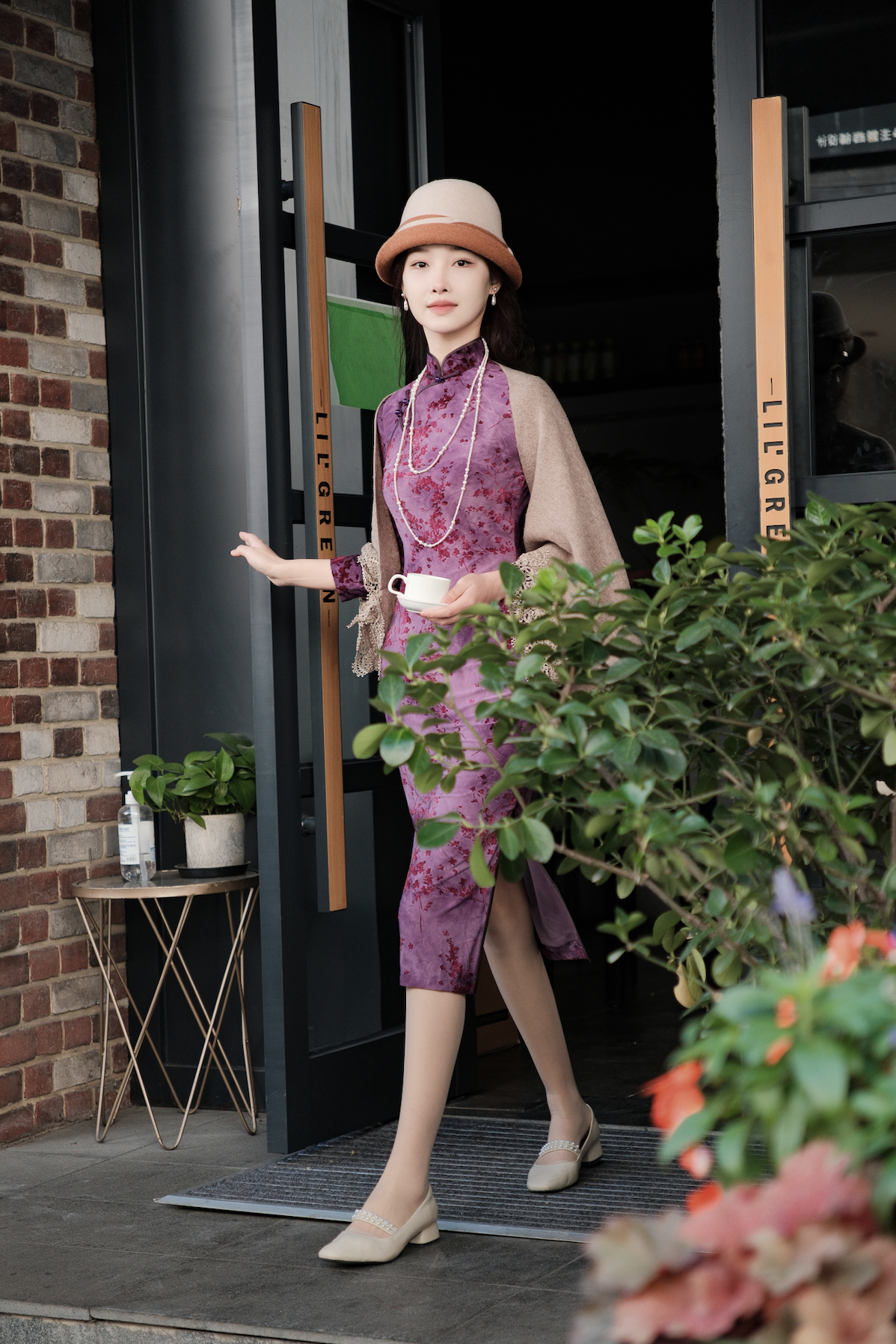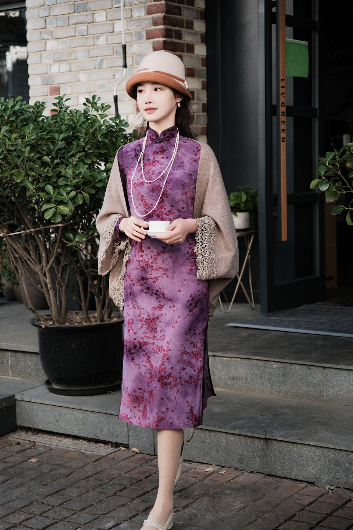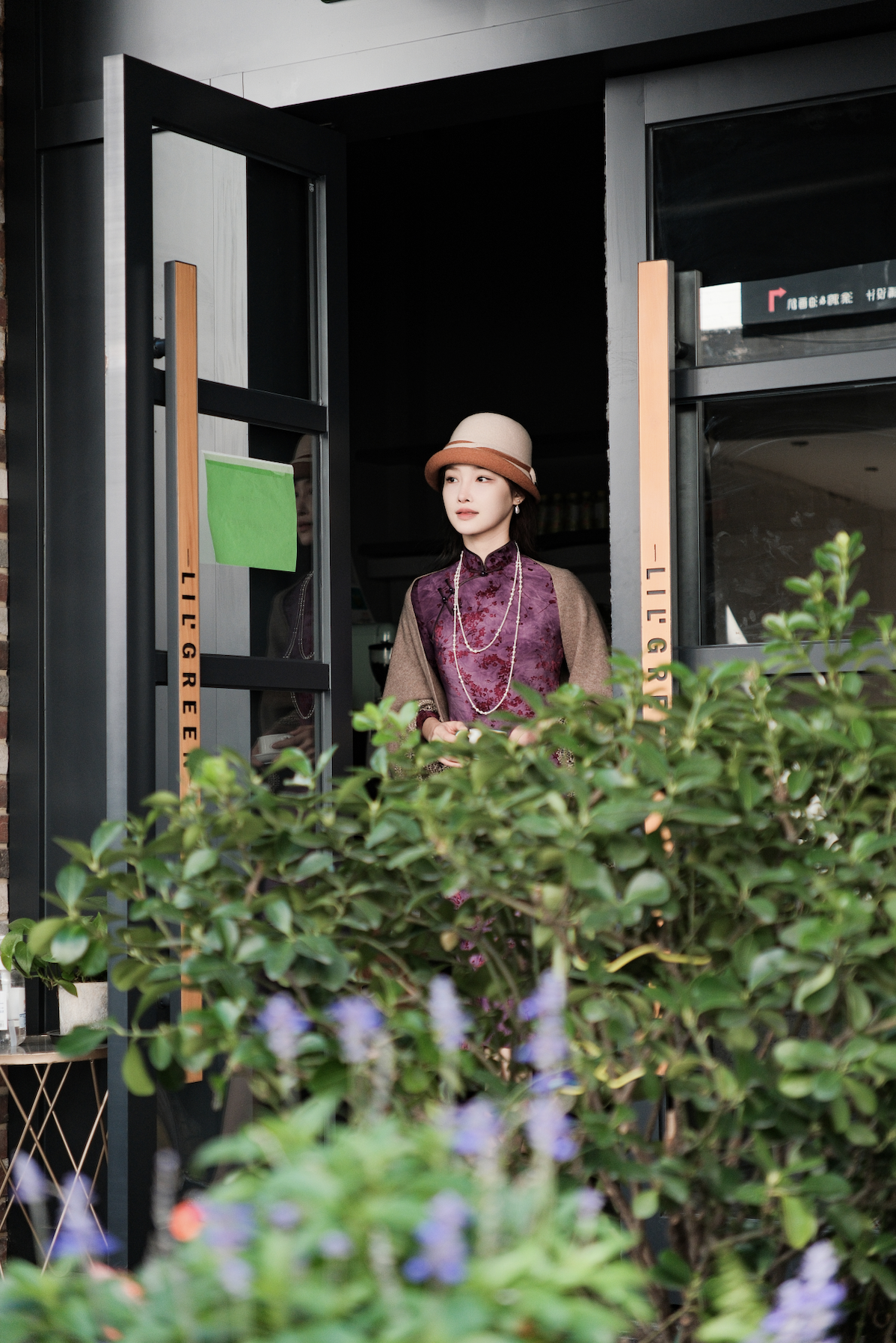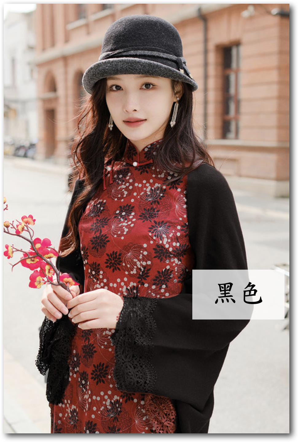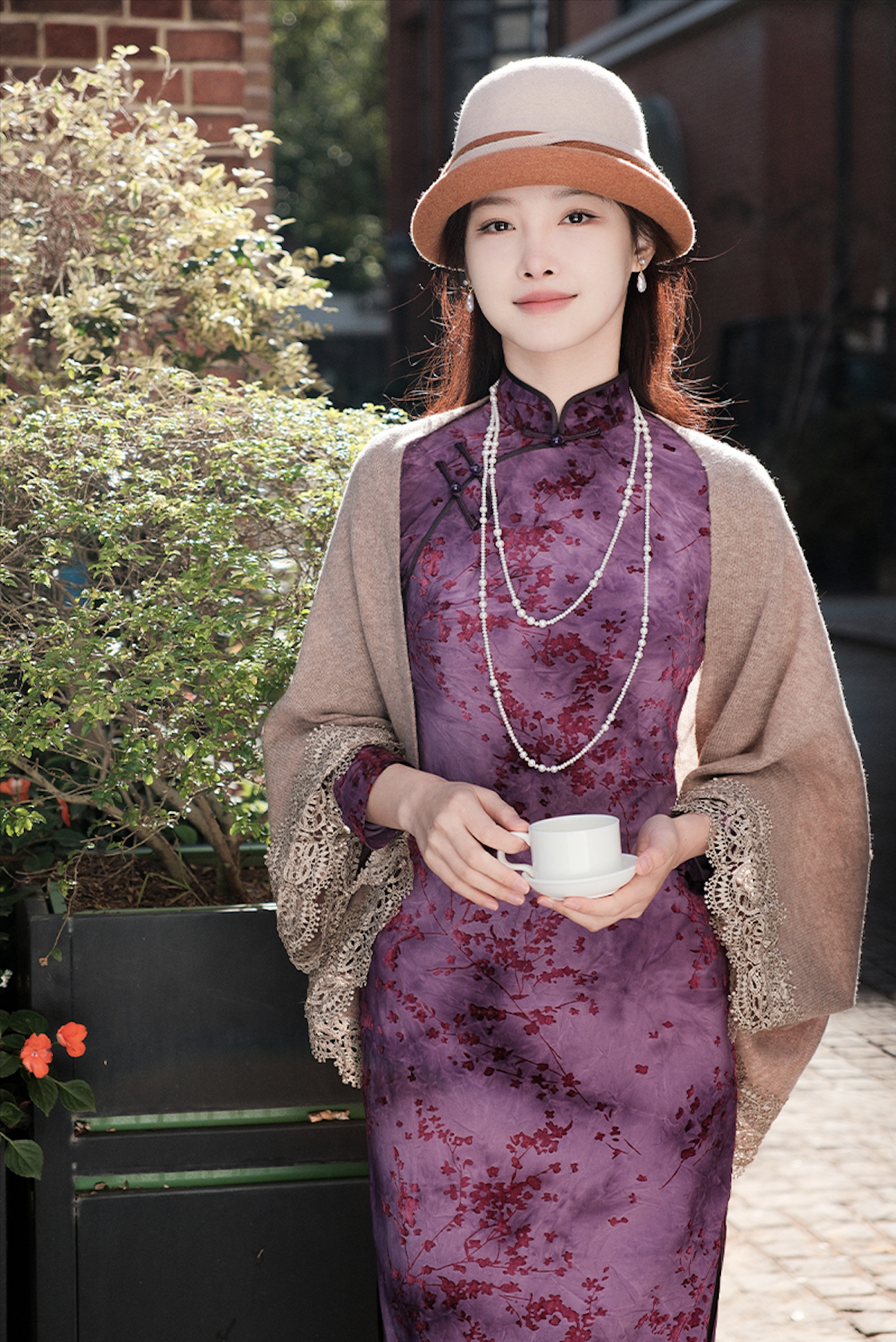 闲时品茶,旗袍披上蕾丝披肩,安静美丽~~~~🍵