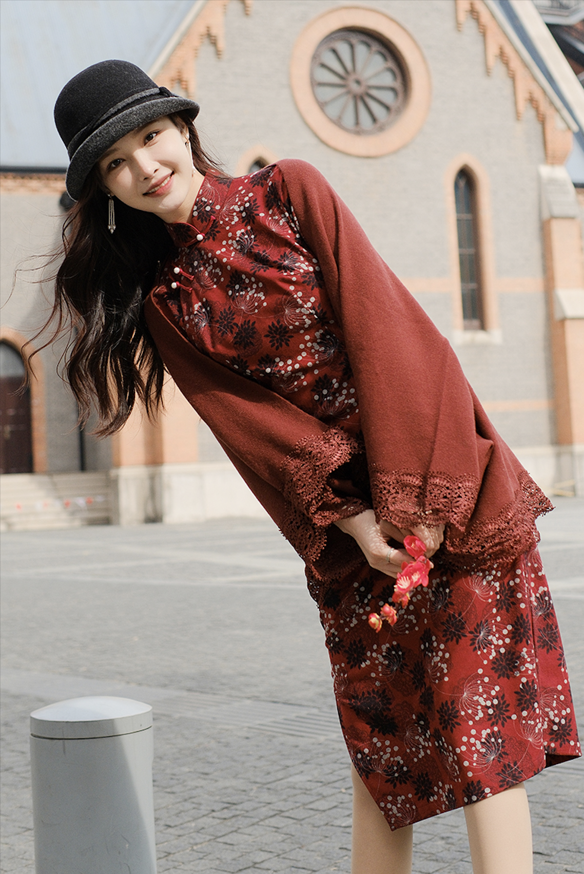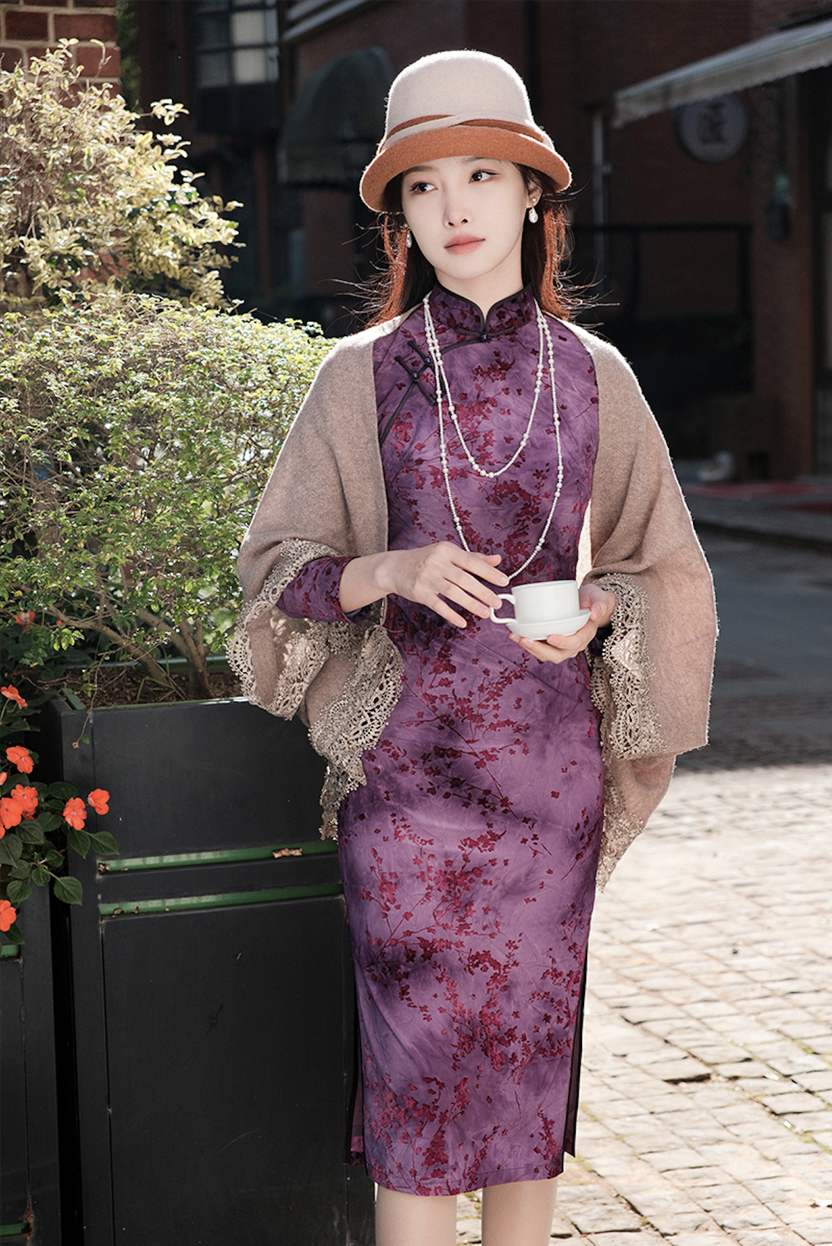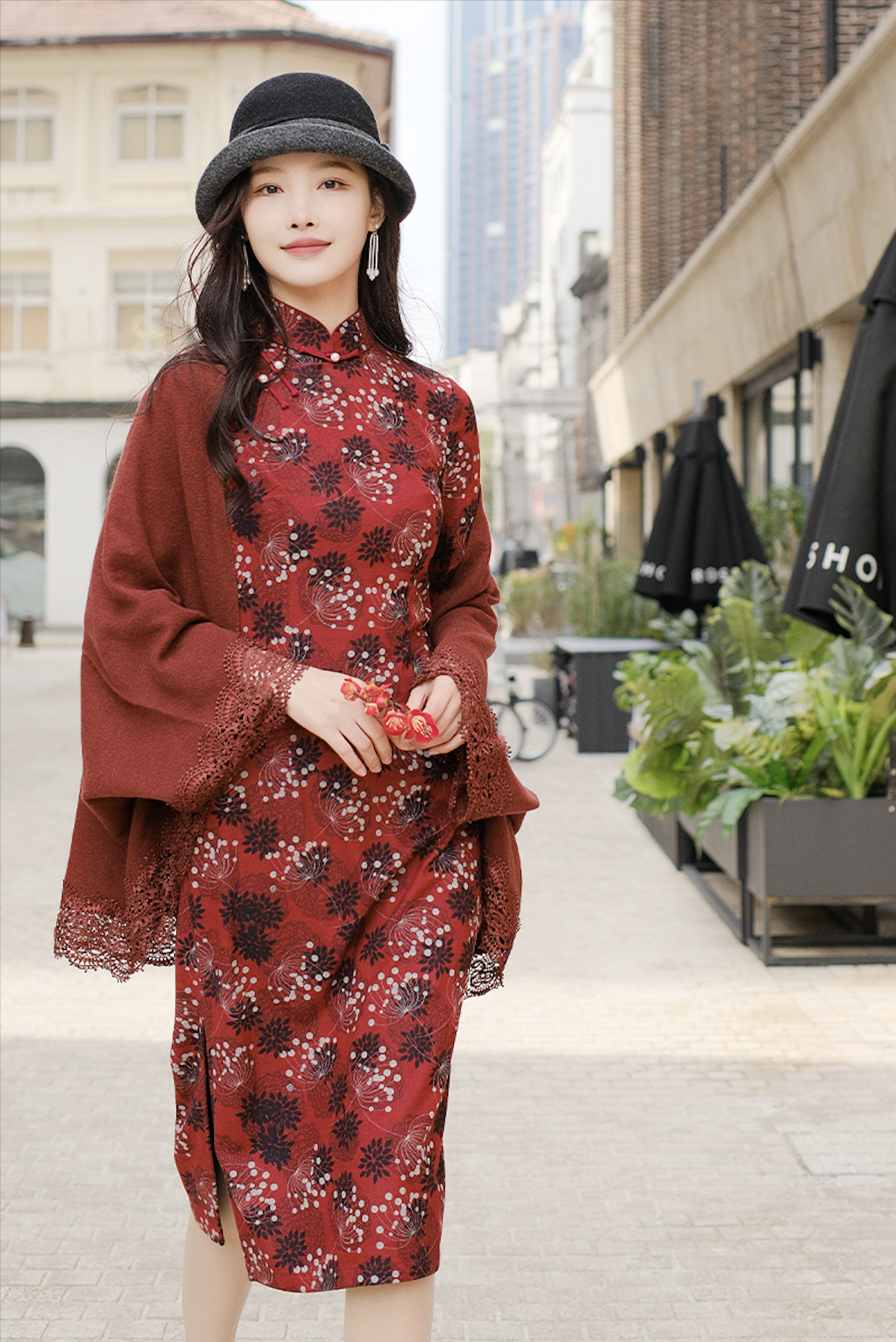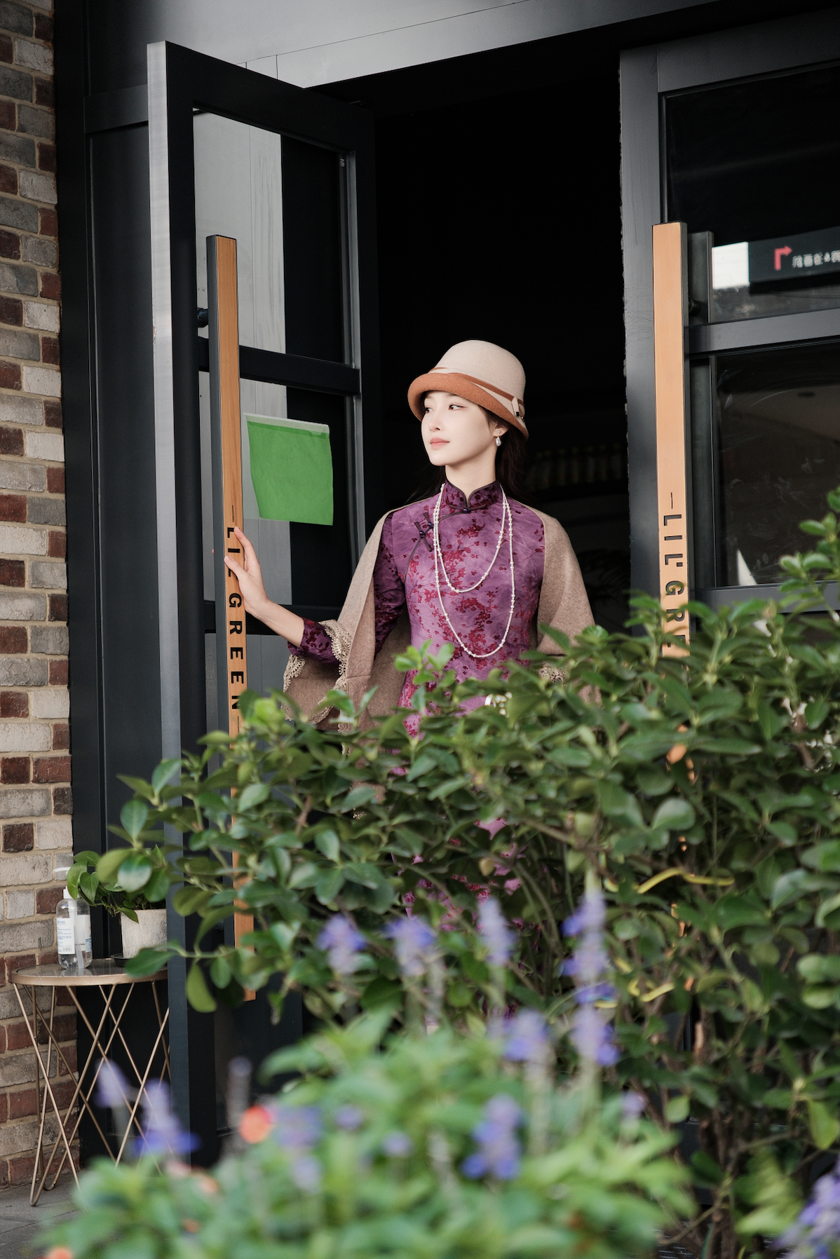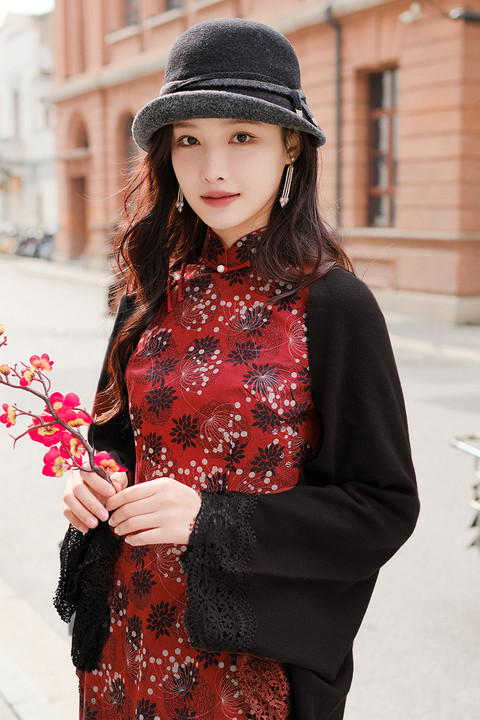 闲时品茶,旗袍披上蕾丝披肩,安静美丽~~~~🍵