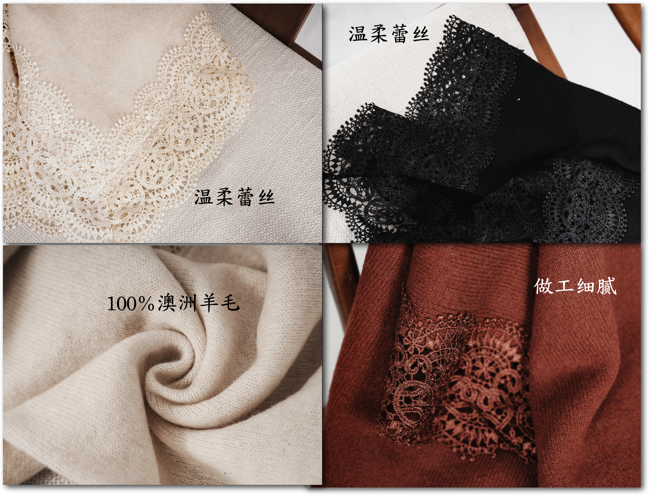 蕾丝+澳洲羊毛的设计,即是美丽的,也是温暖的.