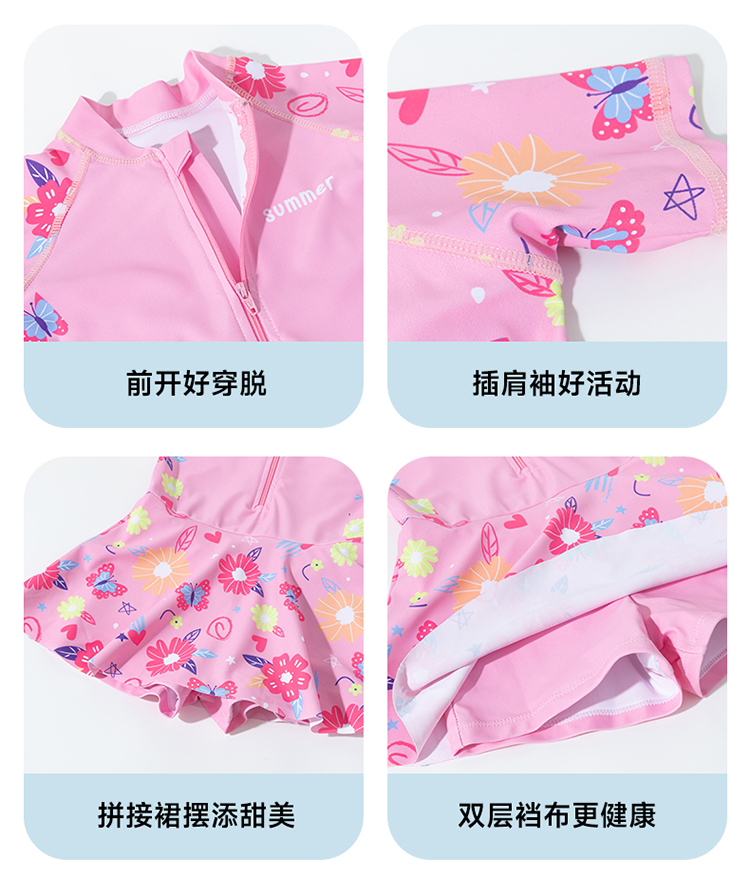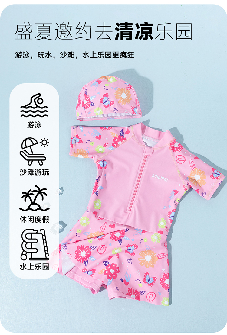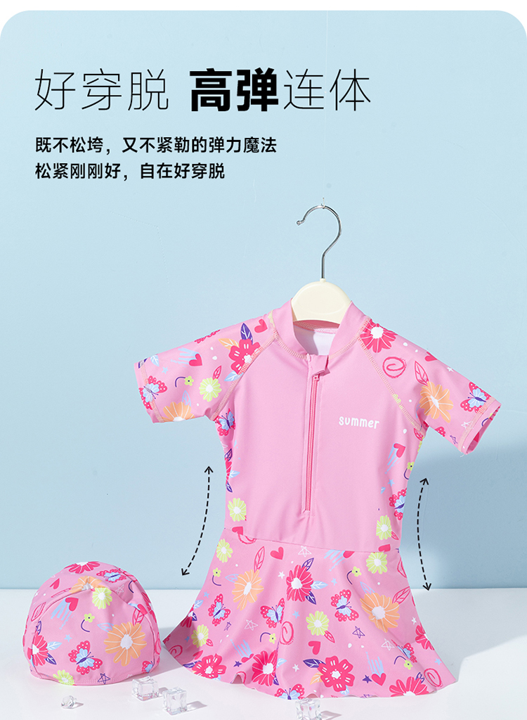 贝贝怡儿童泳衣连体泳帽新款女童中大童学生保守游泳女孩训练泳装ZB2EP006