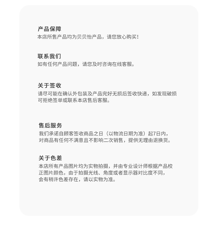 - 贝贝怡专注0-6岁婴幼儿服饰,坚持安全、柔软、舒适的产品理念,为千万中国家庭提供超高品质、安全可靠的婴幼儿服饰产品,妈妈放心,宝宝开心!