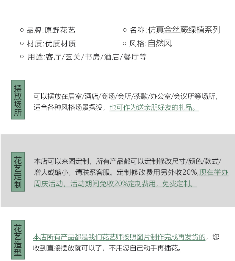 仿真金丝蕨植物假绿植客厅商场酒店装饰造景落地室内盆景摆设件