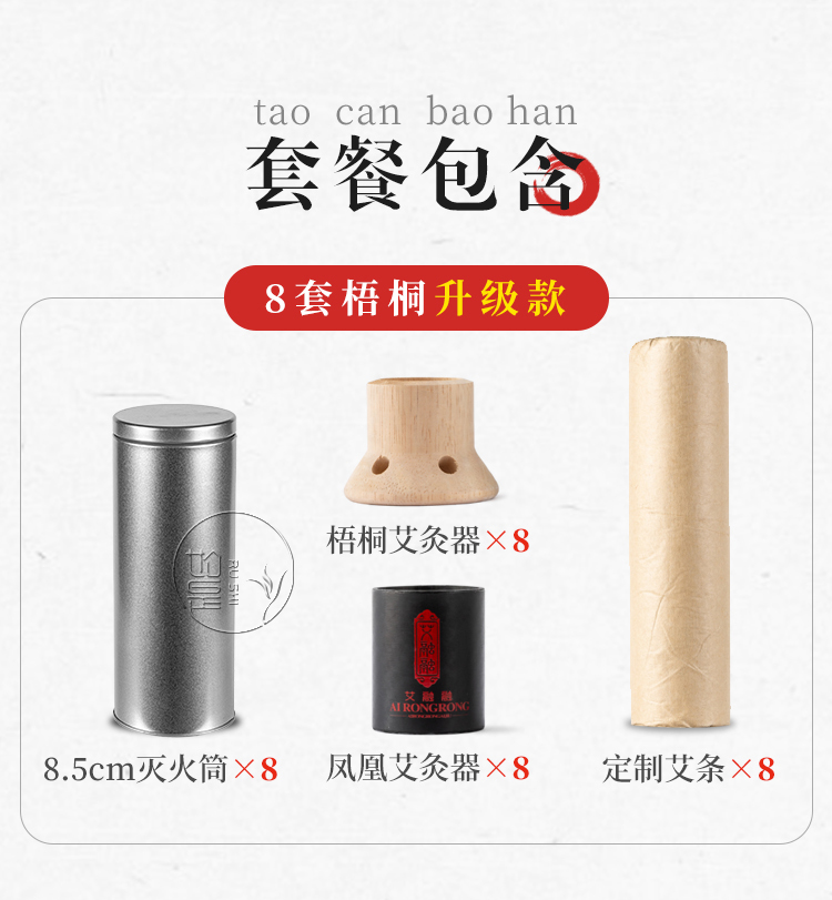 【8套梧桐】艾融融纯艾绒艾条梧桐艾条家庭分享装无烟悬灸自助艾灸大椎