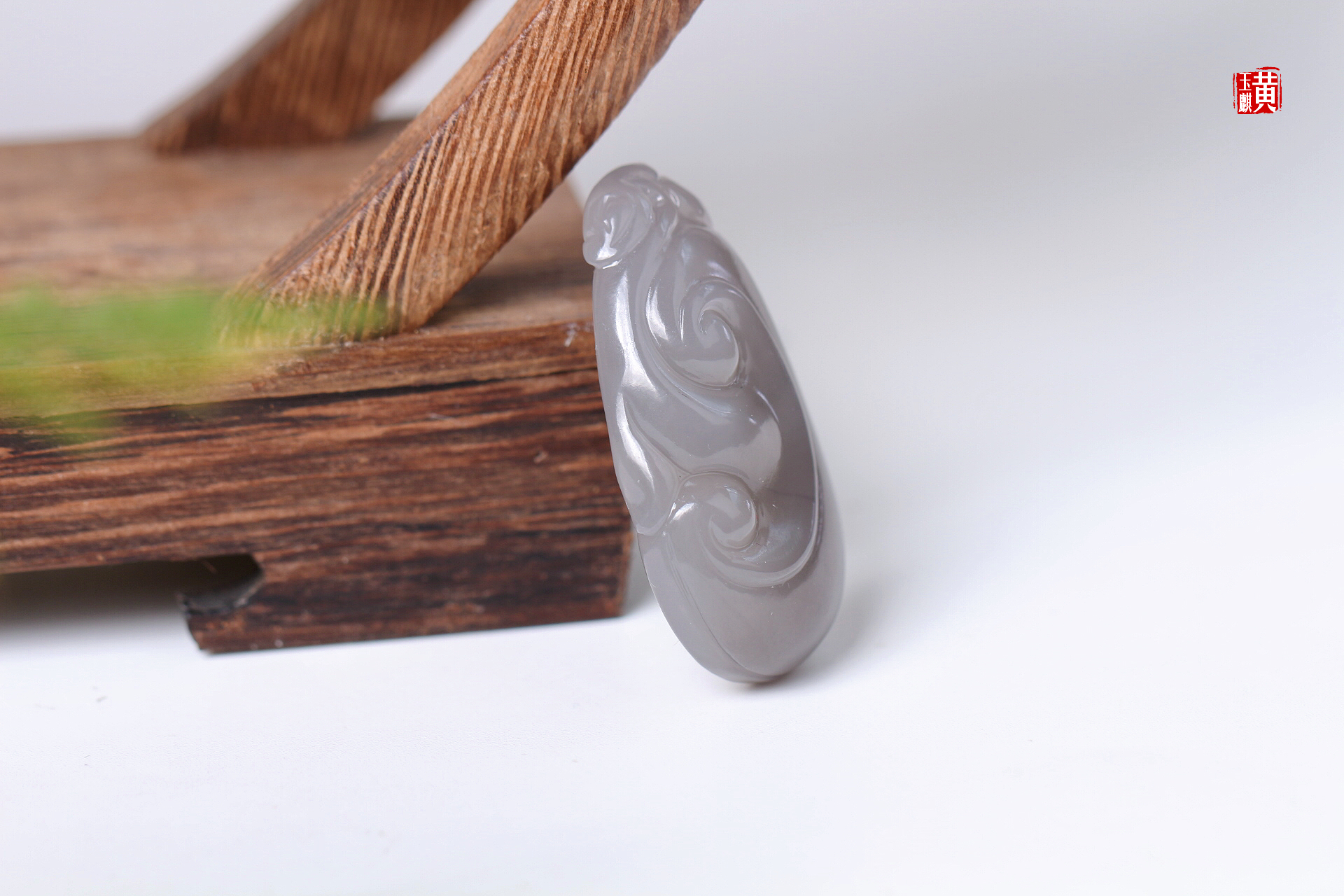 和田烟紫玉如意,玉质细腻,若烟若紫,均匀浓郁,深邃神秘,紫气东来,形制饱满,佩戴高贵优雅,寓意如意吉祥。