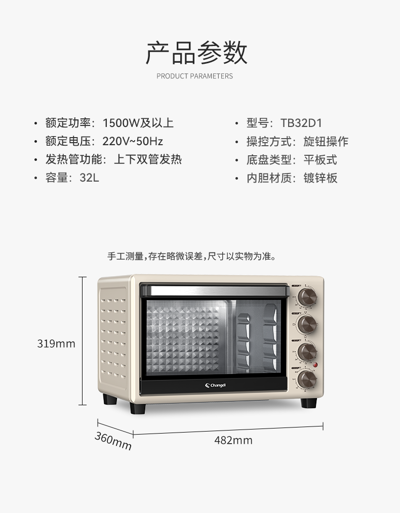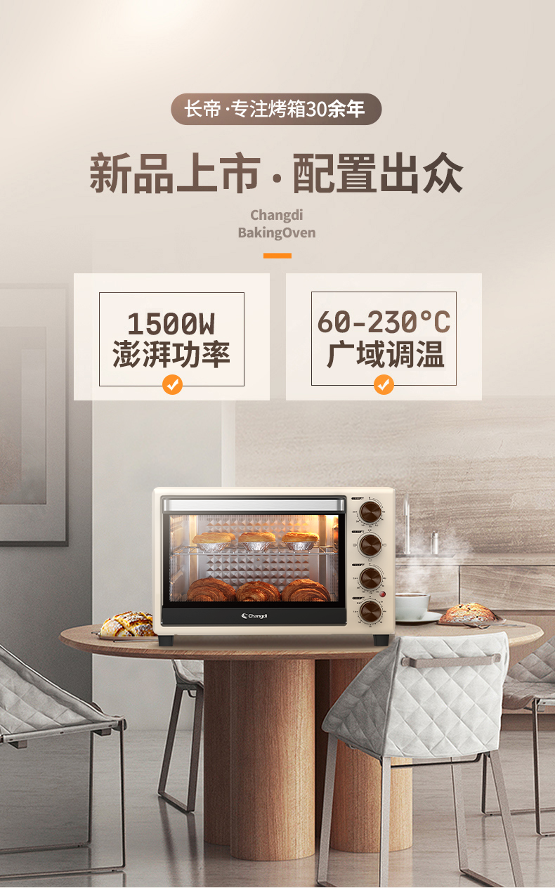 - 长帝,32年以来专业研发、生产制造电烤箱,深受消费者和烘焙爱好者喜爱!