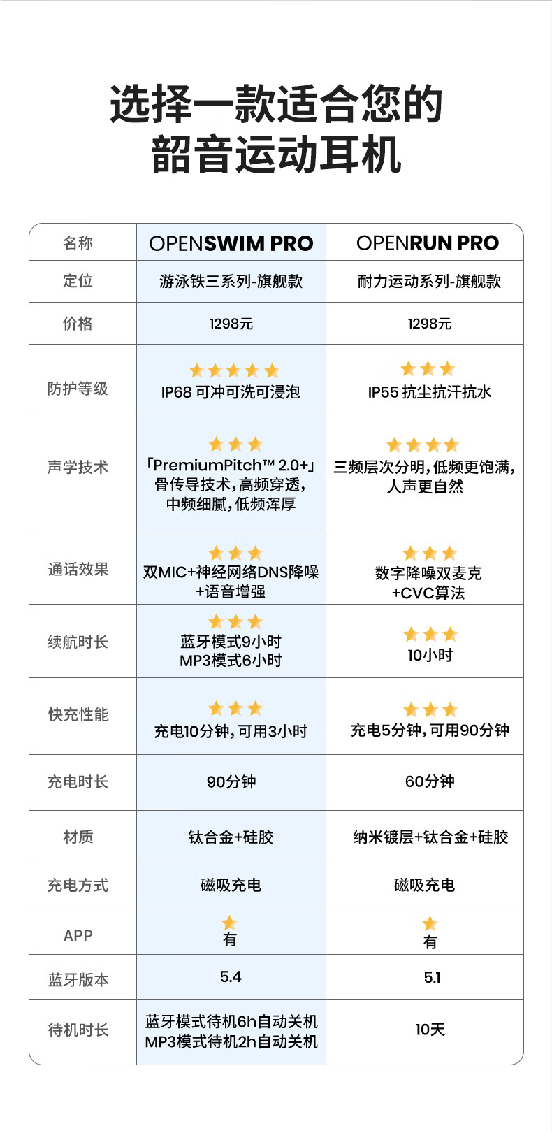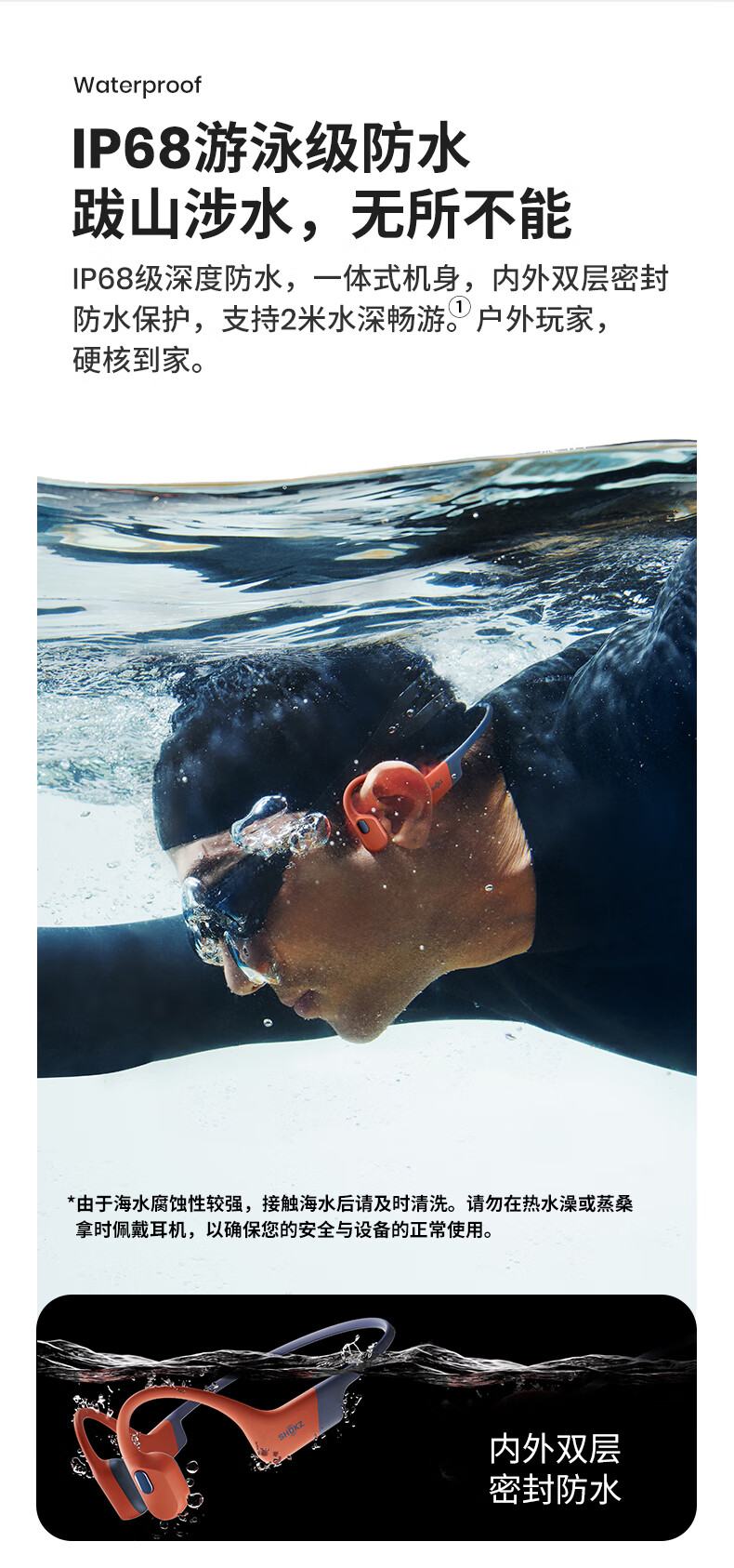 韶音(SHOKZ)OpenSwim Pro骨传导蓝牙耳机 开放式运动无线游泳跑步骑行不入耳