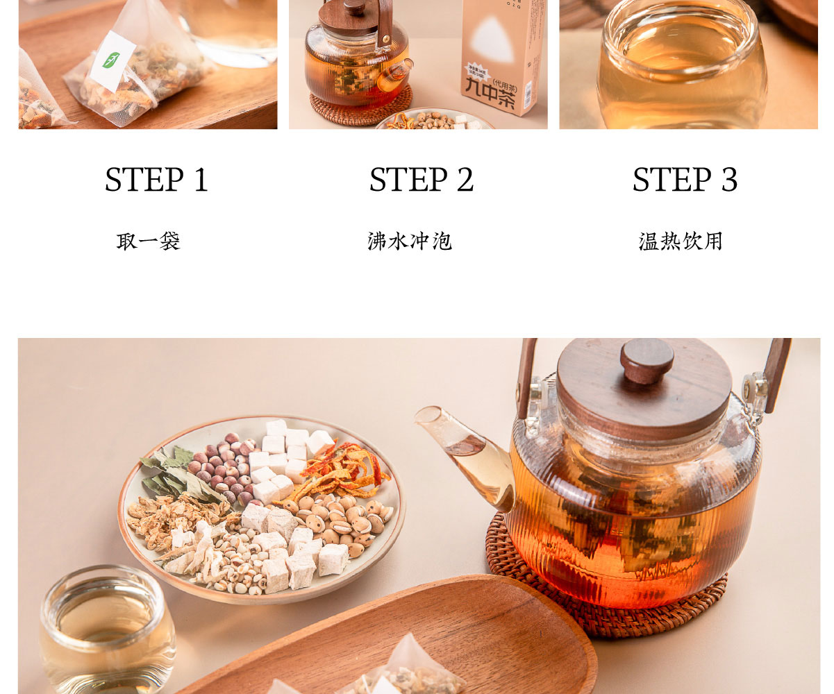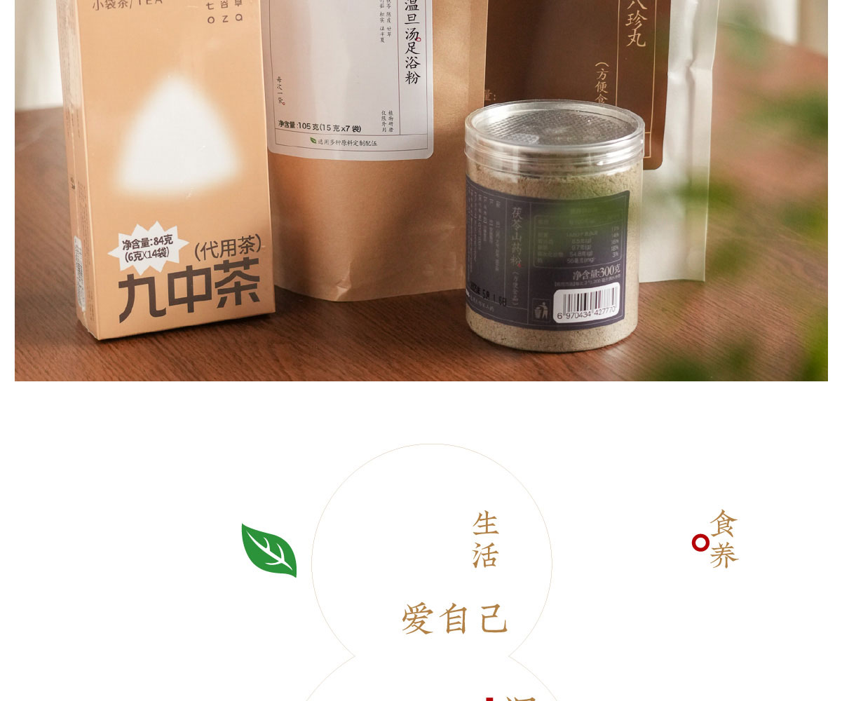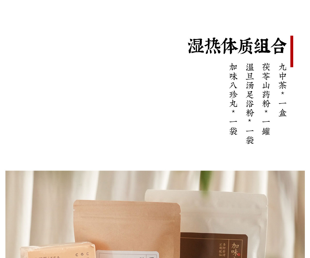 **自营**湿热体质组合 | 九中茶*1茯苓山药粉*1温旦汤足浴粉*1加味八珍丸*1