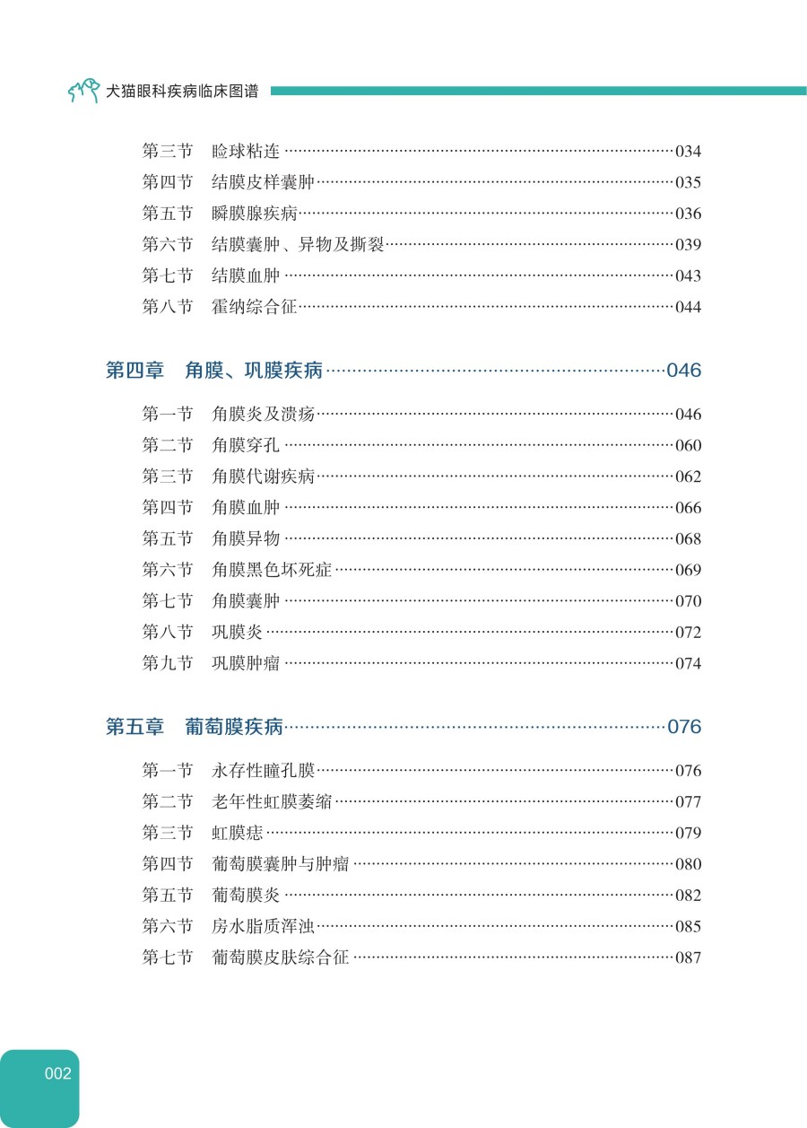 本书共包含8章内容,分别为犬、猫中正常眼睛解剖图,眼睑疾病图,结膜、鼻泪管系统和第三眼睑疾病图,角膜巩膜疾病图,葡萄膜疾病图,晶状体疾病图,玻璃体、视网膜和视神经疾病图,眼球和眼眶疾病图,全面且深入地呈现了犬猫各类眼科疾病的病理生理学表现、临床症状、鉴别诊断方法以及治疗方案。本书借助临床图谱,直观形象地展示了多达100种的犬猫眼科疾病,为宠物医生准确诊断和有效治疗各类眼科疾病提供了宝贵的参考依据。本书可供宠物临床兽医师、兽医科技工作者、城市公共卫生基层工作者等人员参考使用。