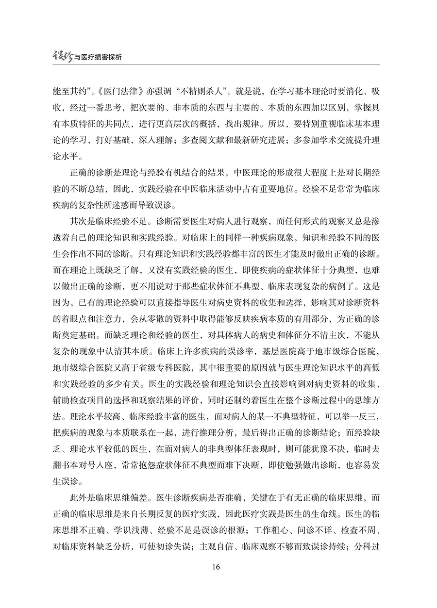 医疗损害的处理。书中对误诊的定义和常见原因进行了详细的解读和分析,对医疗损害
