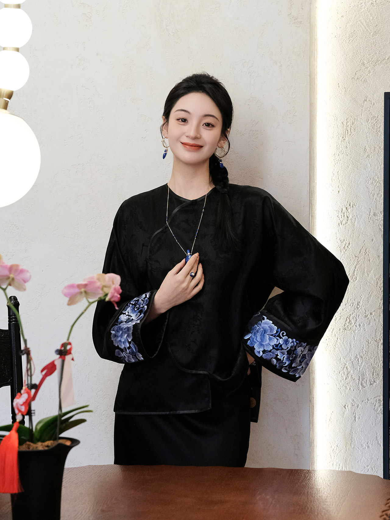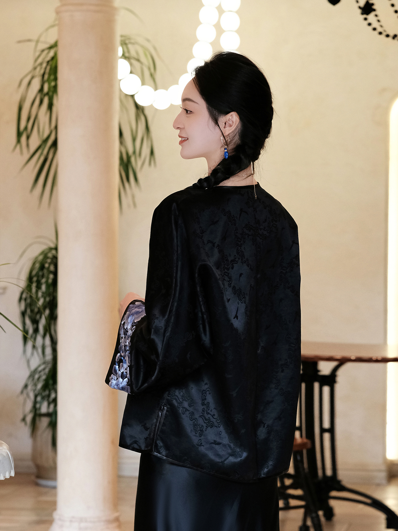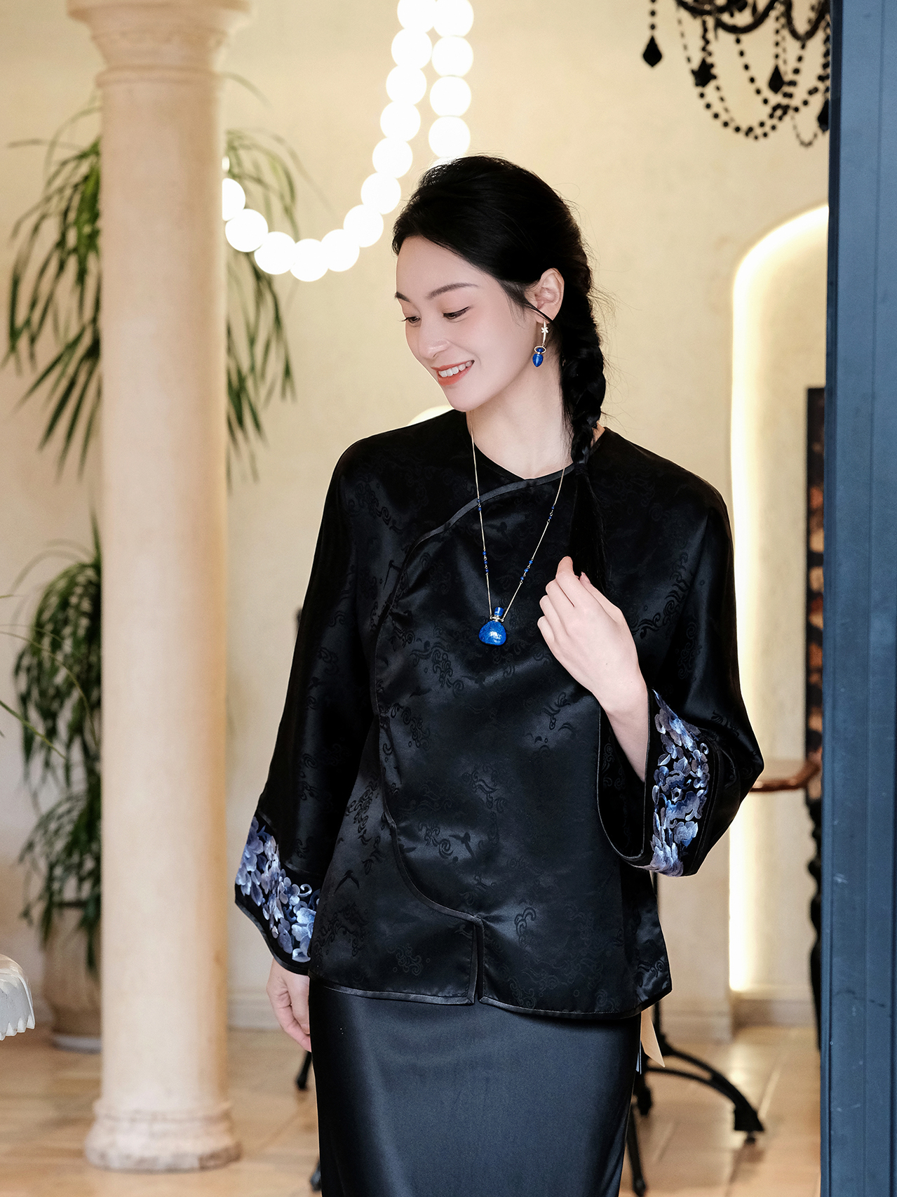 盛唐婧 |新中式丝绒微喇裤黑色