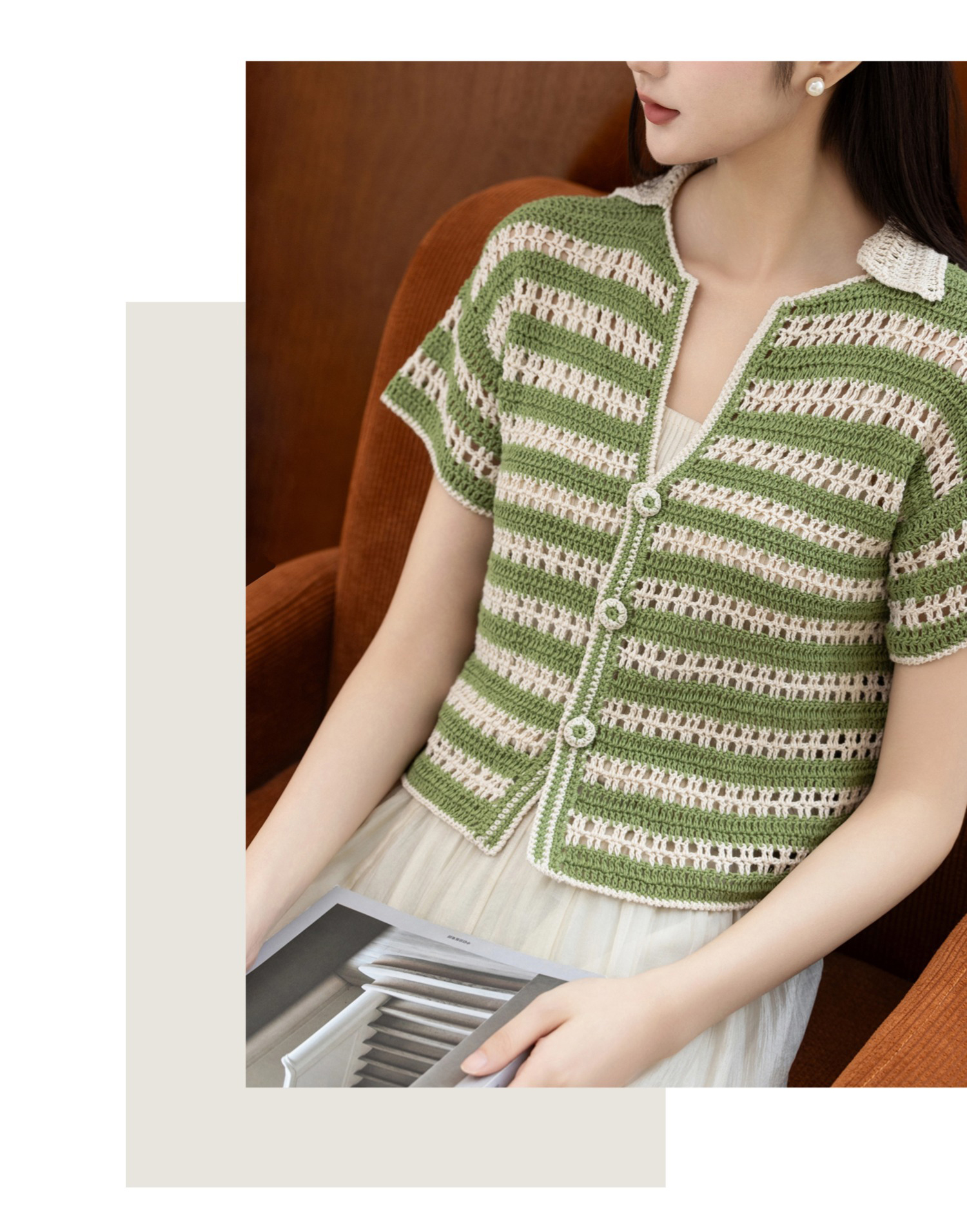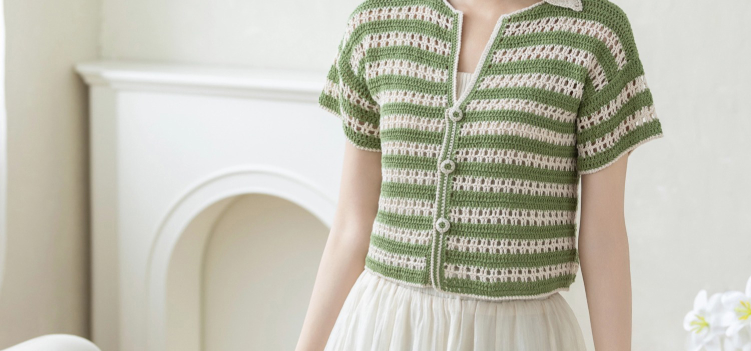 苏苏姐家林蔓翻领上衣手工DIY亚麻蕾丝钩针衣服毛线团自制材料包