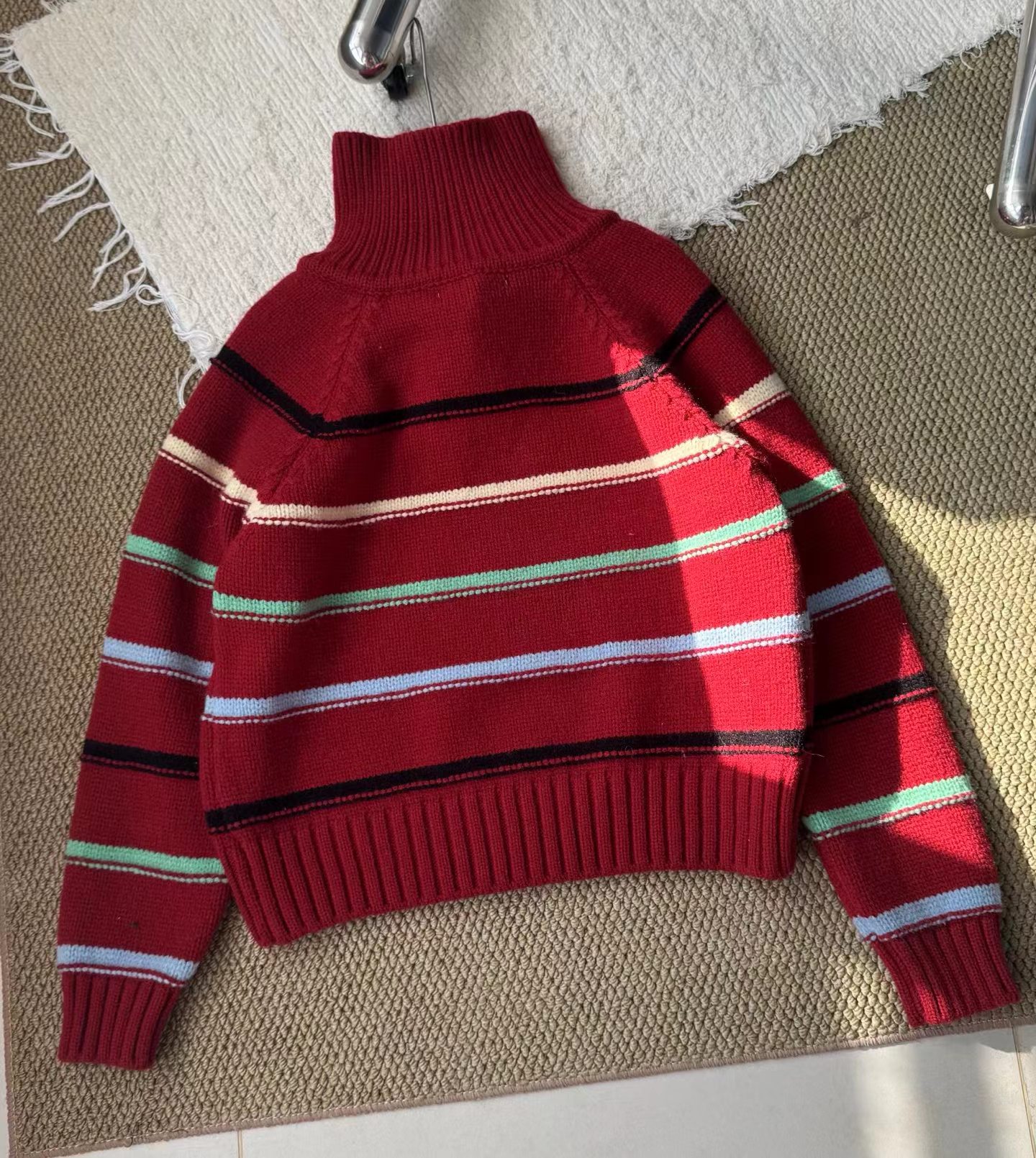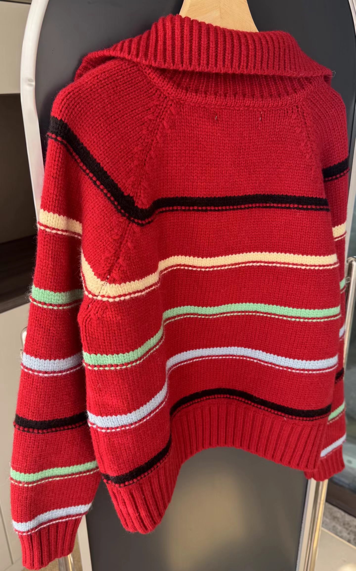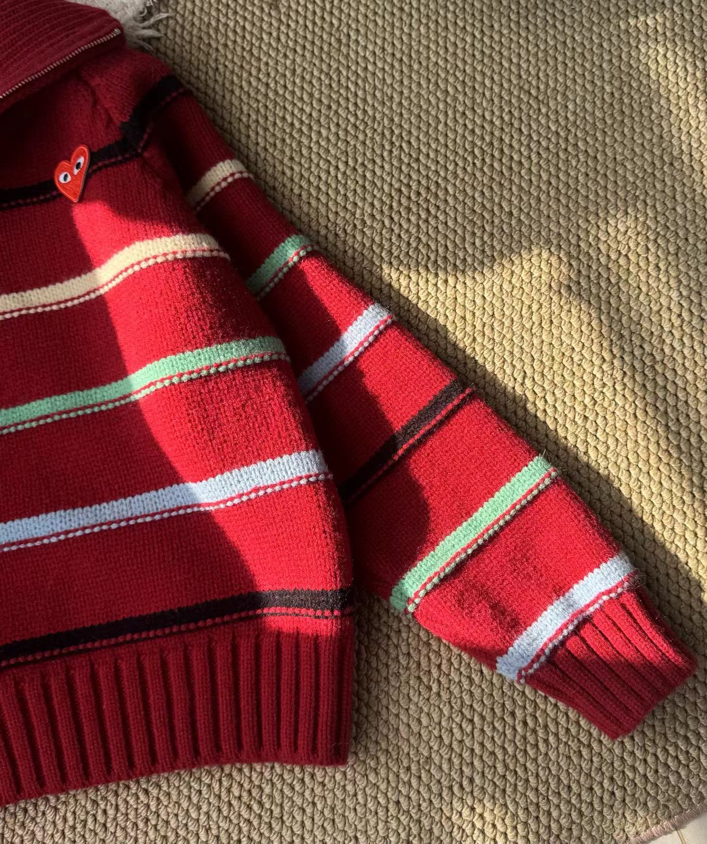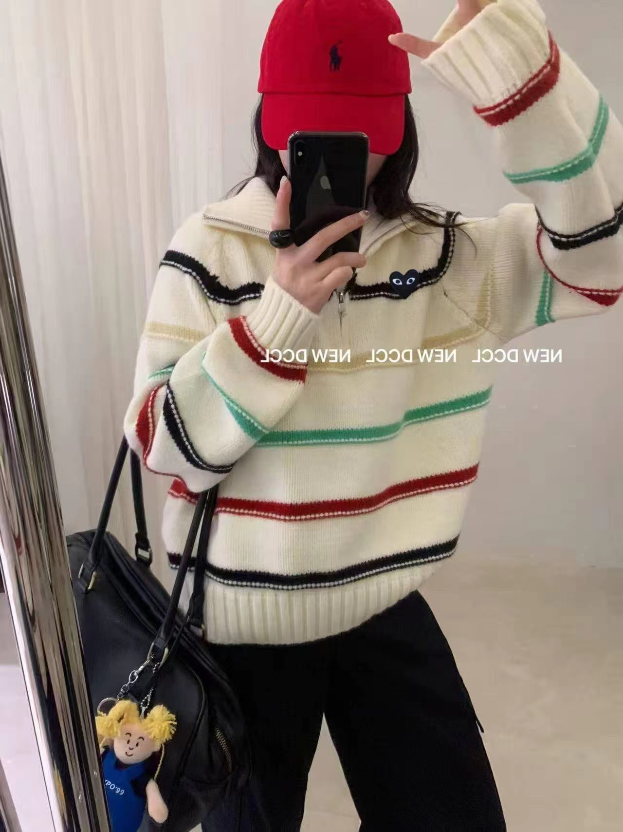 半拉链针织毛衣是兼具时尚感与氛围感的日系秋冬款,波浪形条纹,色彩碰撞活泼又亮眼,基底也让衣服自带节日与新年氛围。采用宽松的短款版型,对身材包容度高,还能拉高腰线优化比例;袖口和下摆做了罗纹收口设计,贴合身形又防风。半拉链的高领设计,可自由调节领口开合度,兼具实用性与造型感;粗线针织的工艺让衣服质感厚实,保暖性也更佳。整体是休闲韩系风,既可以搭配牛仔裤、休闲裤打造日常随性穿搭,也能配半身裙营造甜酷混搭效果。