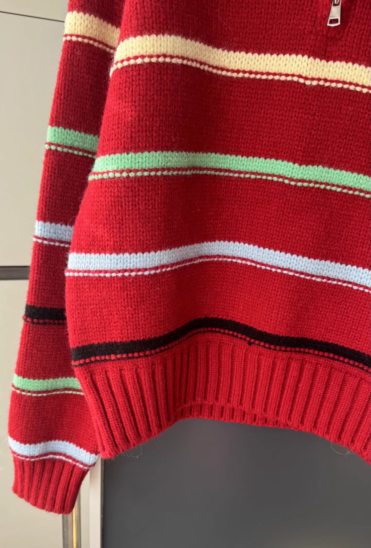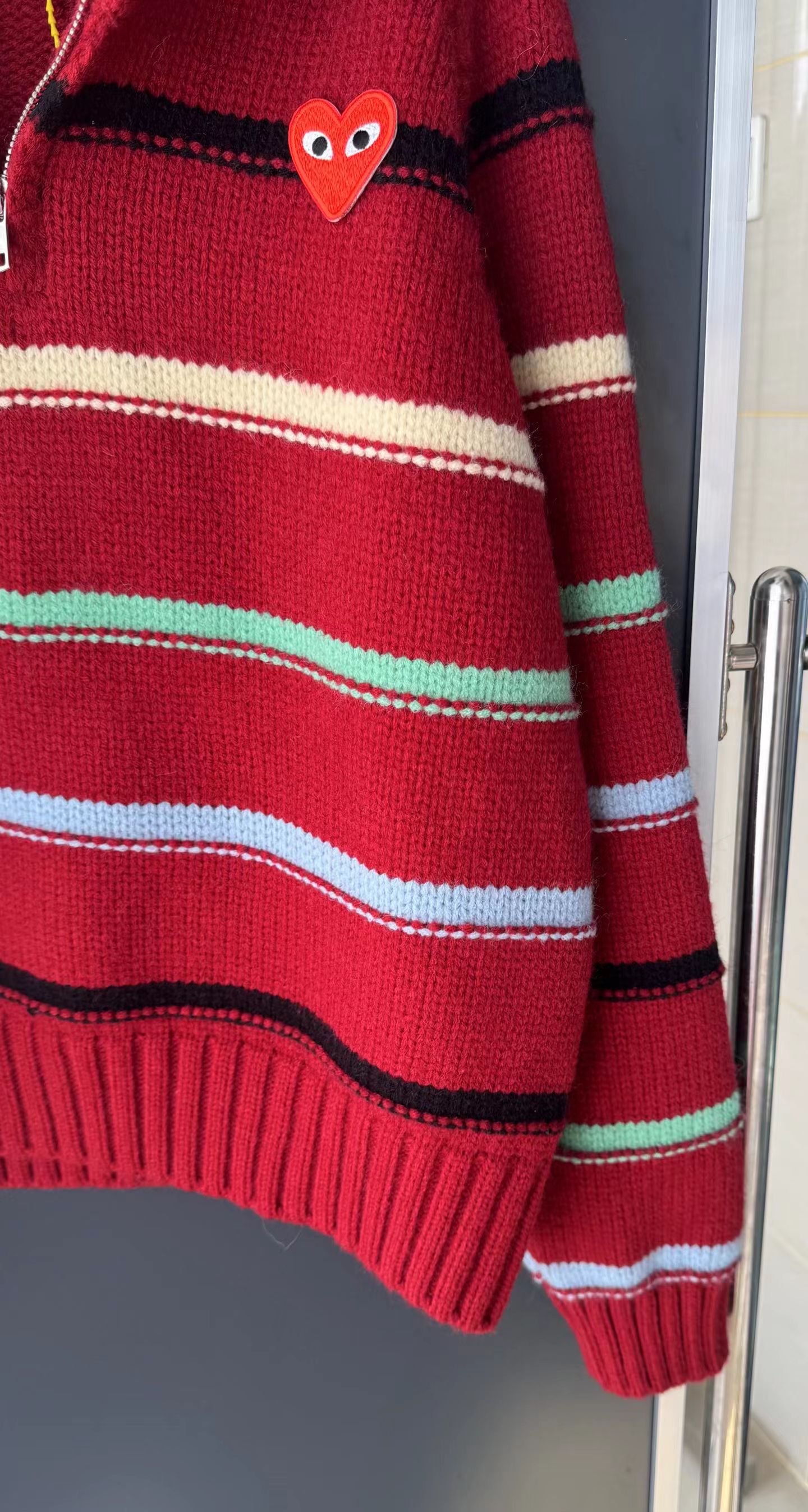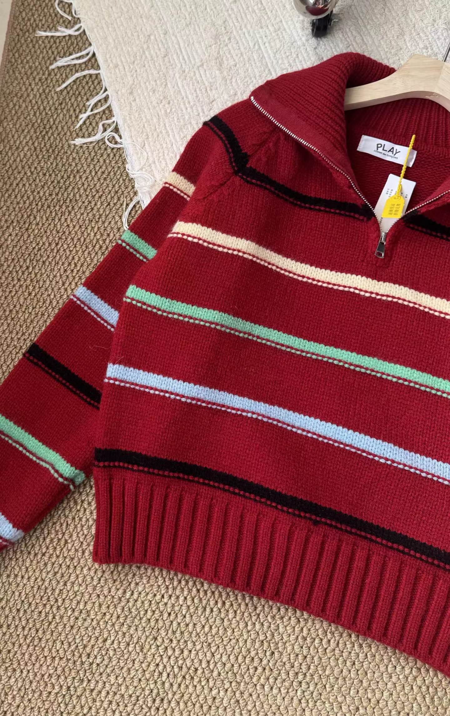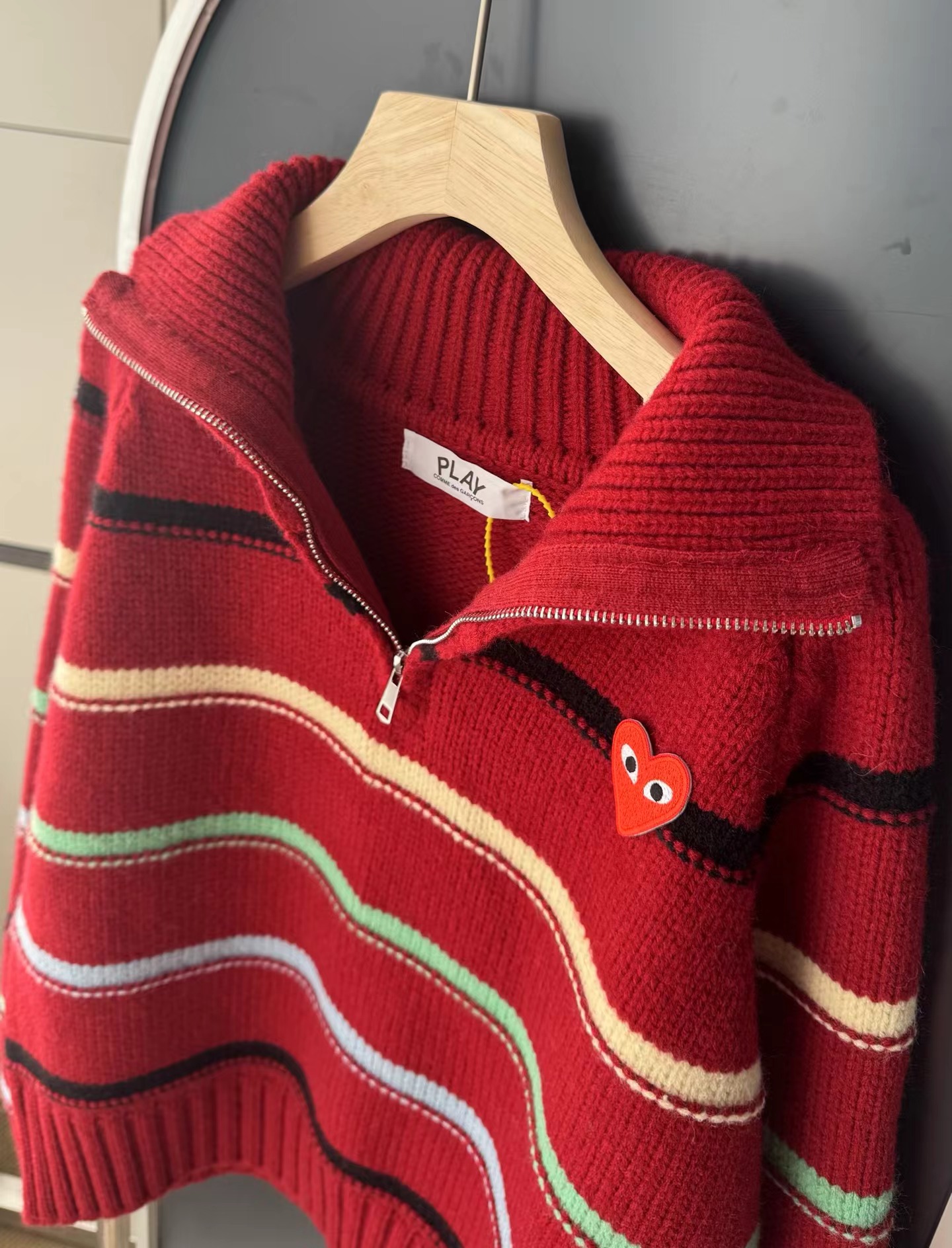 半拉链针织毛衣是兼具时尚感与氛围感的日系秋冬款,波浪形条纹,色彩碰撞活泼又亮眼,基底也让衣服自带节日与新年氛围。采用宽松的短款版型,对身材包容度高,还能拉高腰线优化比例;袖口和下摆做了罗纹收口设计,贴合身形又防风。半拉链的高领设计,可自由调节领口开合度,兼具实用性与造型感;粗线针织的工艺让衣服质感厚实,保暖性也更佳。整体是休闲韩系风,既可以搭配牛仔裤、休闲裤打造日常随性穿搭,也能配半身裙营造甜酷混搭效果。
