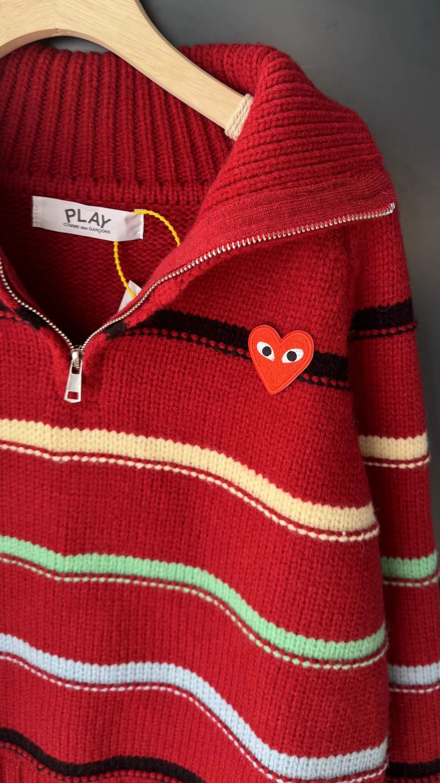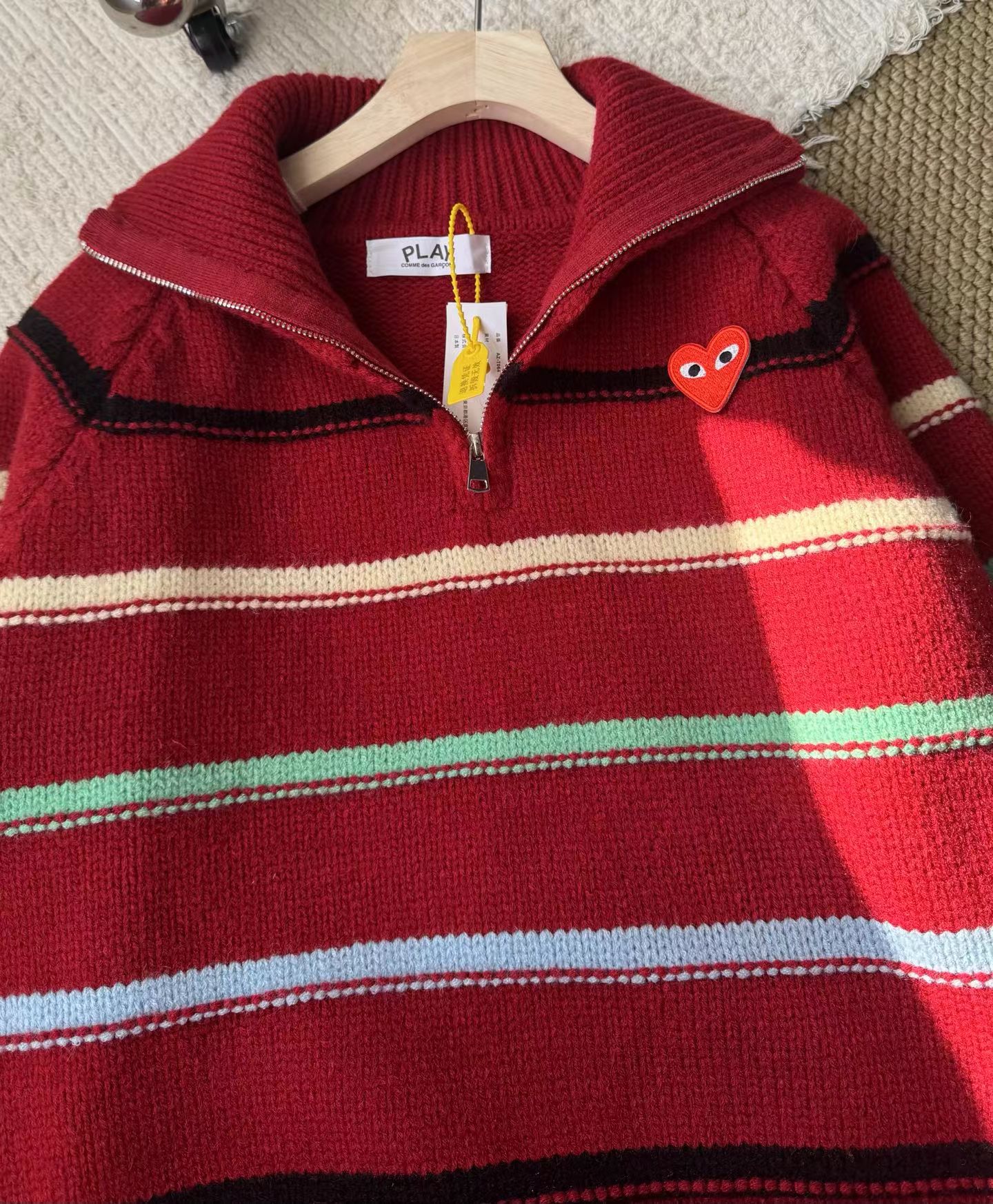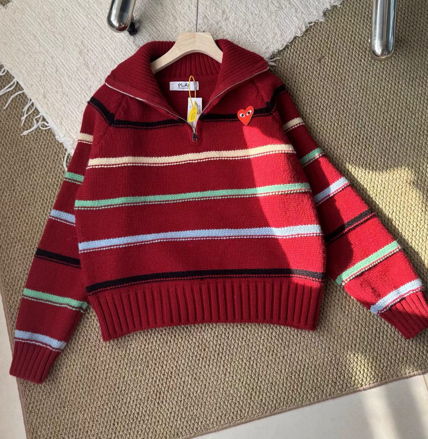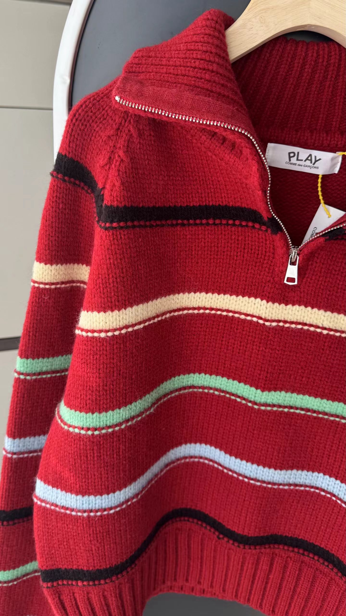 半拉链针织毛衣是兼具时尚感与氛围感的日系秋冬款,波浪形条纹,色彩碰撞活泼又亮眼,基底也让衣服自带节日与新年氛围。采用宽松的短款版型,对身材包容度高,还能拉高腰线优化比例;袖口和下摆做了罗纹收口设计,贴合身形又防风。半拉链的高领设计,可自由调节领口开合度,兼具实用性与造型感;粗线针织的工艺让衣服质感厚实,保暖性也更佳。整体是休闲韩系风,既可以搭配牛仔裤、休闲裤打造日常随性穿搭,也能配半身裙营造甜酷混搭效果。