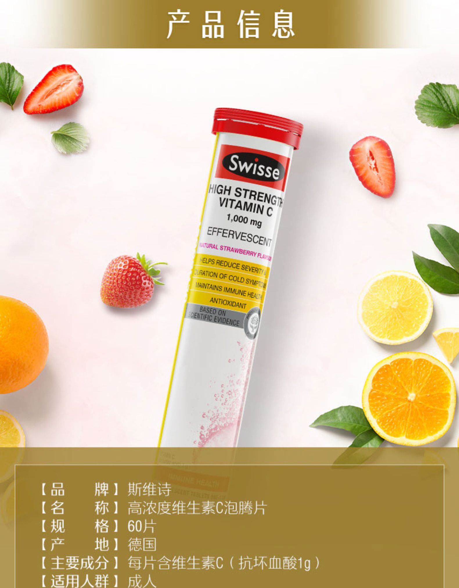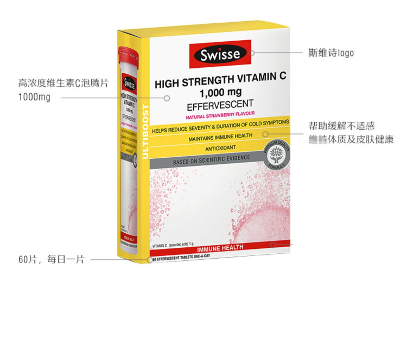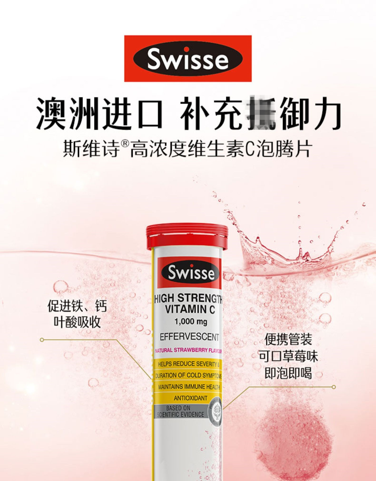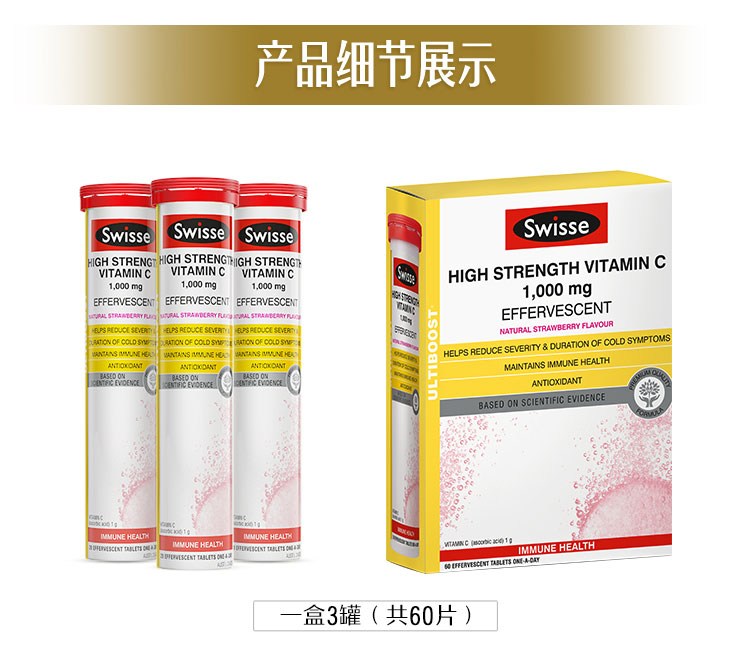 【保税区包邮直发】澳洲 Swisse 草莓味 高强度维生素泡腾片 3管 26.09