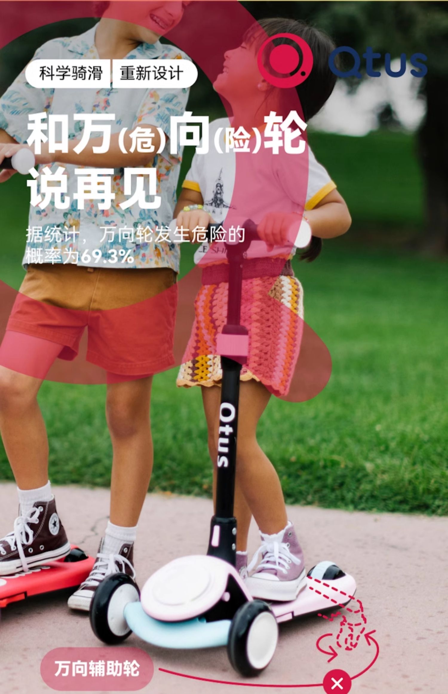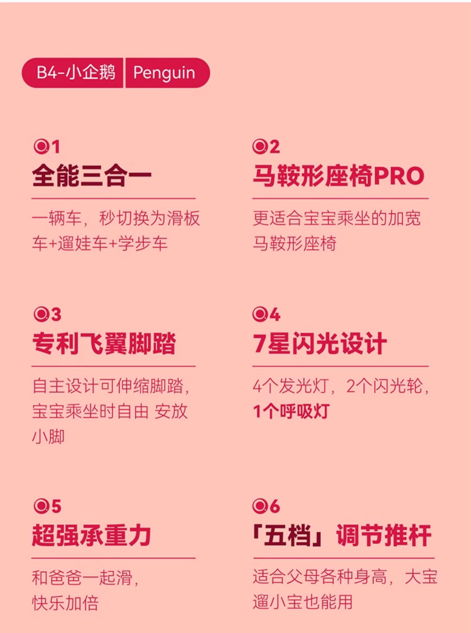 9楼母婴生活馆 Qtus昆塔斯B4Penguin小企鹅三合一滑板车 吊牌价:899元 活动价:869元