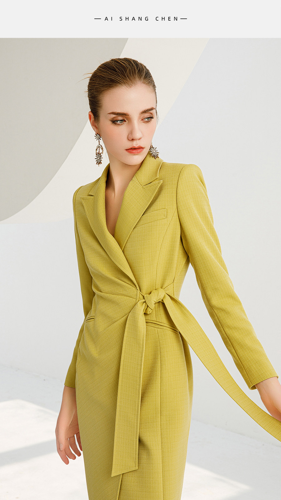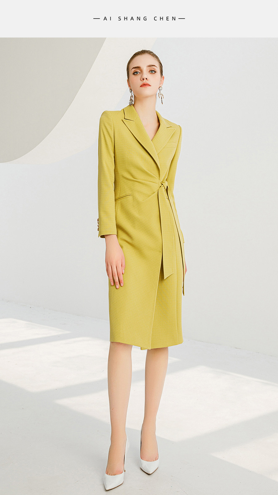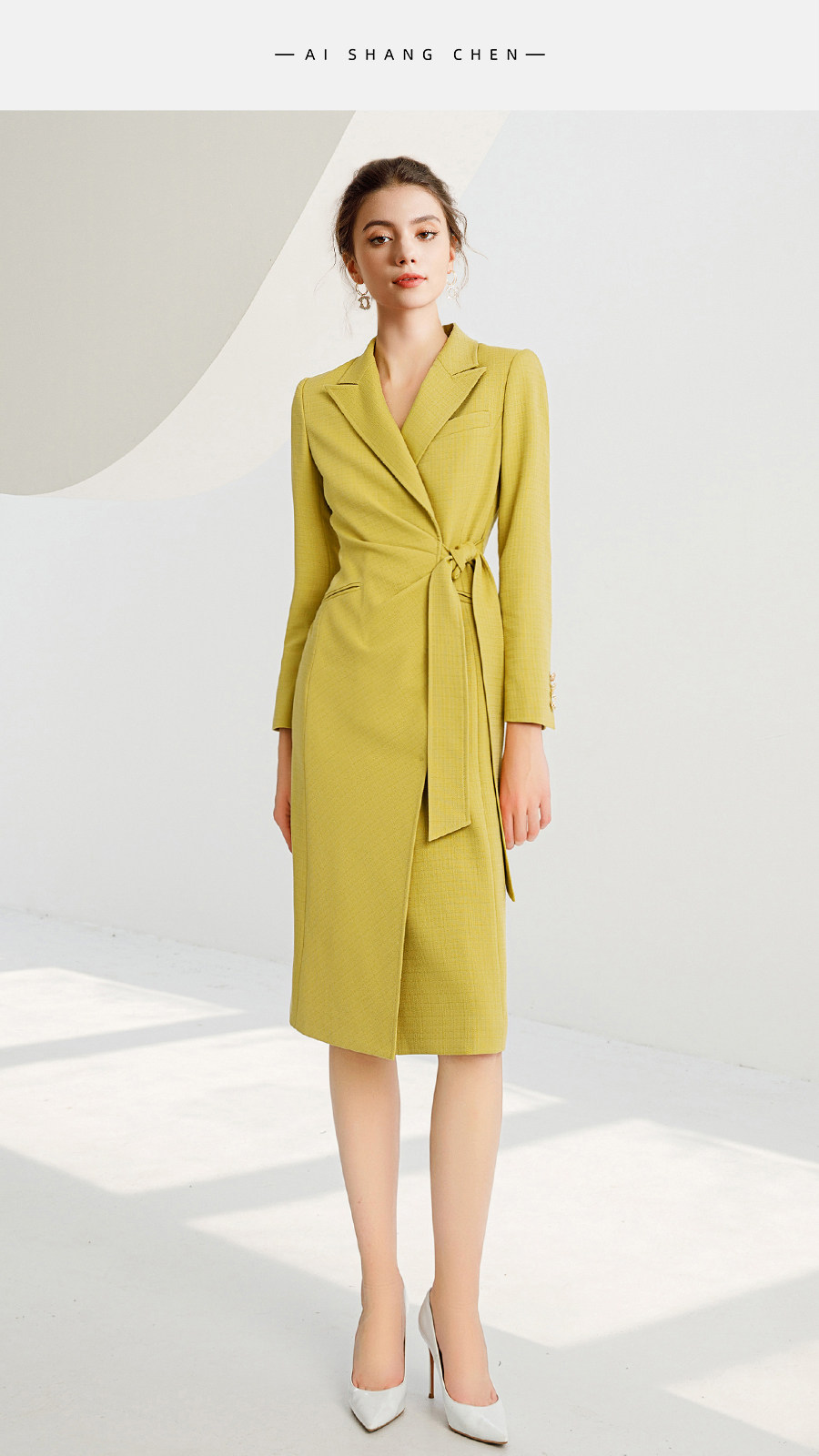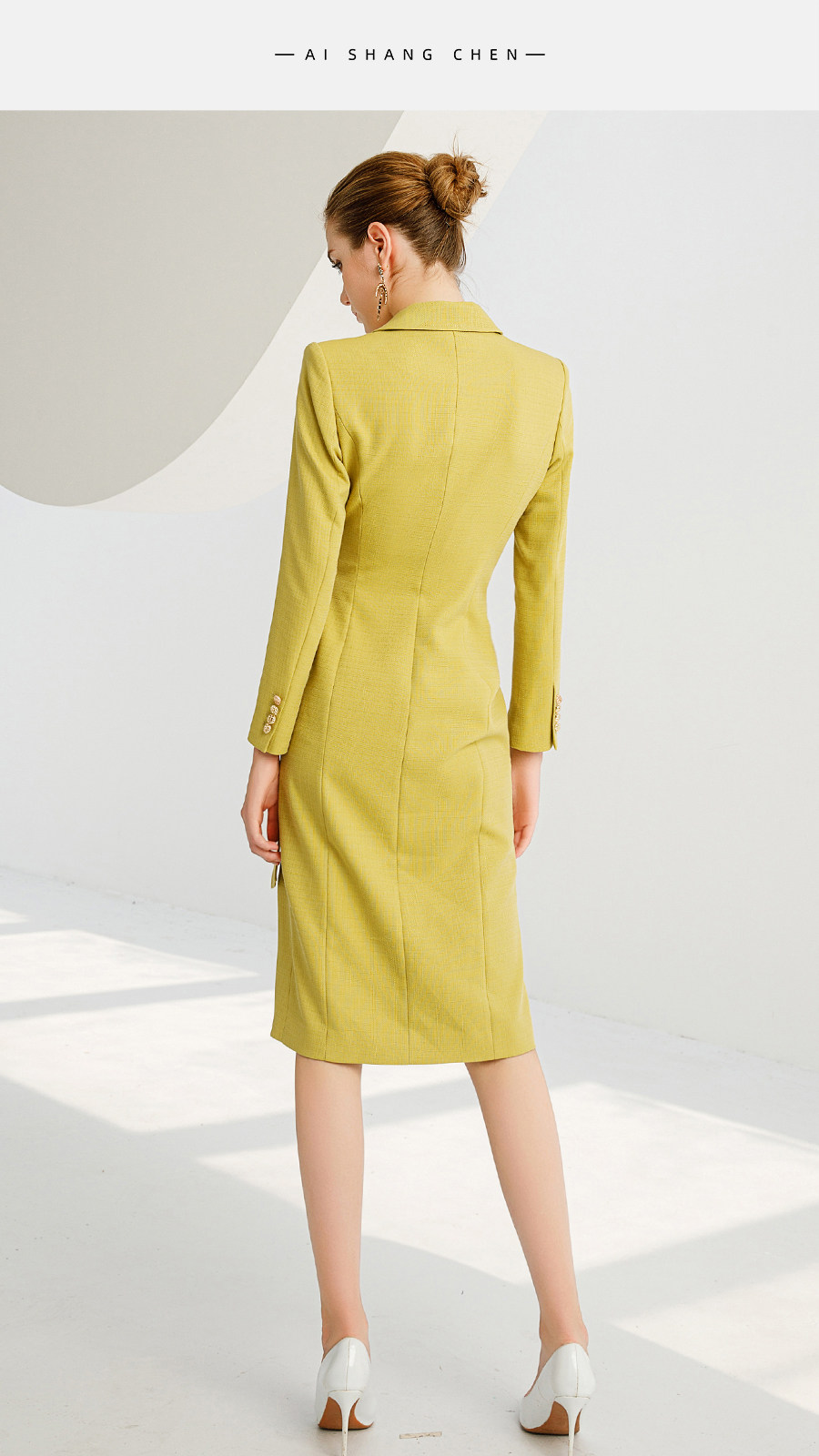 艾尚臣牛油果色高级感职业连衣裙女中长款西装裙收腰通勤正式场合