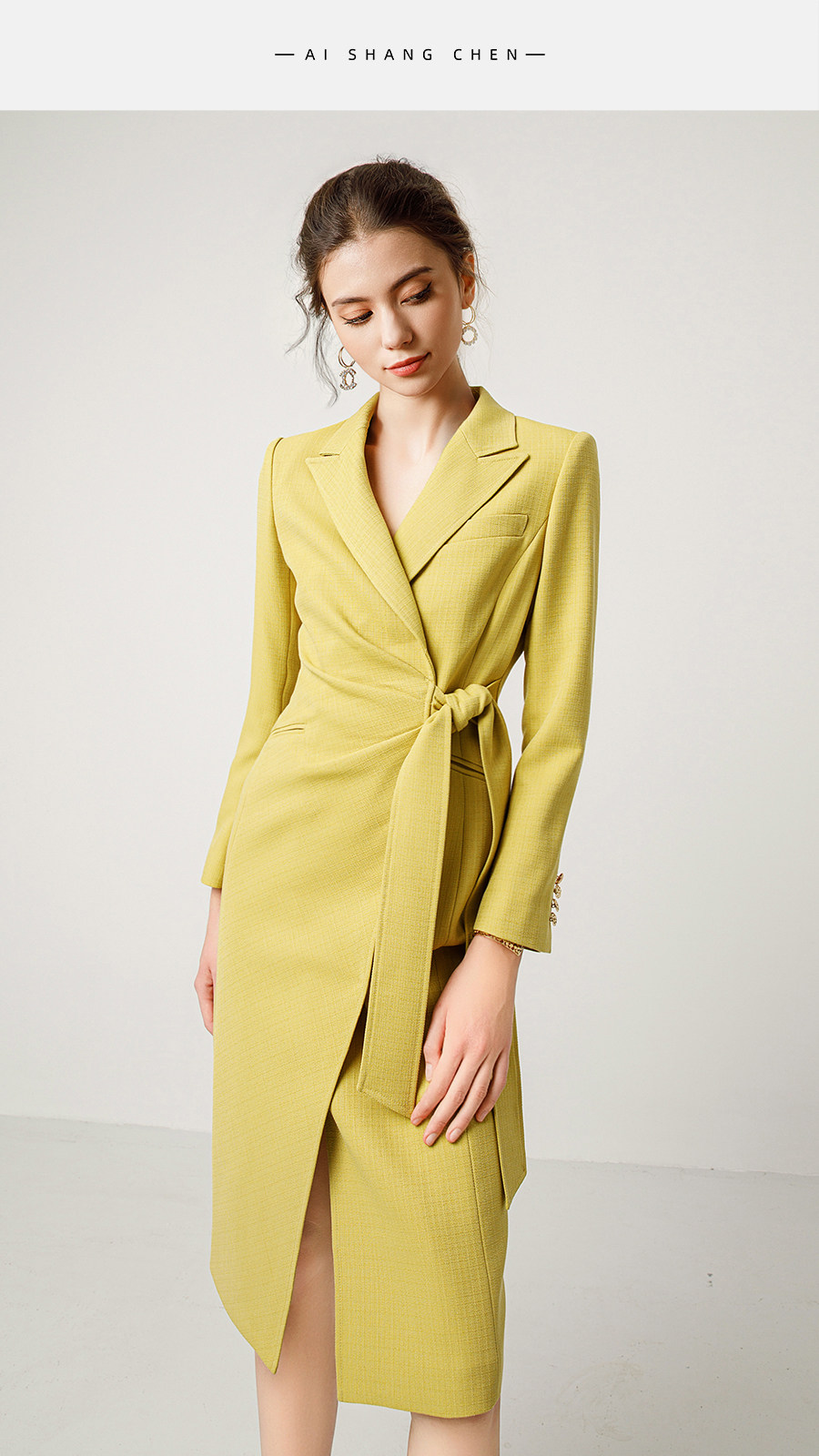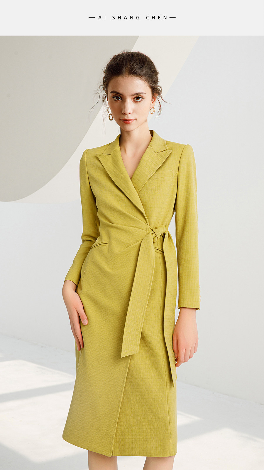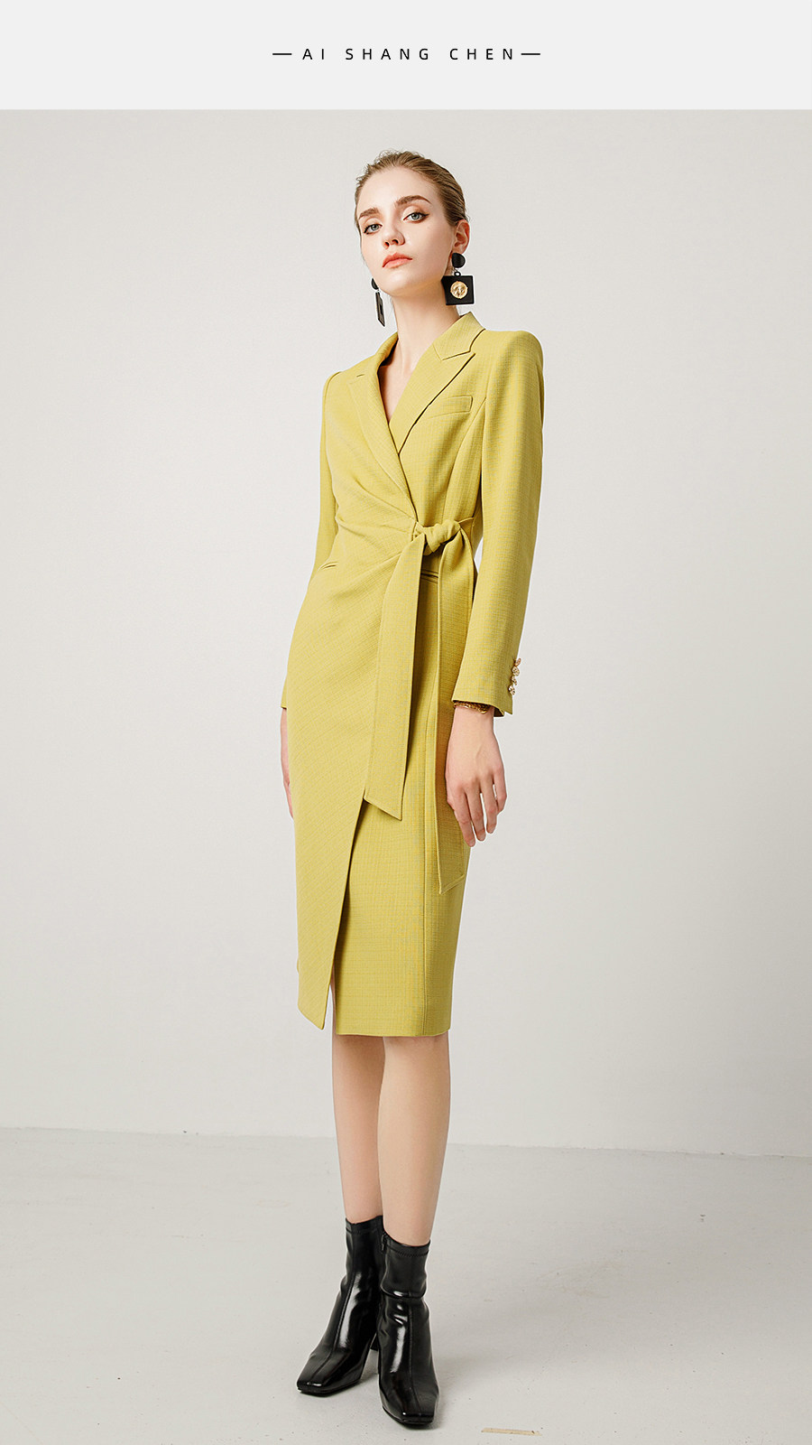 艾尚臣牛油果色高级感职业连衣裙女中长款西装裙收腰通勤正式场合
