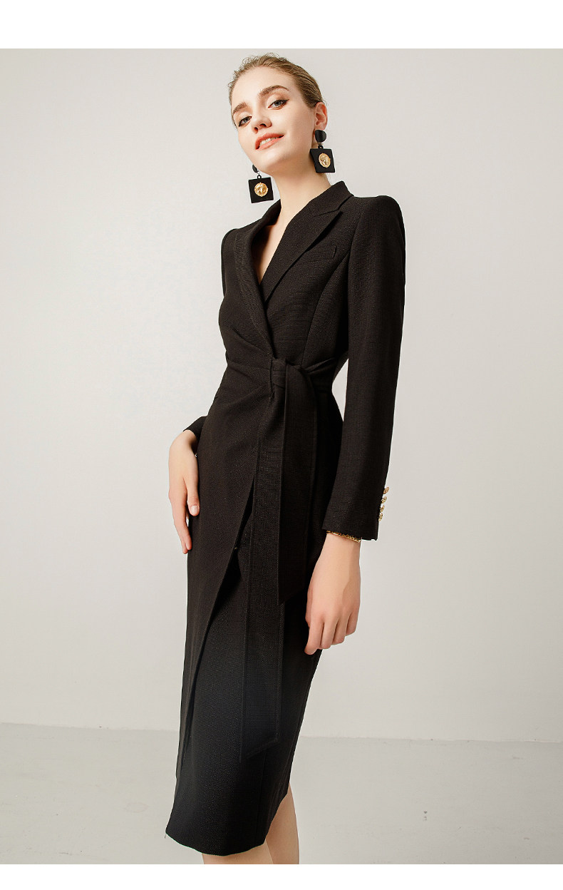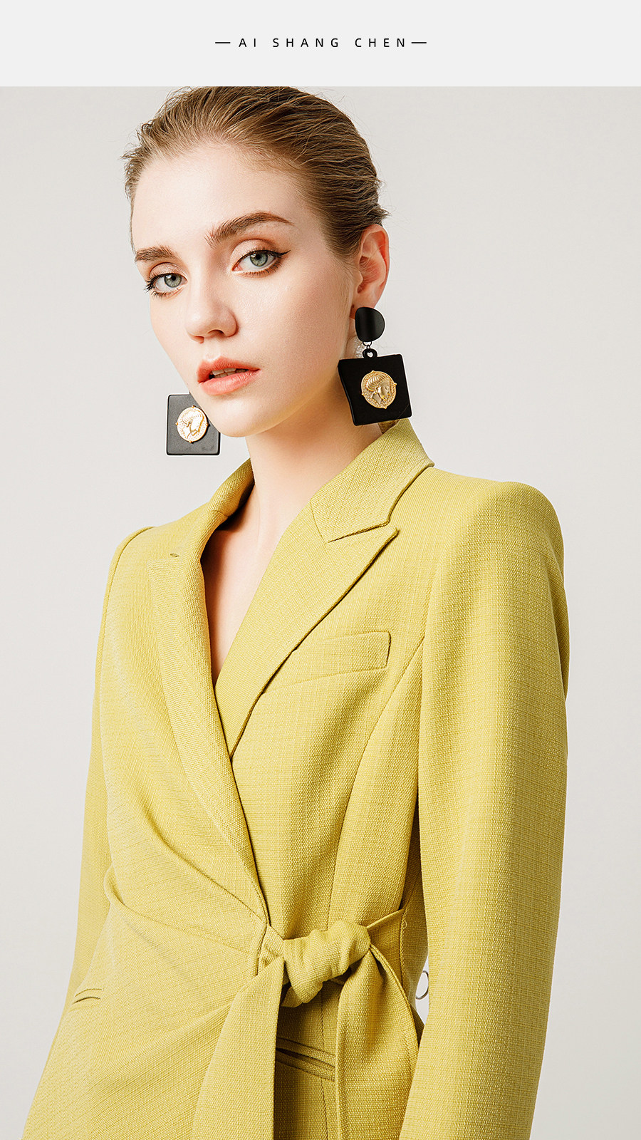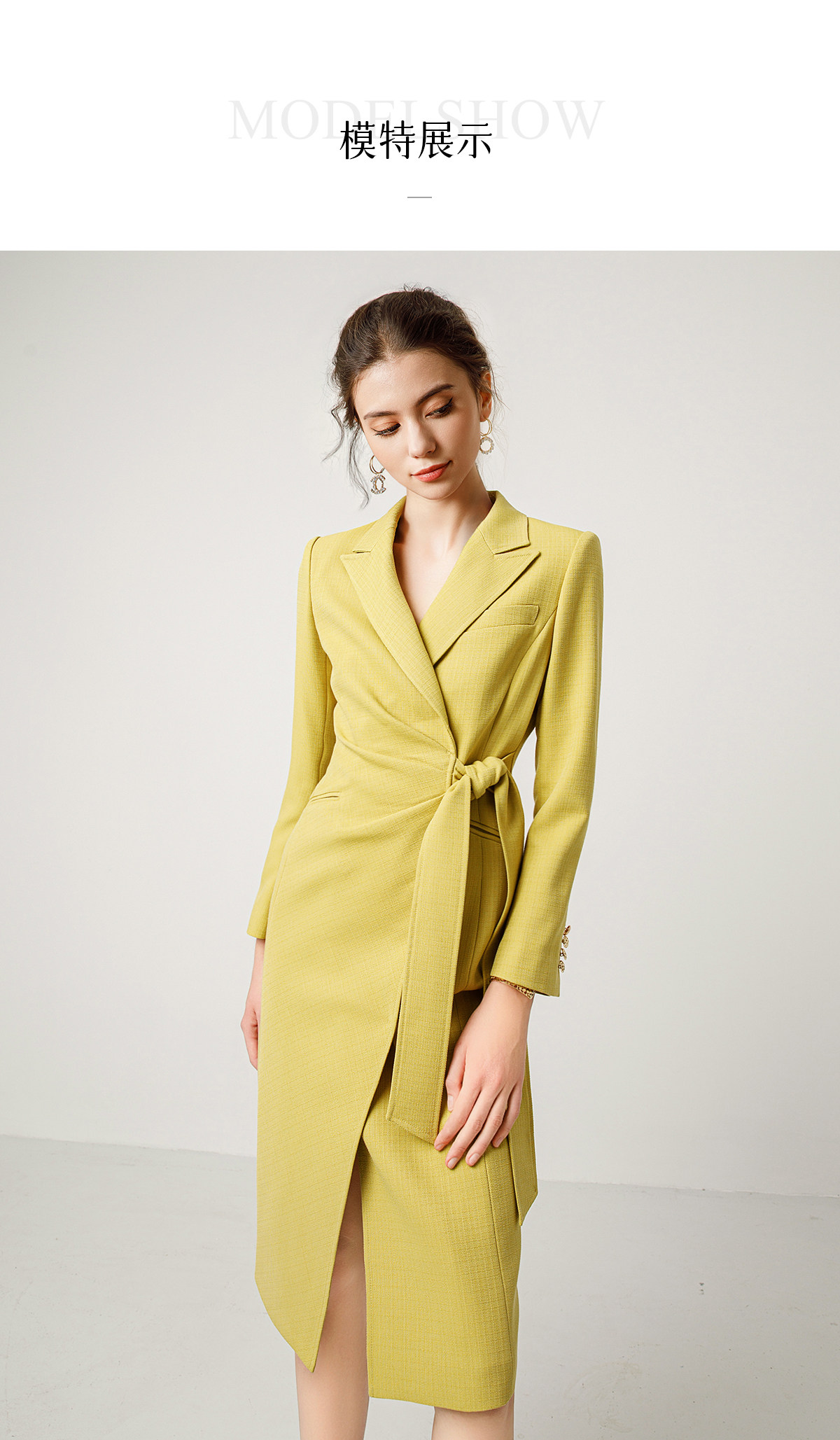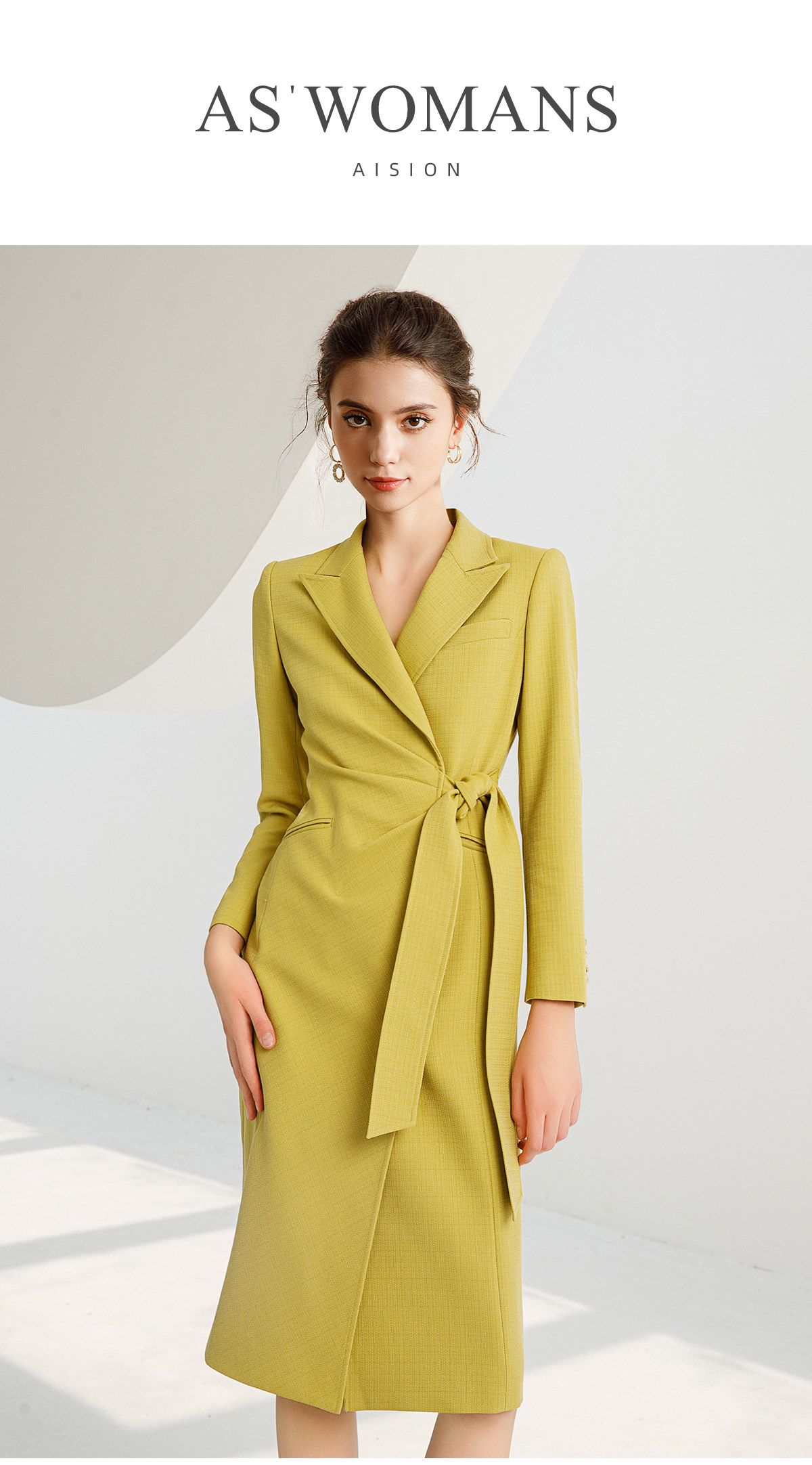 艾尚臣牛油果色高级感职业连衣裙女中长款西装裙收腰通勤正式场合