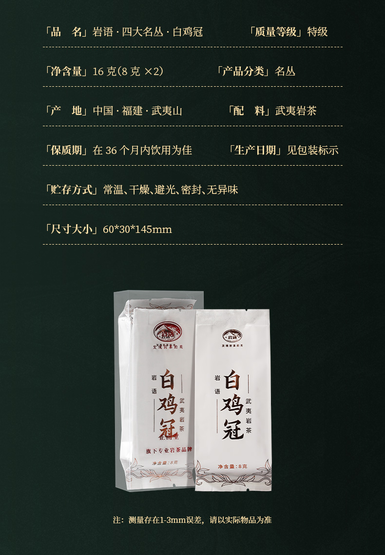 岩语 白鸡冠 武夷岩茶四大名丛武特级乌龙茶试饮装品鉴装16g