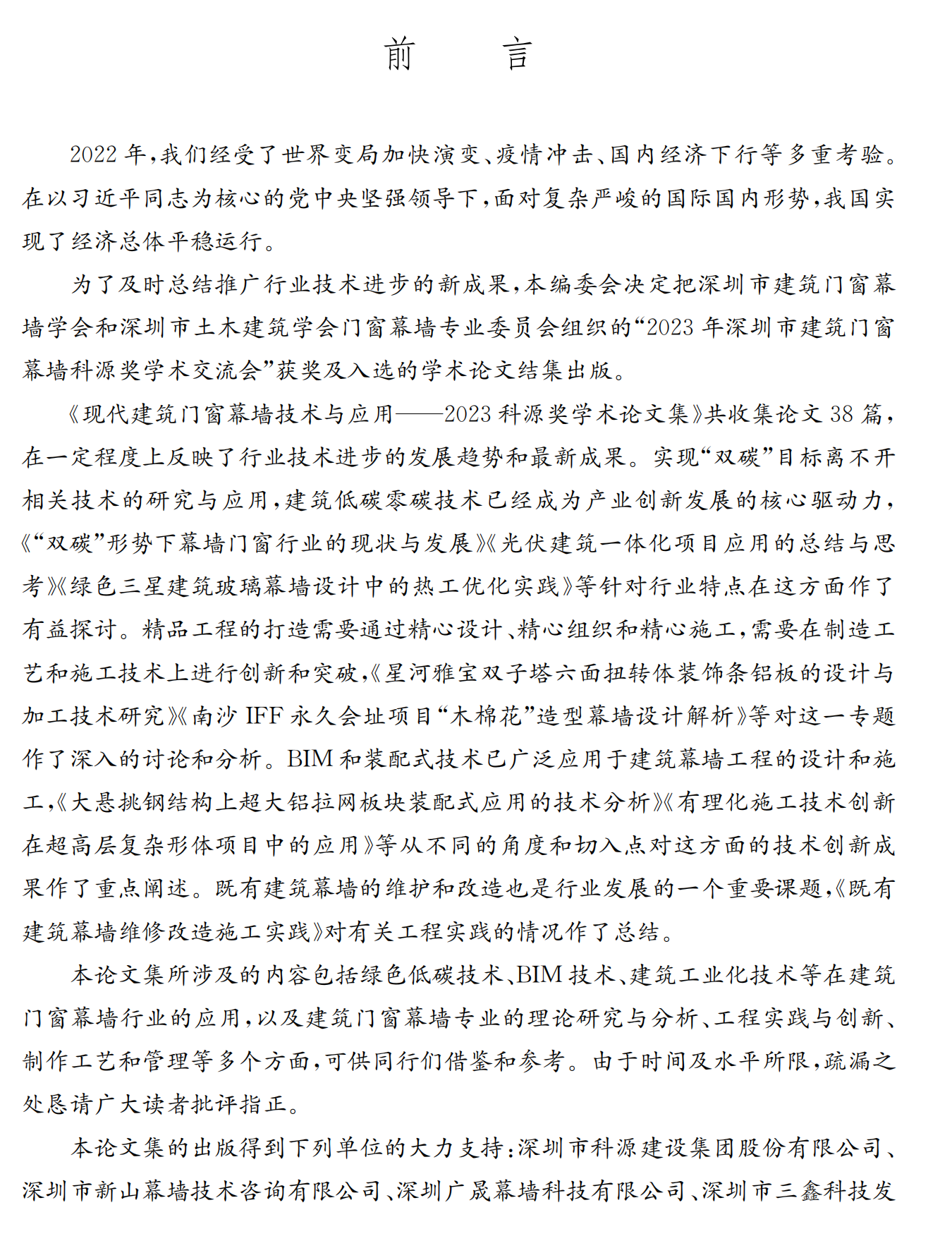 现代建筑门窗幕墙技术与应用2023科源奖学术论文集