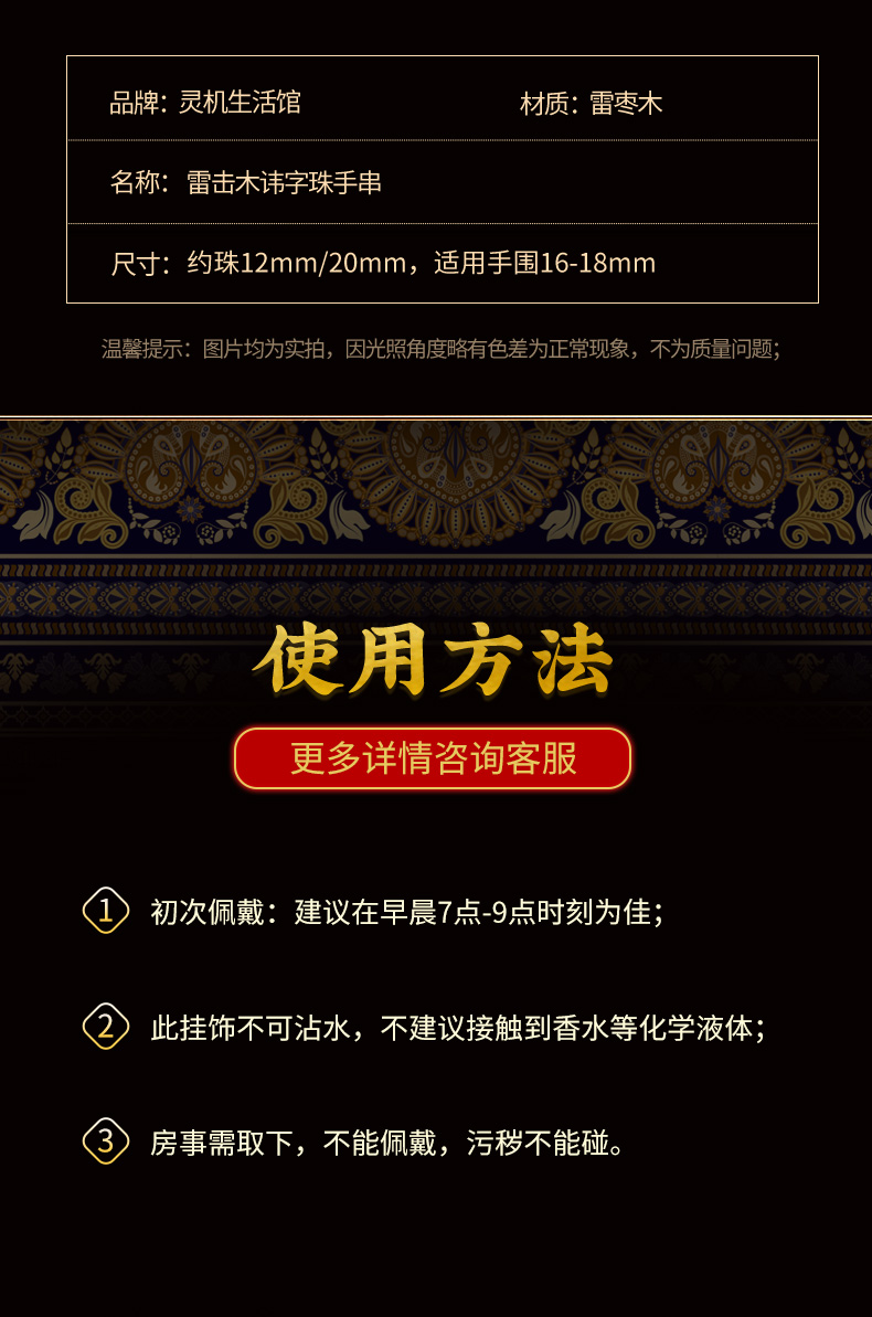灵机生活馆 雷击枣木讳字珠手串 身弱体弱者戴