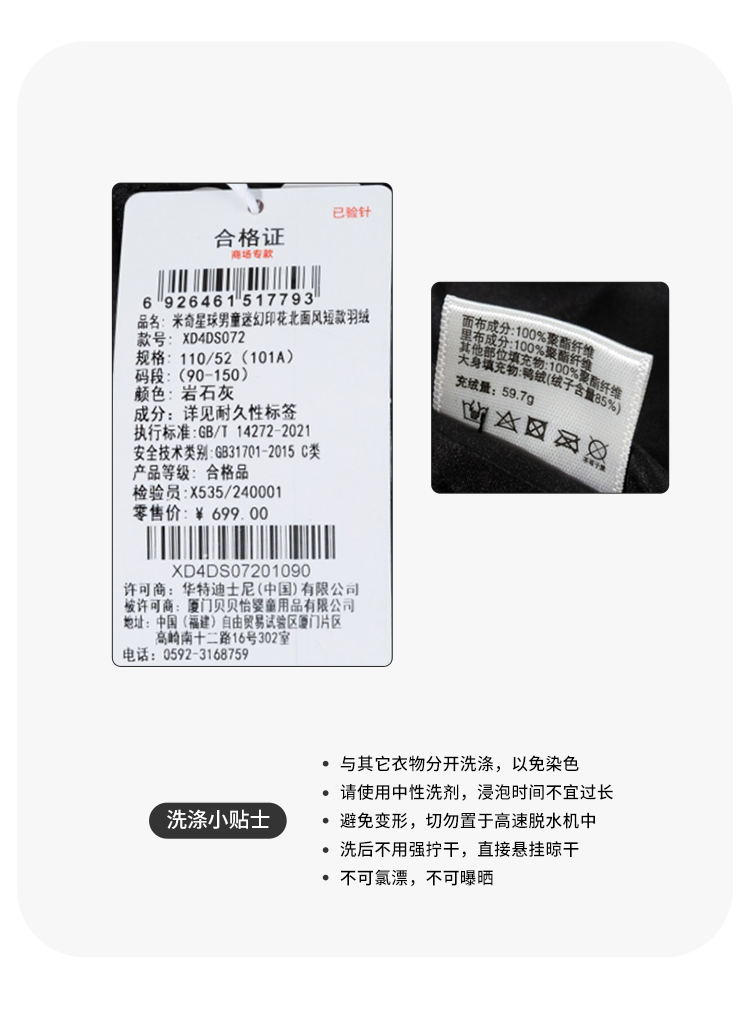 迪士尼男童冬季羽绒面包服羽绒服XD4DS072