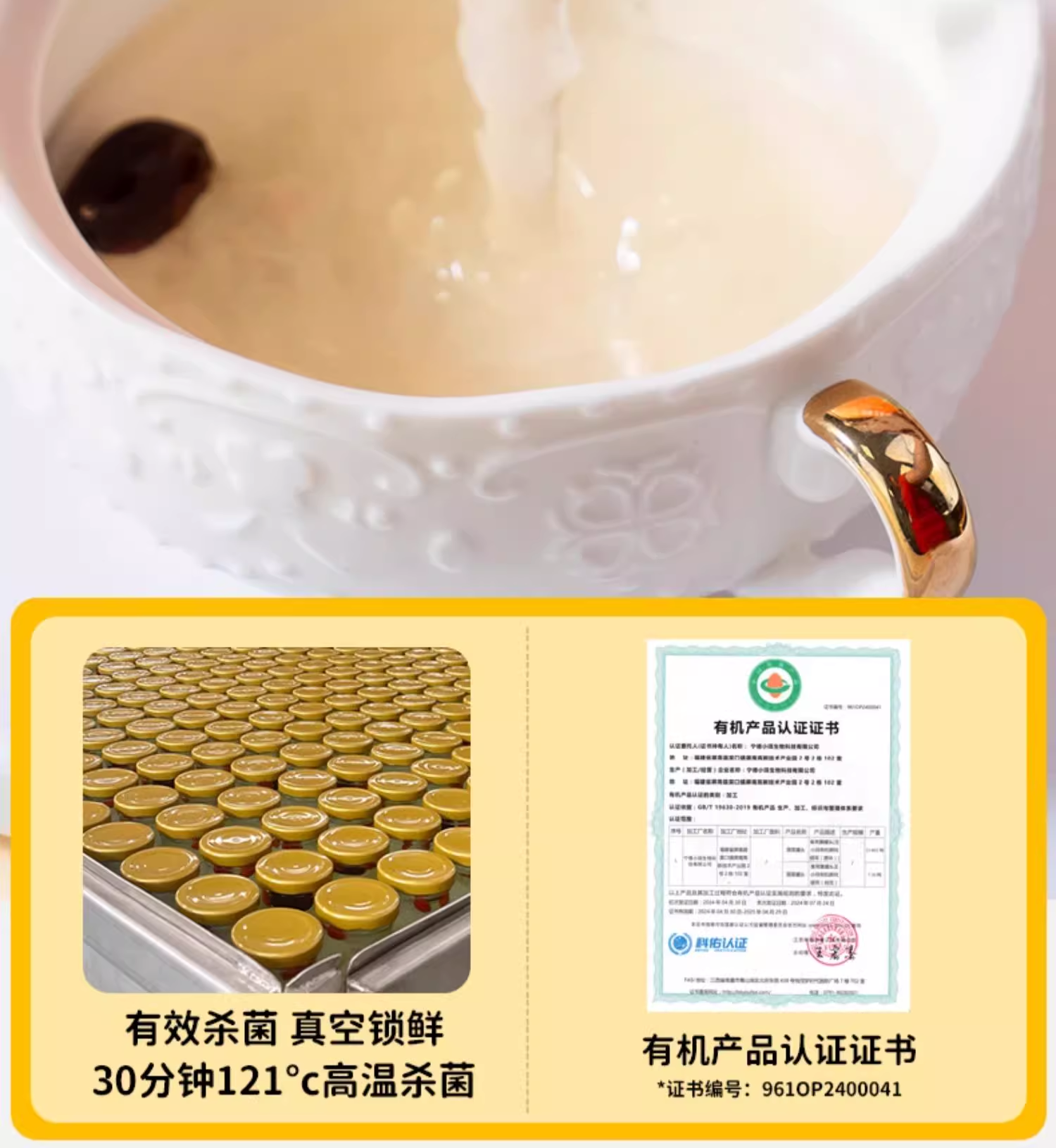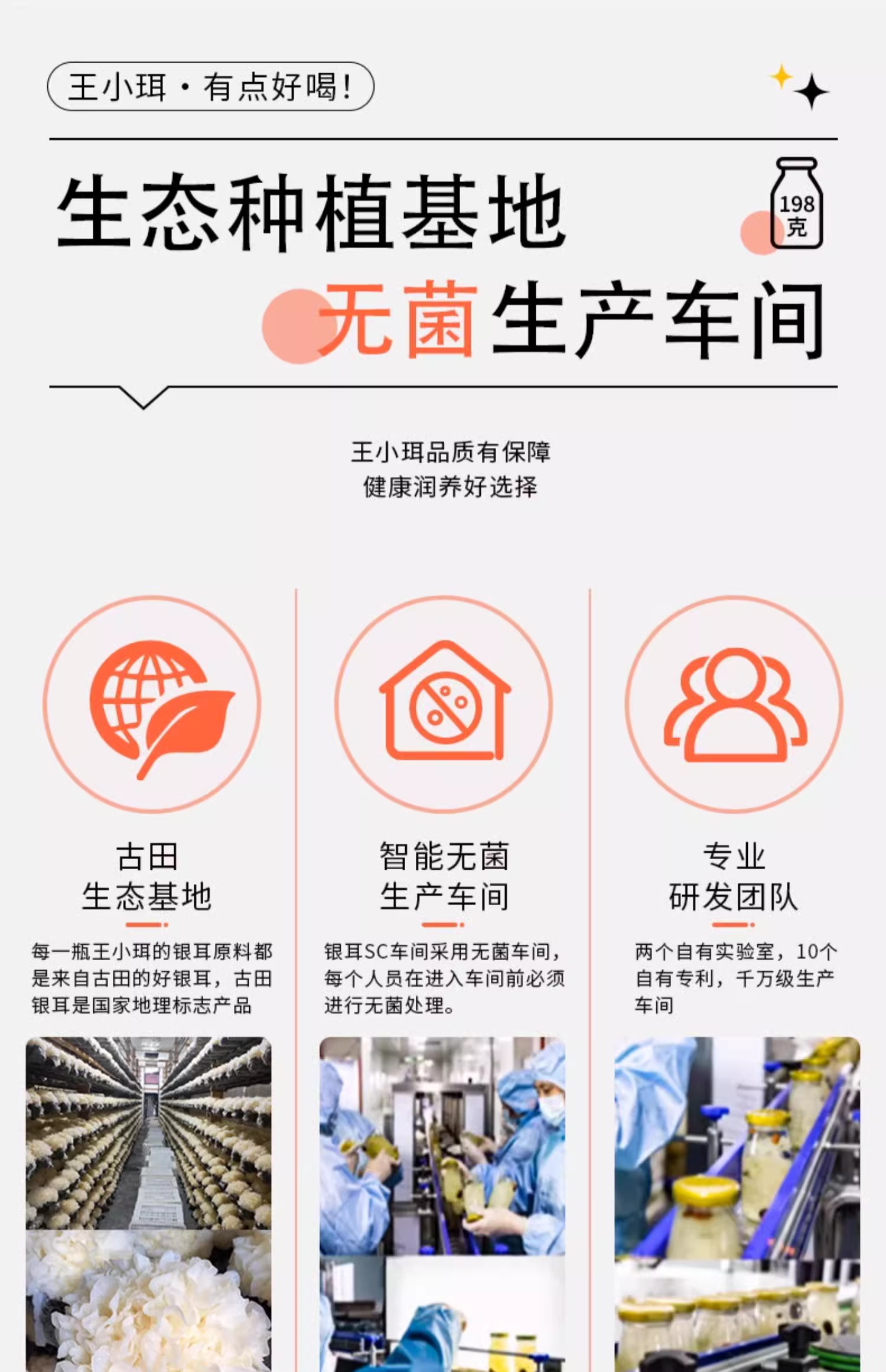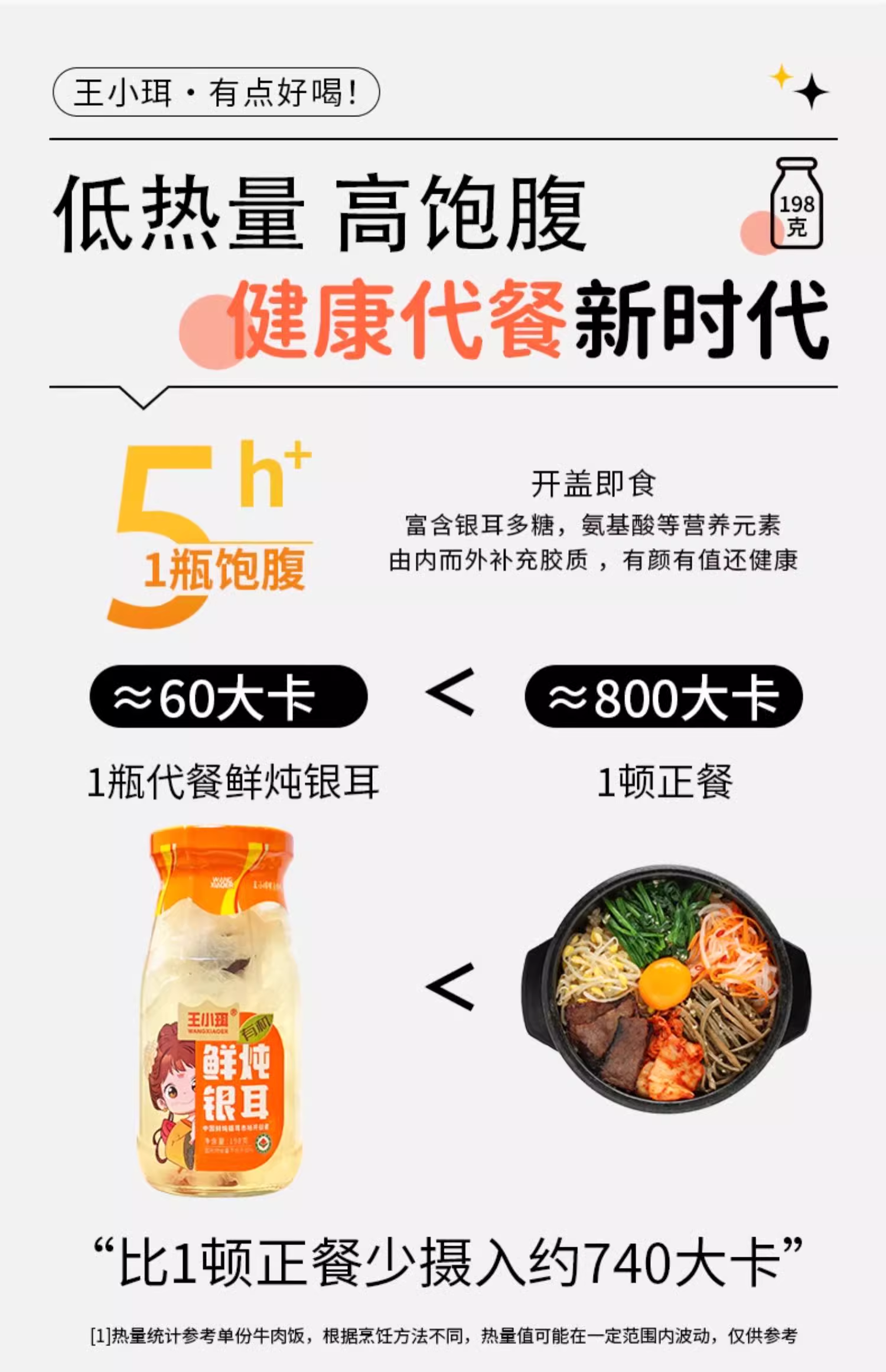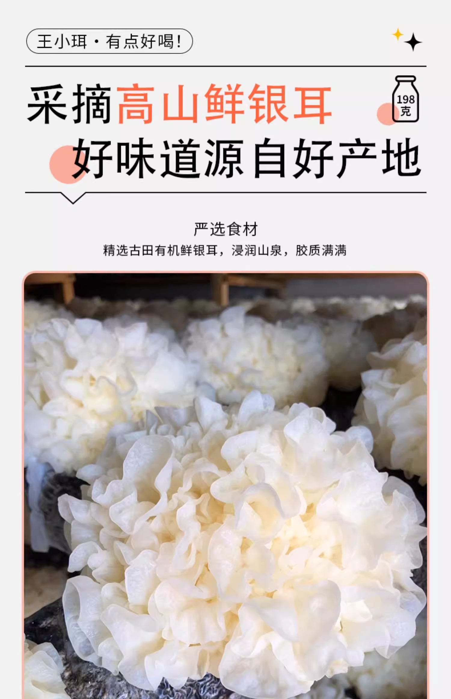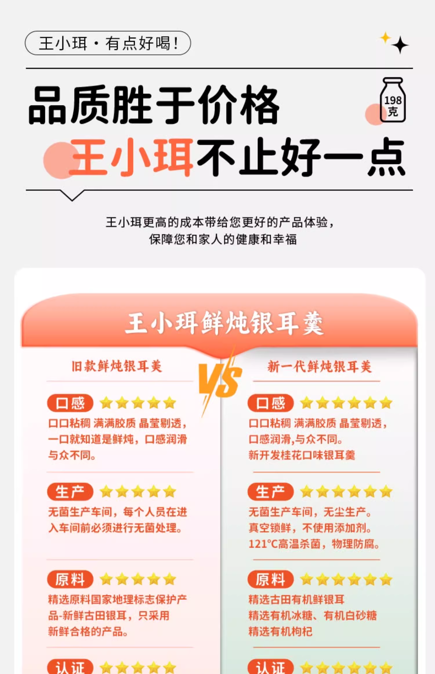 【1件起全国包邮】王小珥 鲜炖有机银耳羹 即食免煮瓶装0脂肪(198g*6瓶*1箱)