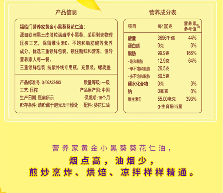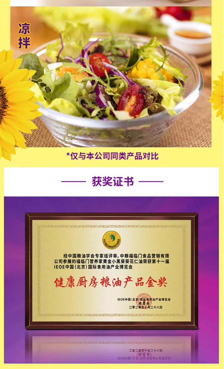 中粮福临门唯粹金典小黑葵葵花仁油礼盒 1.45L*3瓶/盒【CZ】