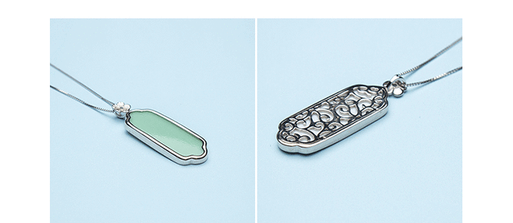 清影 手工陶瓷吊坠项链925纯银电镀白金锁骨连 送女友爱人礼物