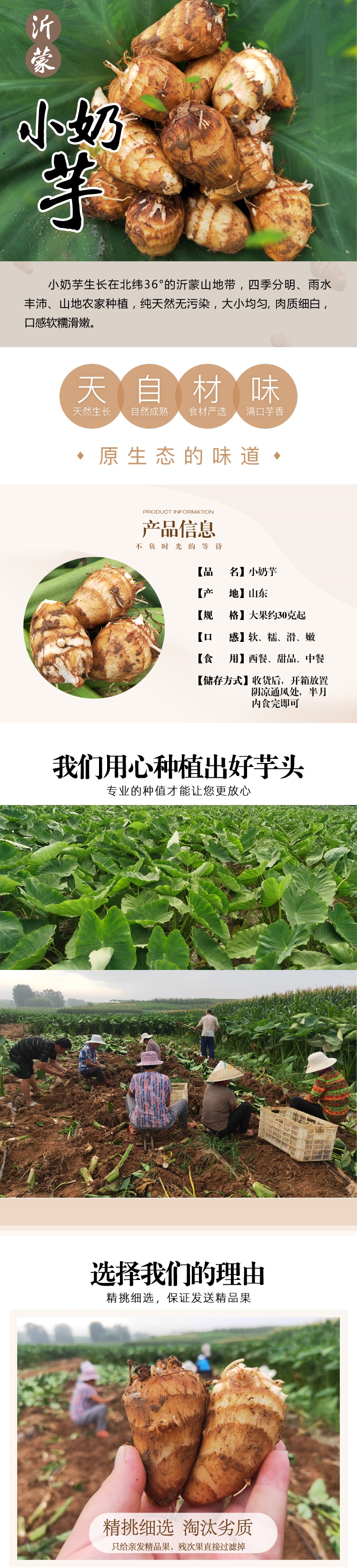 品名: 牛奶小奶芋规格1:3斤彩箱 规格2:5斤彩箱 单斤约10-13个,具体以重量为准;生鲜产品±100g水份差~ 包装方式:彩箱 快递:中通/申通/随机 运费模板:广西、云南+3元;北京上海+1.5元;内蒙古、海南、新疆 、西藏、黑龙江,吉林,辽宁,青海,甘肃,宁夏,港澳台不发货;其他区域包邮 发货时效:48-72小时 发货地/产地山东潍坊 保质期:收到后阴凉干燥处保存7-10天 销售售卖期:8月-来年4月 周六周天、节假日除外,早上十点之前的订单是48小时发货 ,到货时间约为2-5天,请您耐心等待 |