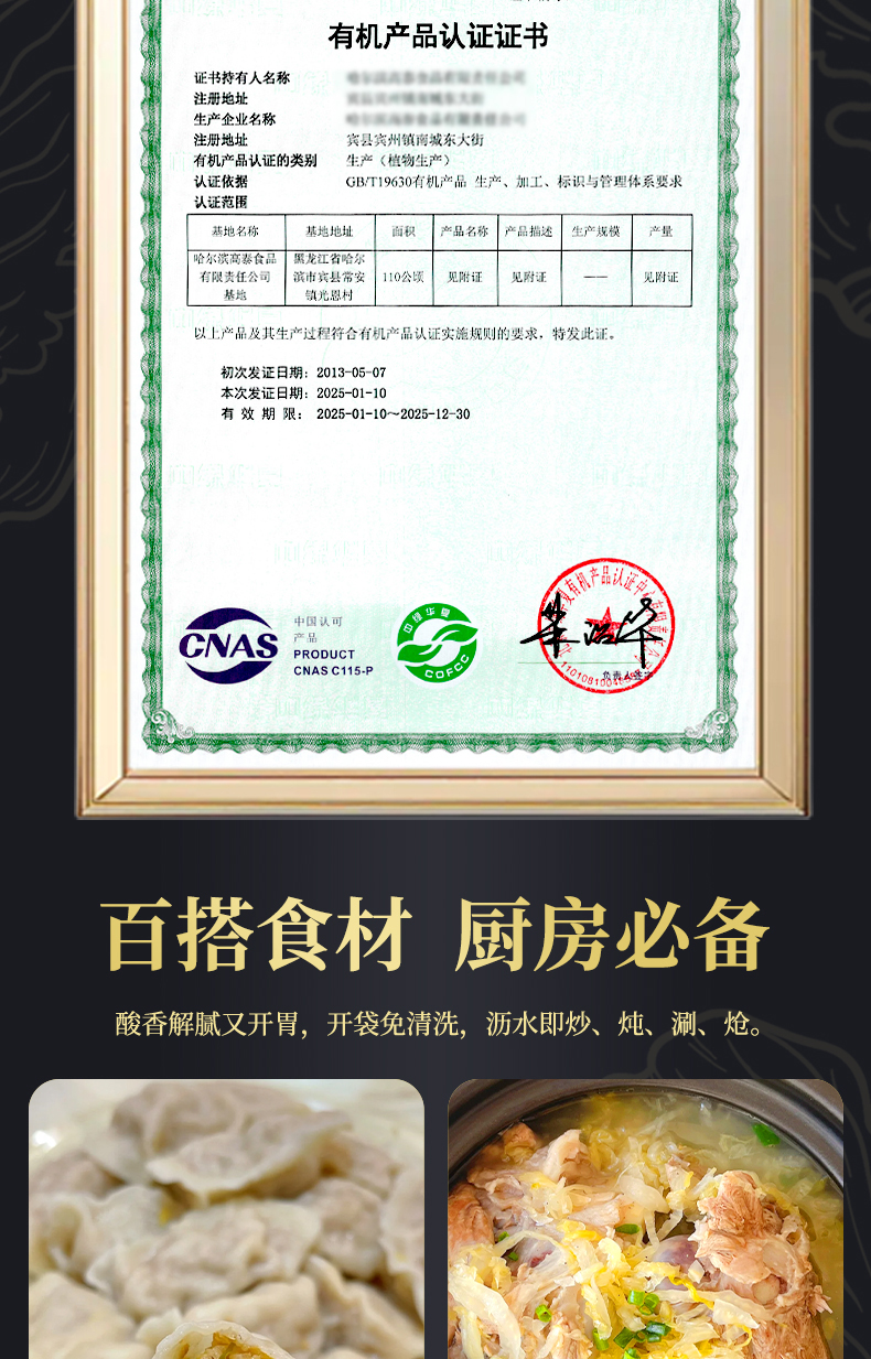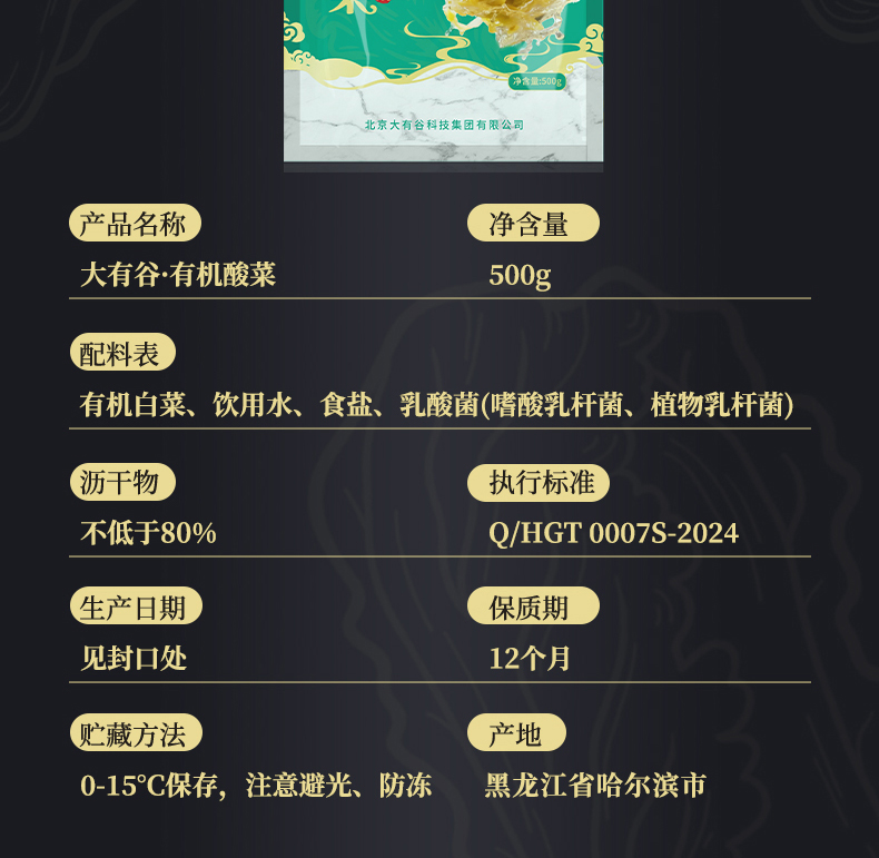 大有谷有机酸菜丝 传统乳酸菌正宗东北酸菜500g/袋