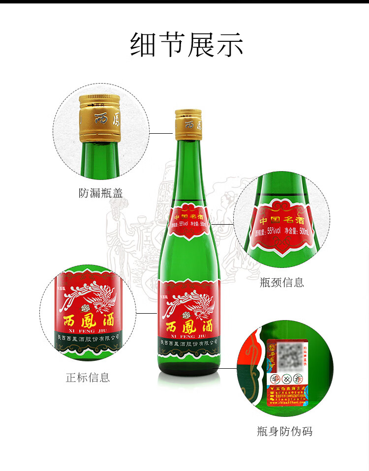【新品】西凤酒 裸瓶经典高脖 55度 500ml 凤香型纯粮高度白酒