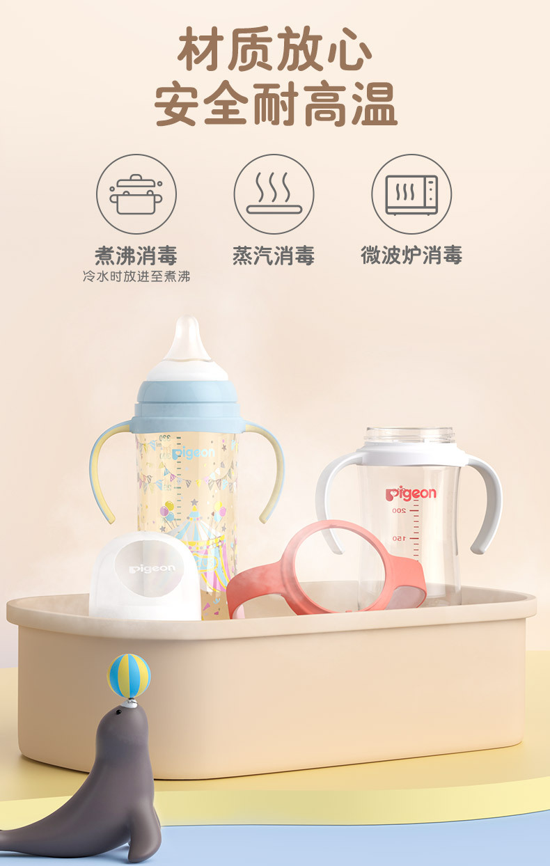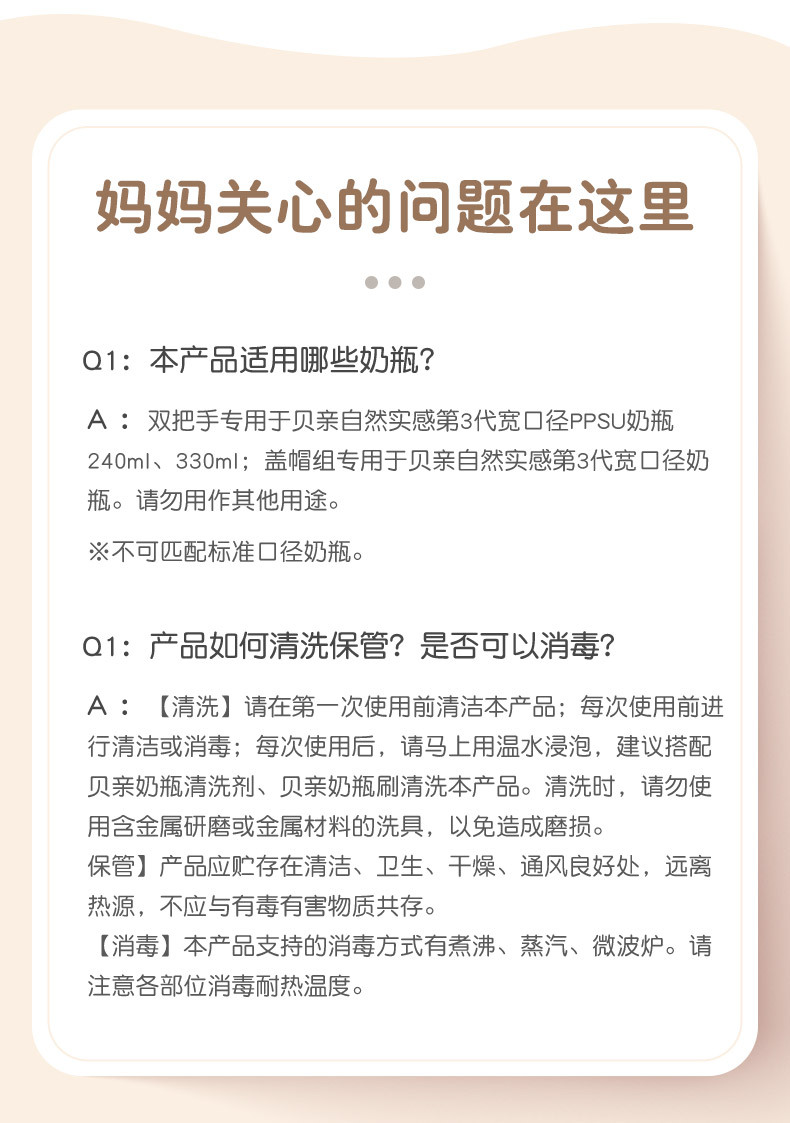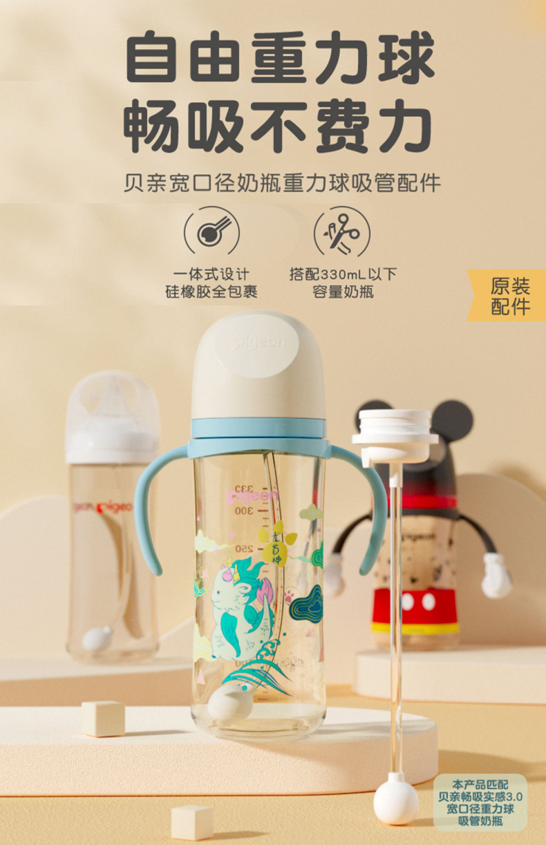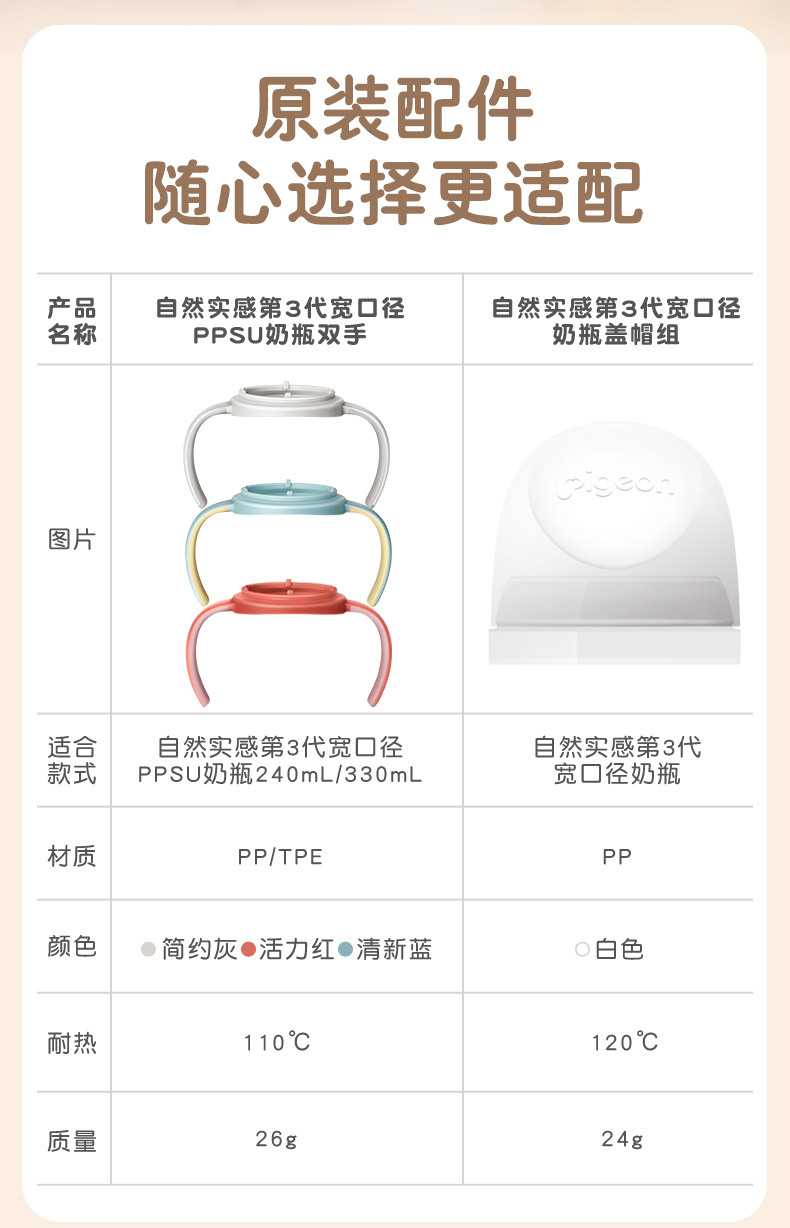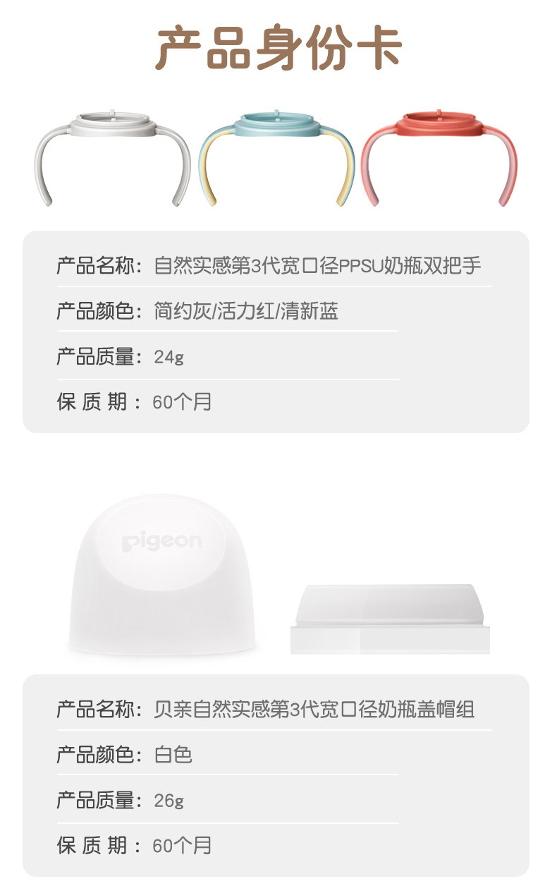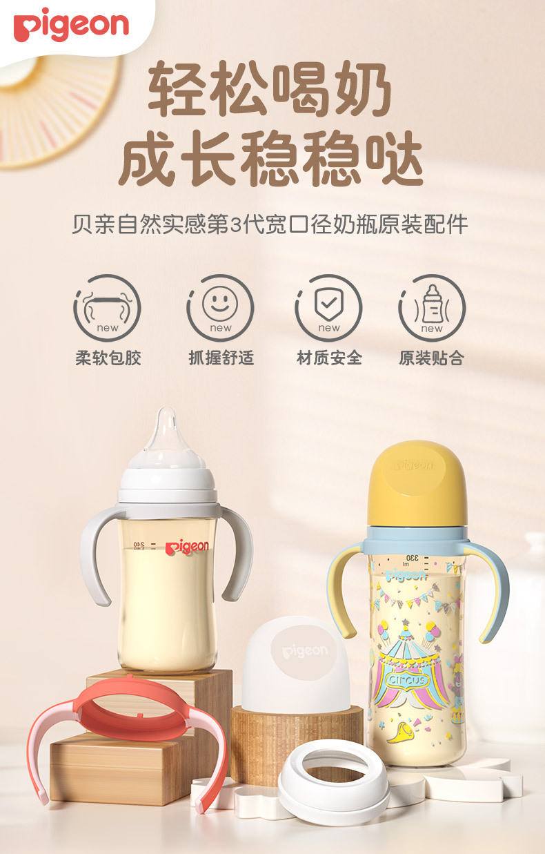 【贝亲原装配件】贝亲自然实感第3代宽口径PPSU奶瓶吸管/双把手柄/盖帽配件