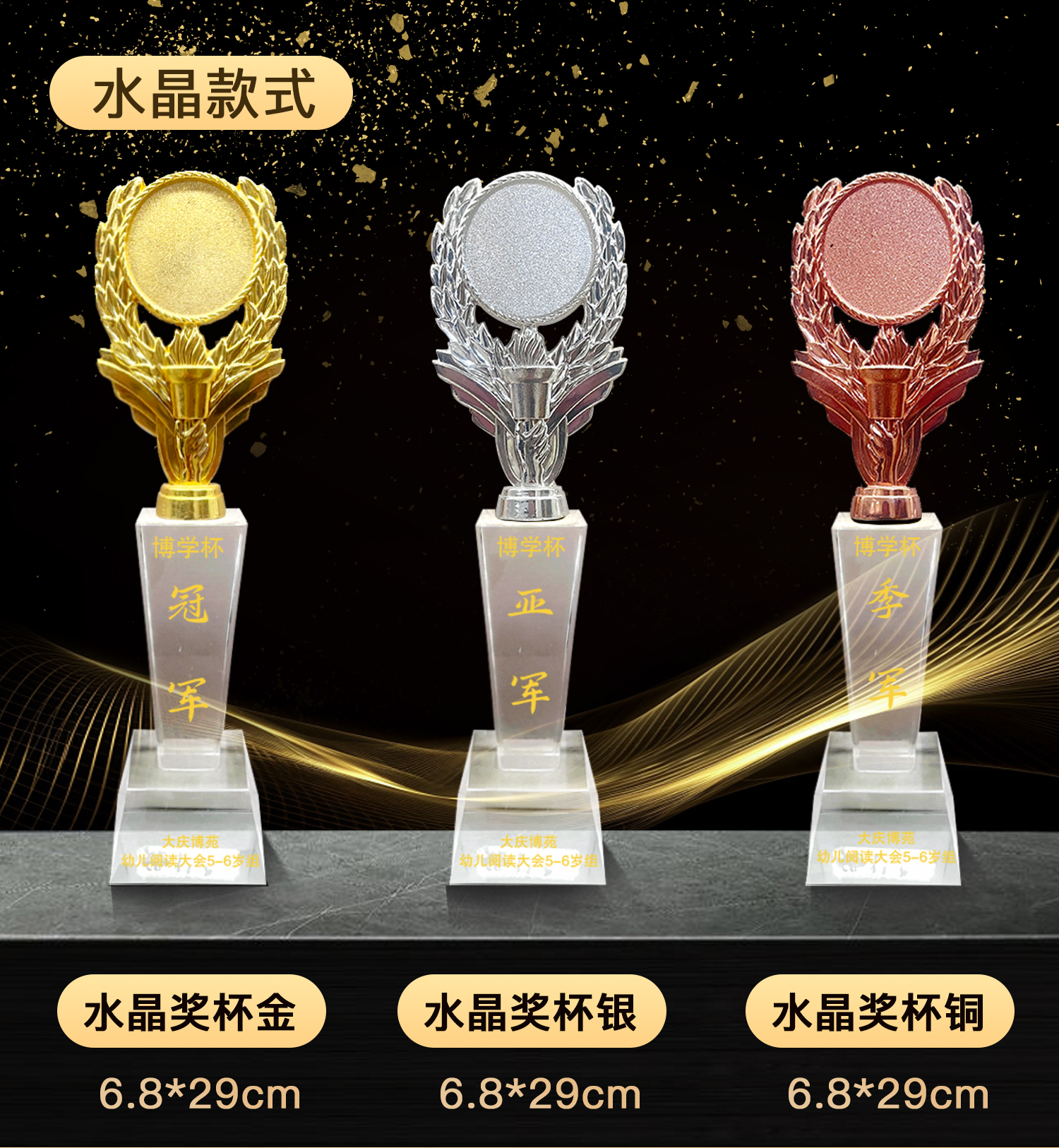 儿童水晶奖杯树脂奖杯(免费定制排版印字)
