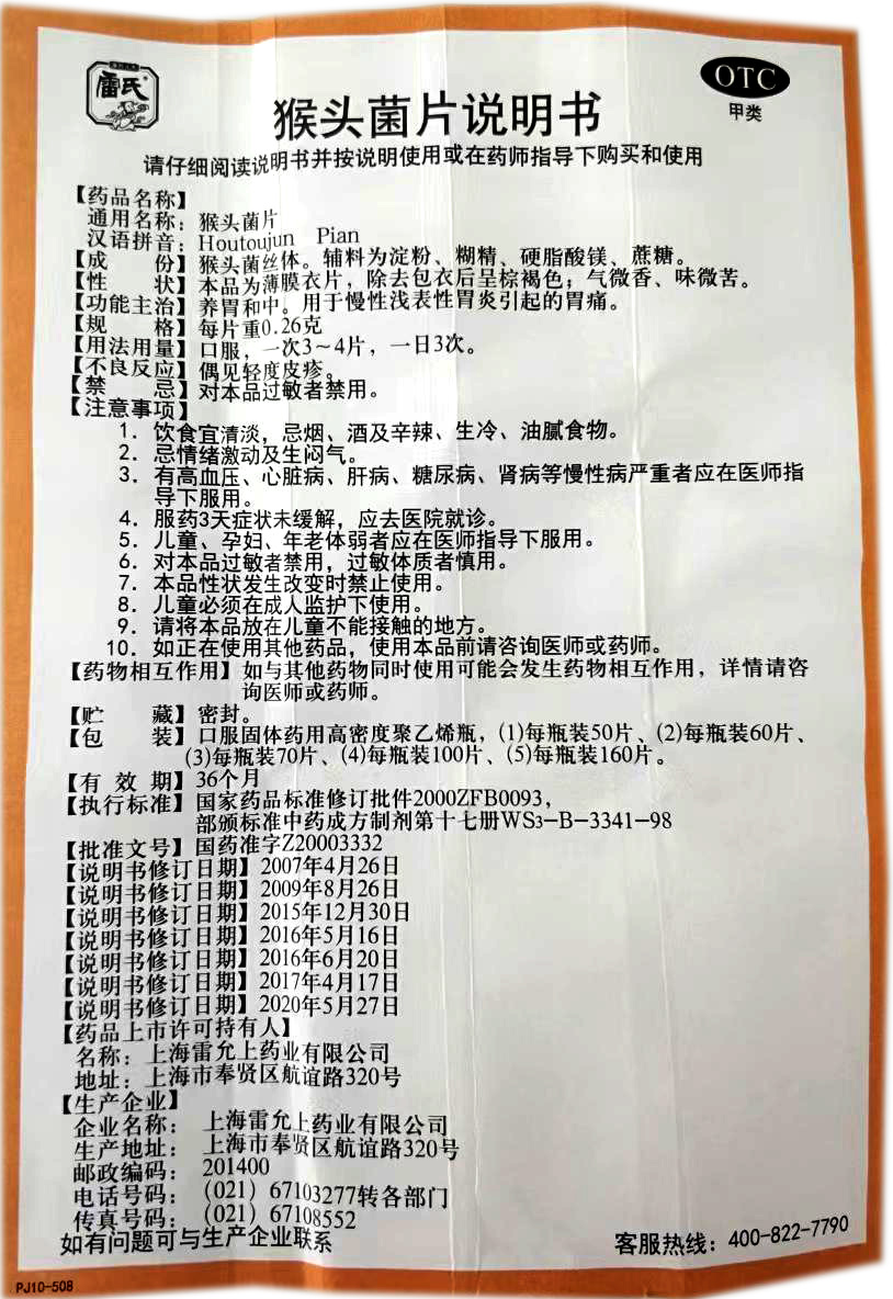 成份猴头菌丝体。辅料为淀粉、糊精、硬脂酸镁、蔗糖。