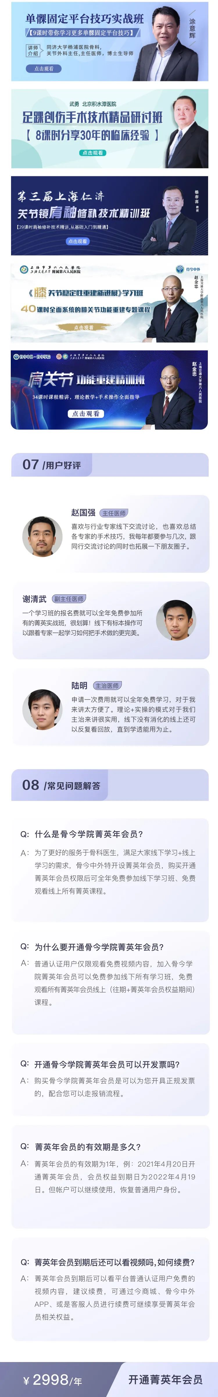 菁英年会员课程均出自线下学习班培训课程,内容涵盖理论知识、病例指导、手术演示等多方面,讲解方式方法紧跟临床需求,同时汇聚了名师的多年经验,有着极强的可参考性和可操作性,同时享有免费参与一年线下学习班的机会,既可以线下跟着学又可以线上时刻学,超低的价格,超值的权益,千万别错过!