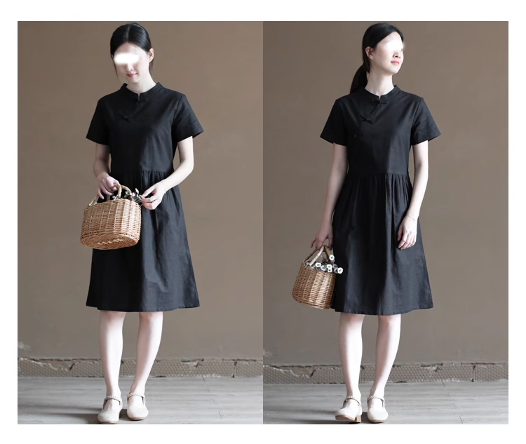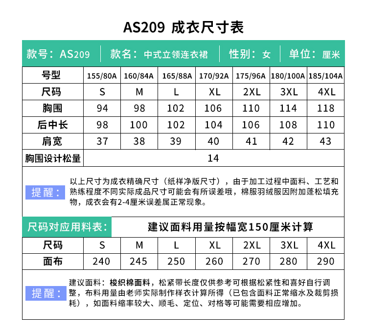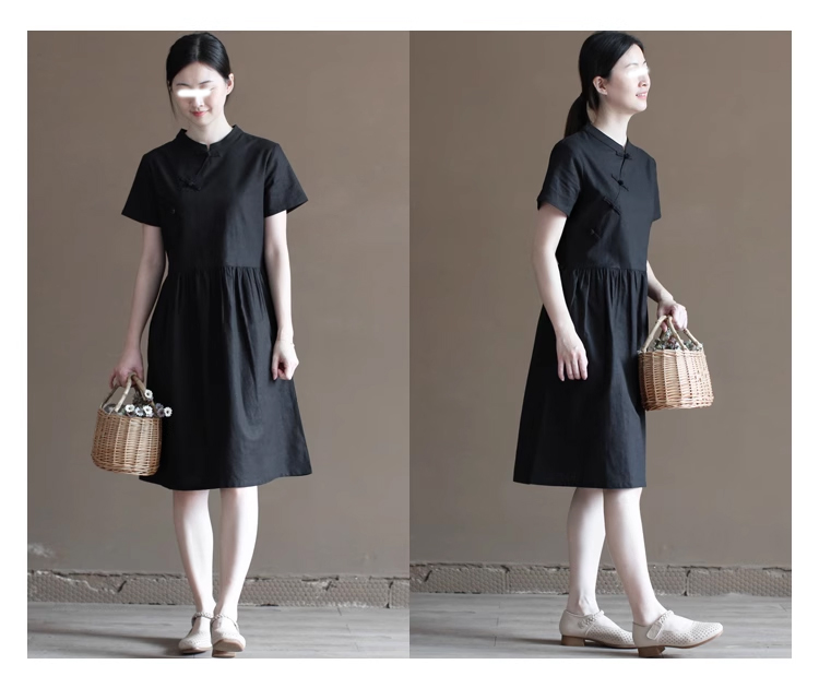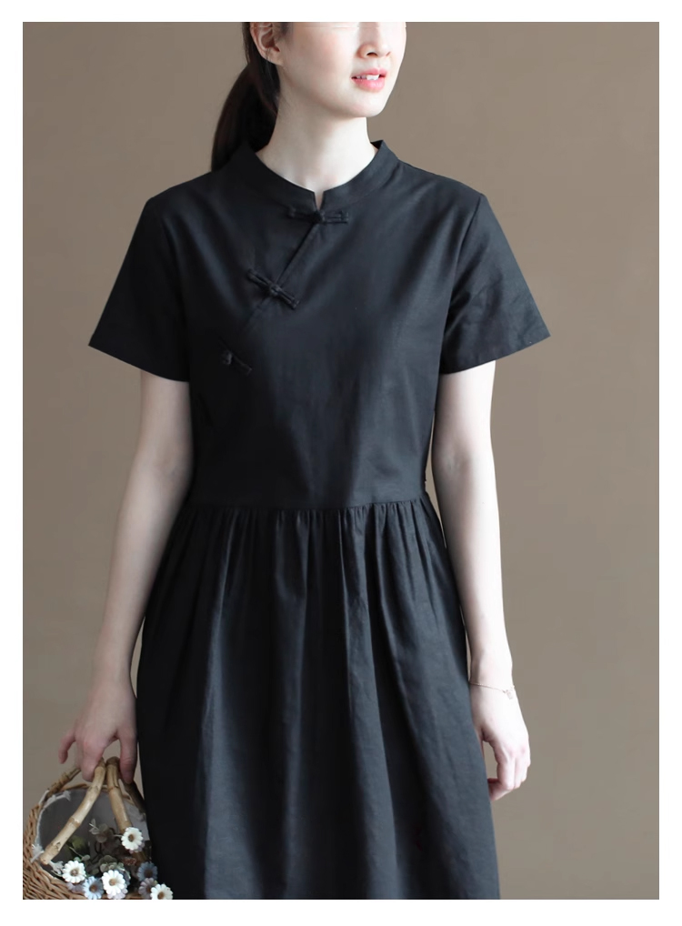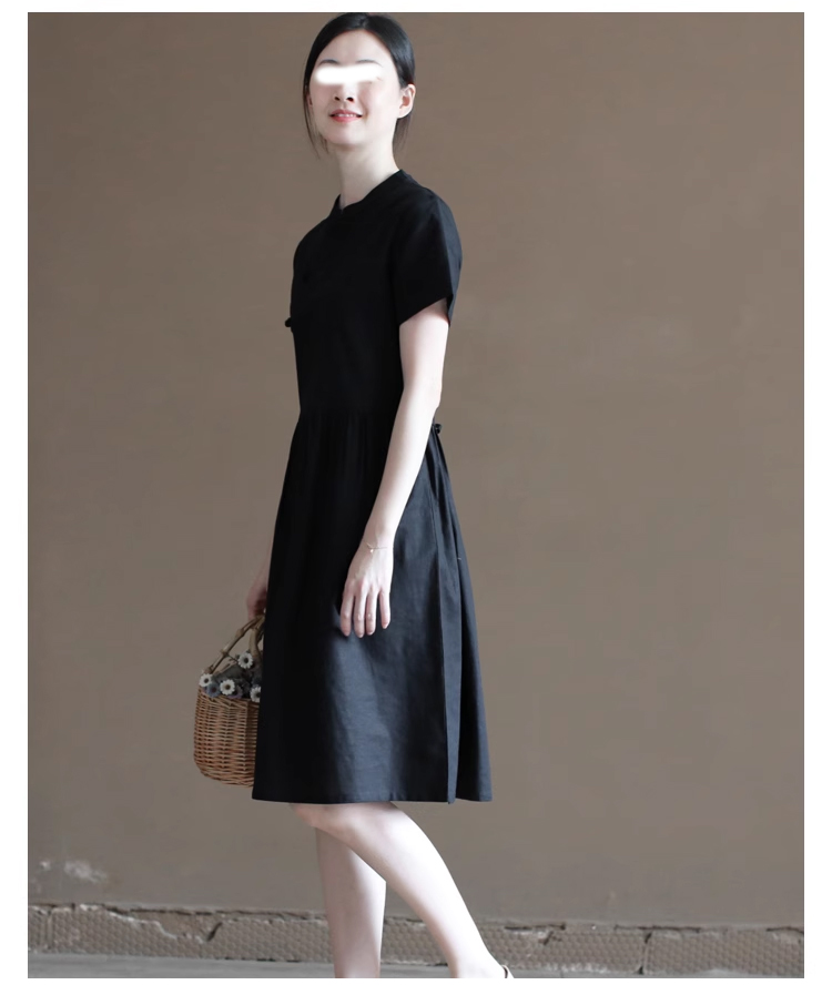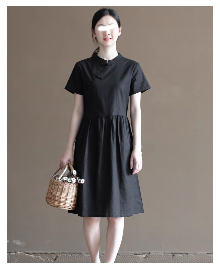 裁缝学苑AS209复古中式改良麻棉立领裙短袖a字连衣裙纸样女装裙子样板
