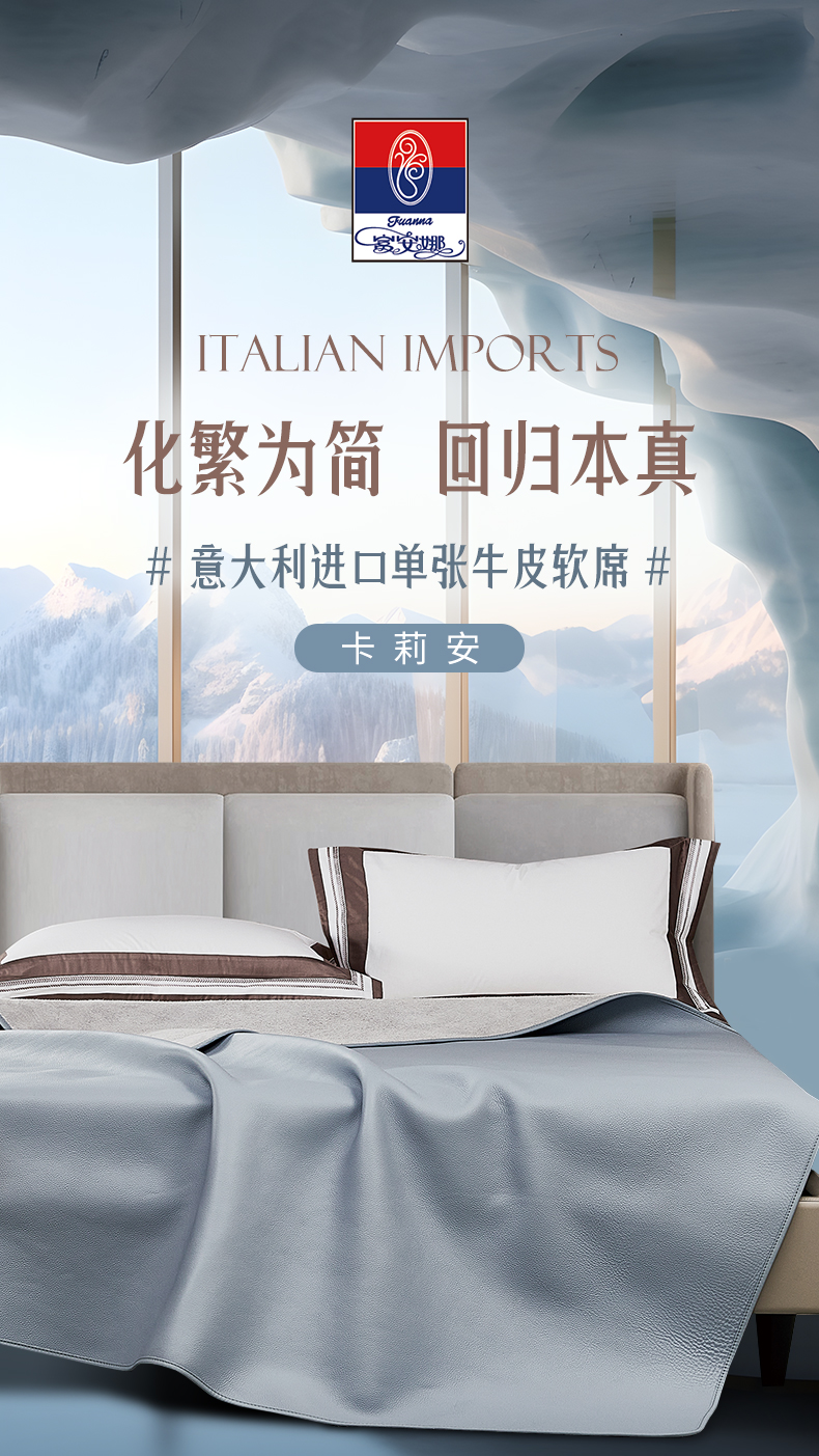 【春上新】【送2000元线下无门槛券]10楼 富安娜 牛皮软席/卡莉安/灰-蓝色19800元 活动价5999元