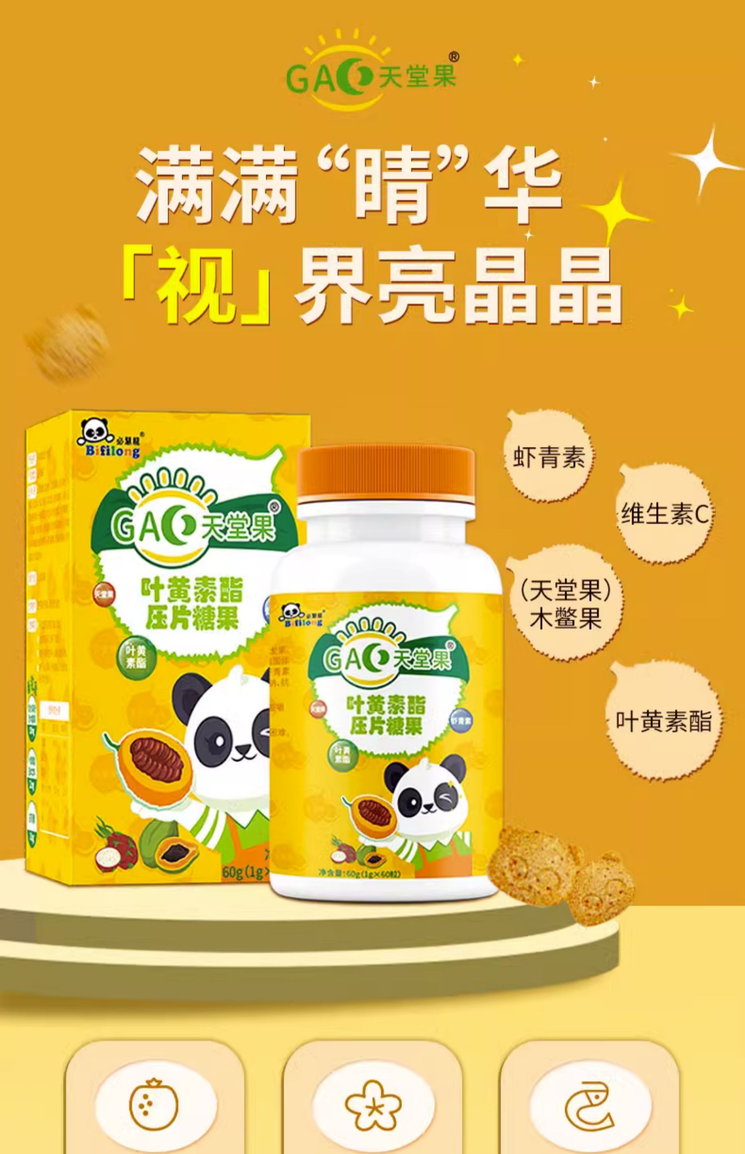 9楼母婴生活馆 4瓶送1瓶 必慧龙叶黄素酯咀嚼片木鳖果护眼保护干涩疲劳60粒 吊牌价:128元 活动价:128元1瓶 512元4瓶送1瓶