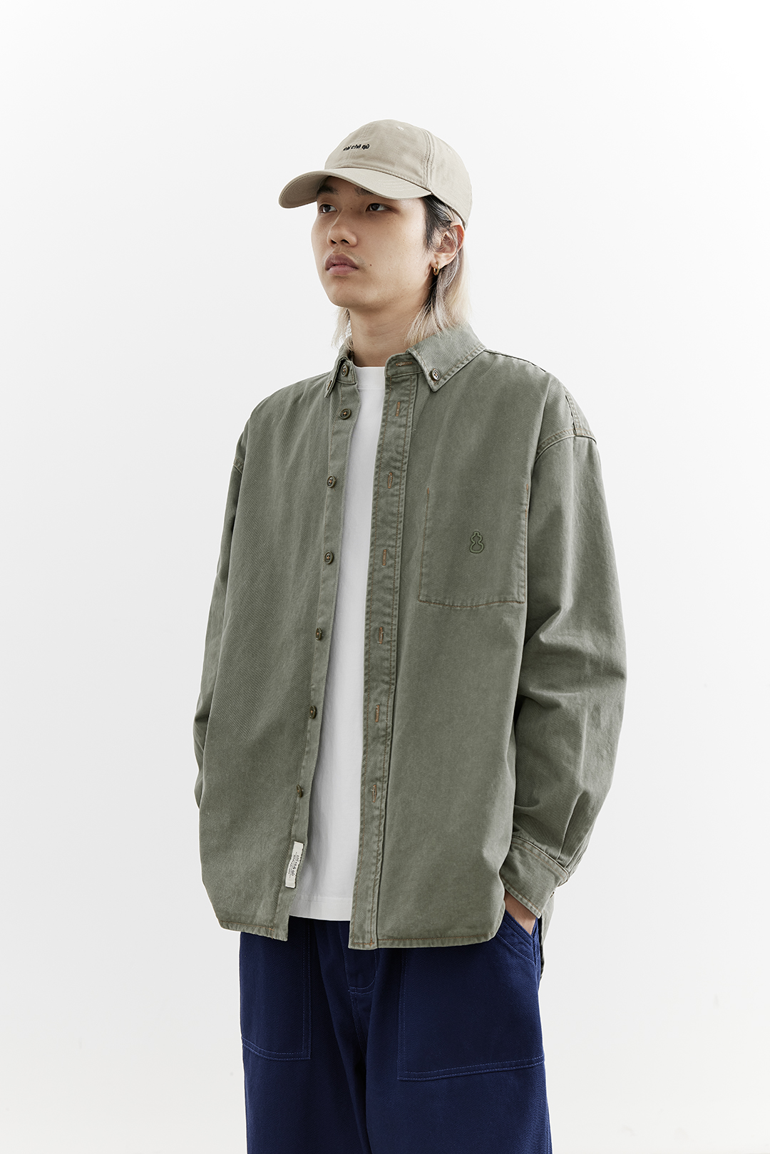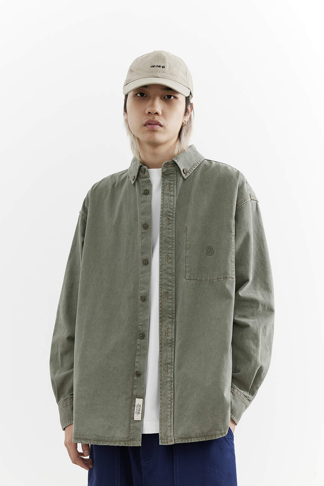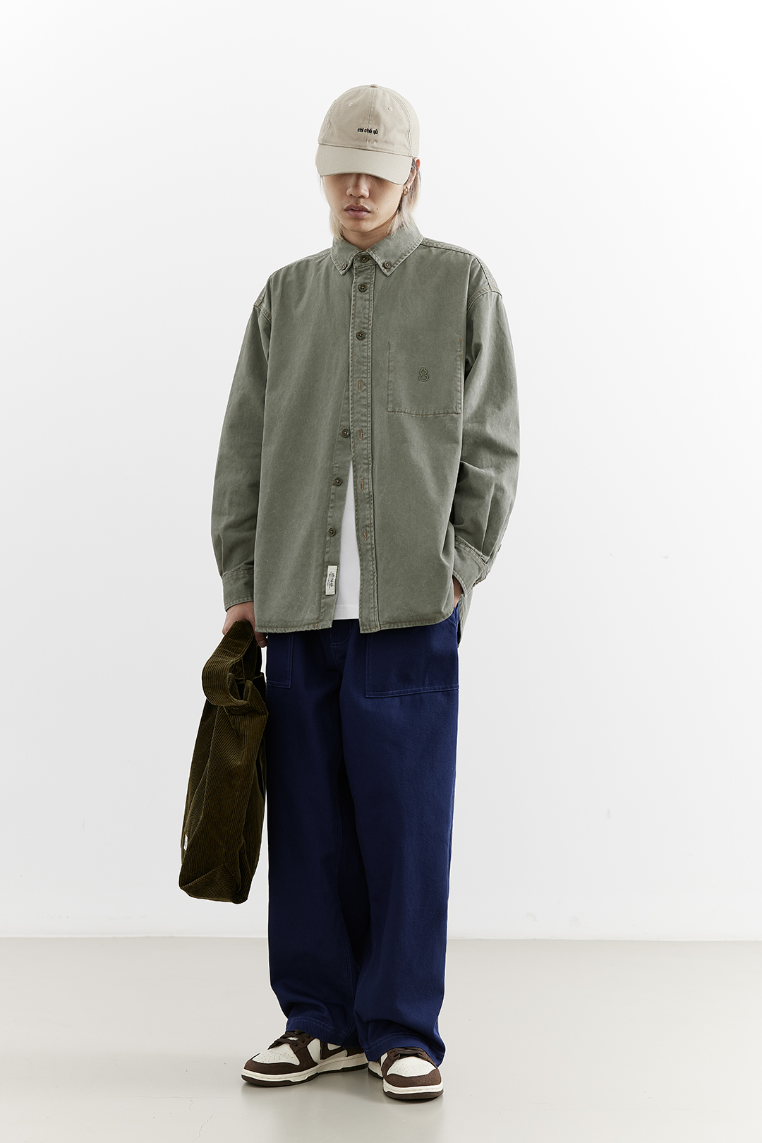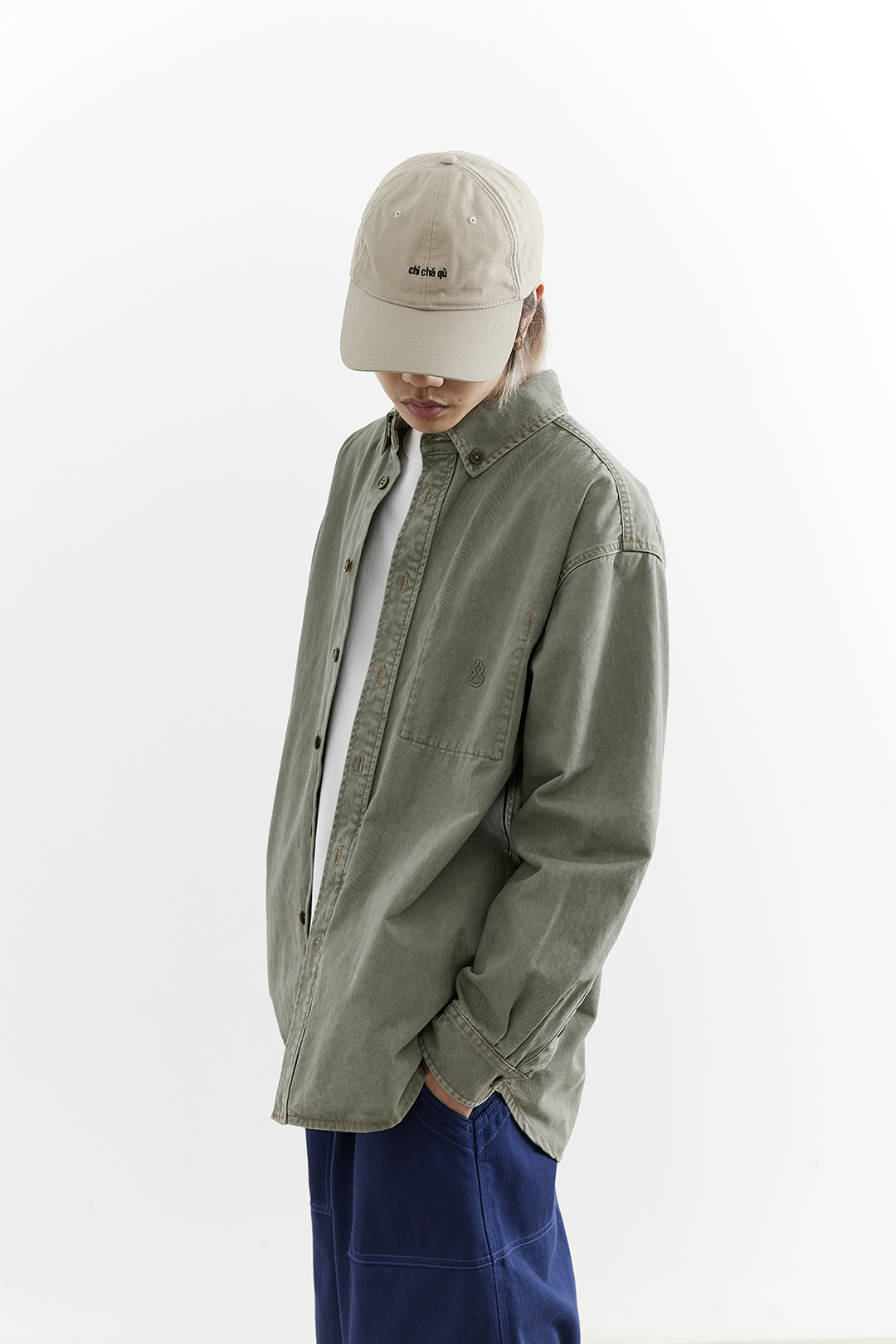 吃茶去chichaqu25全棉重磅洗水做旧长袖衬衫复古宽松街头休闲百搭