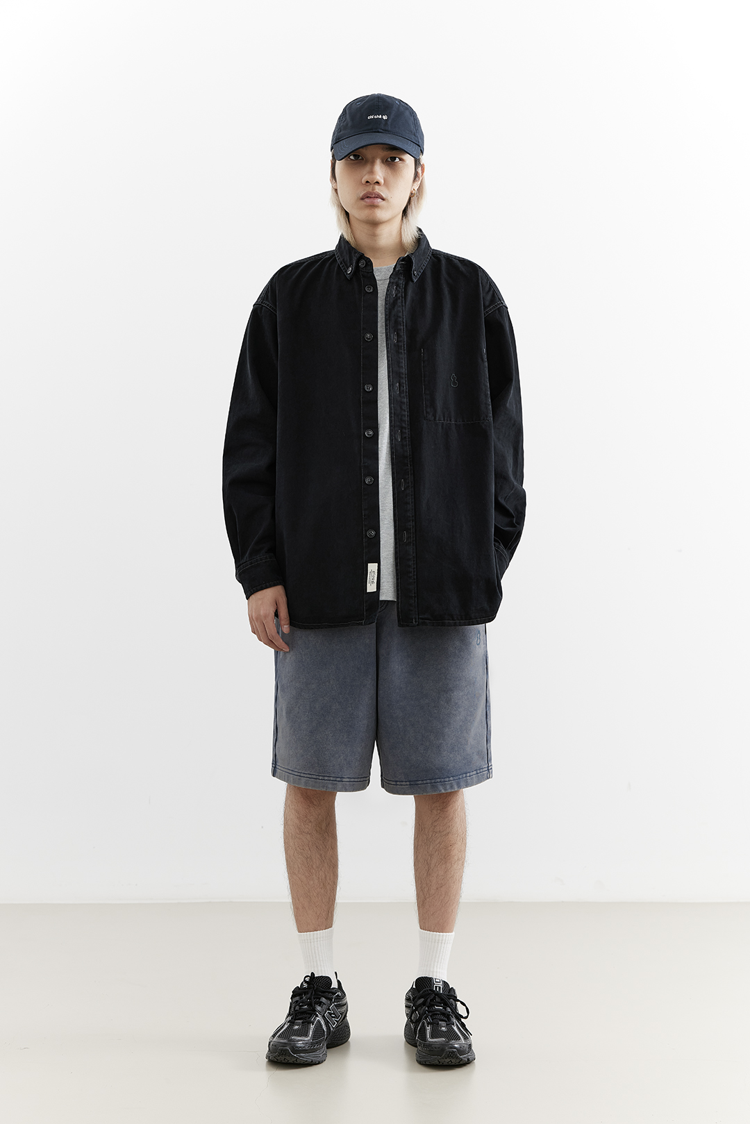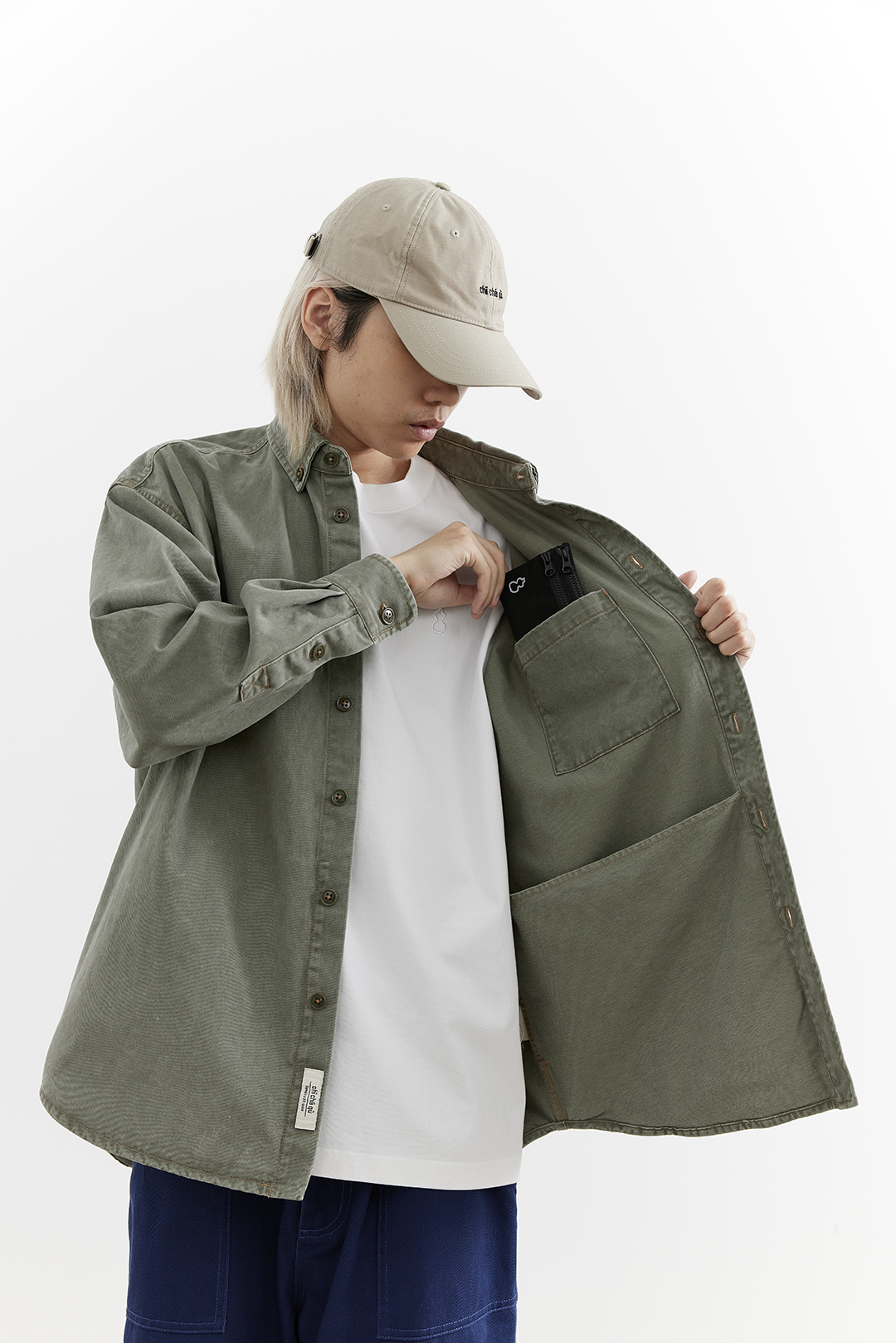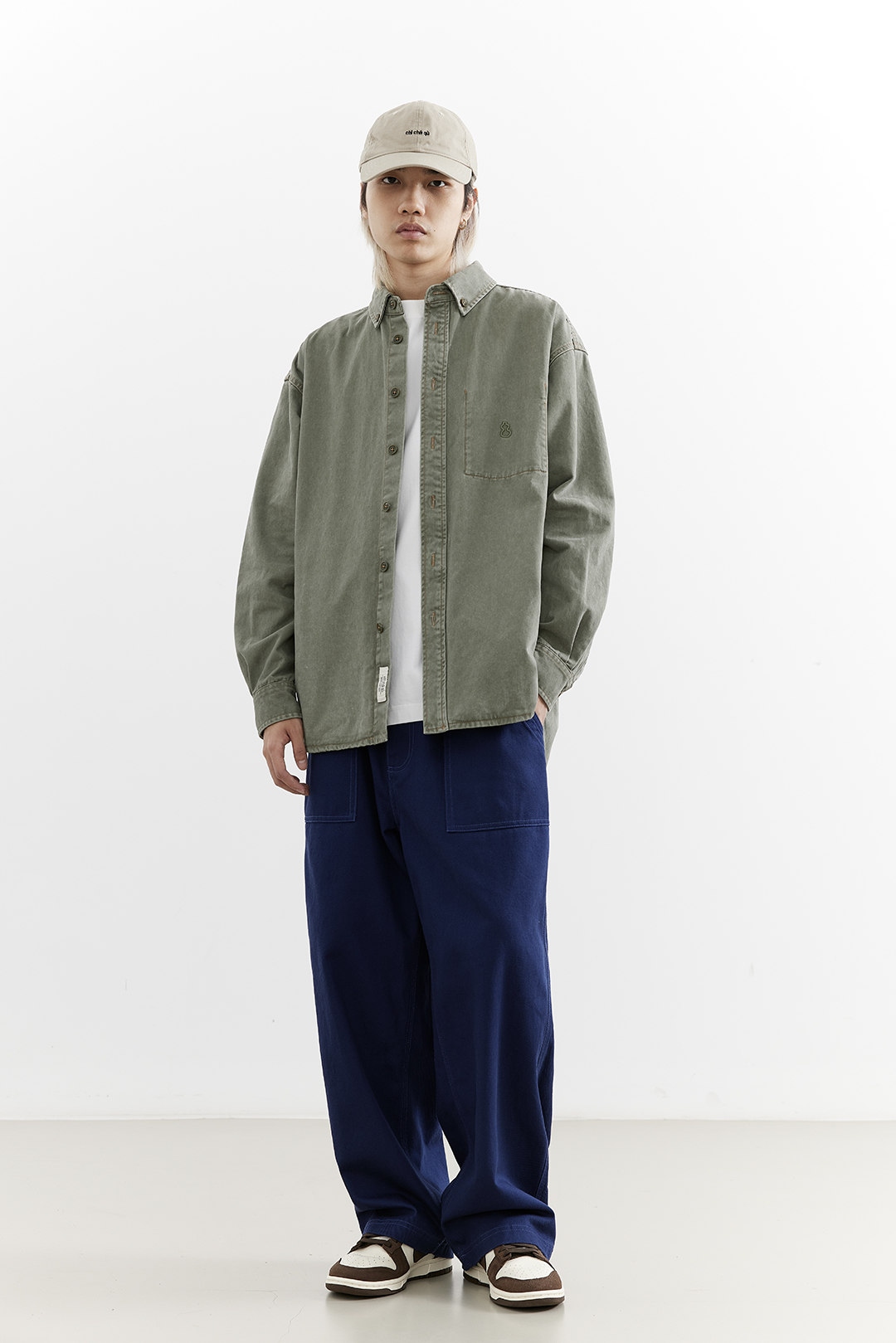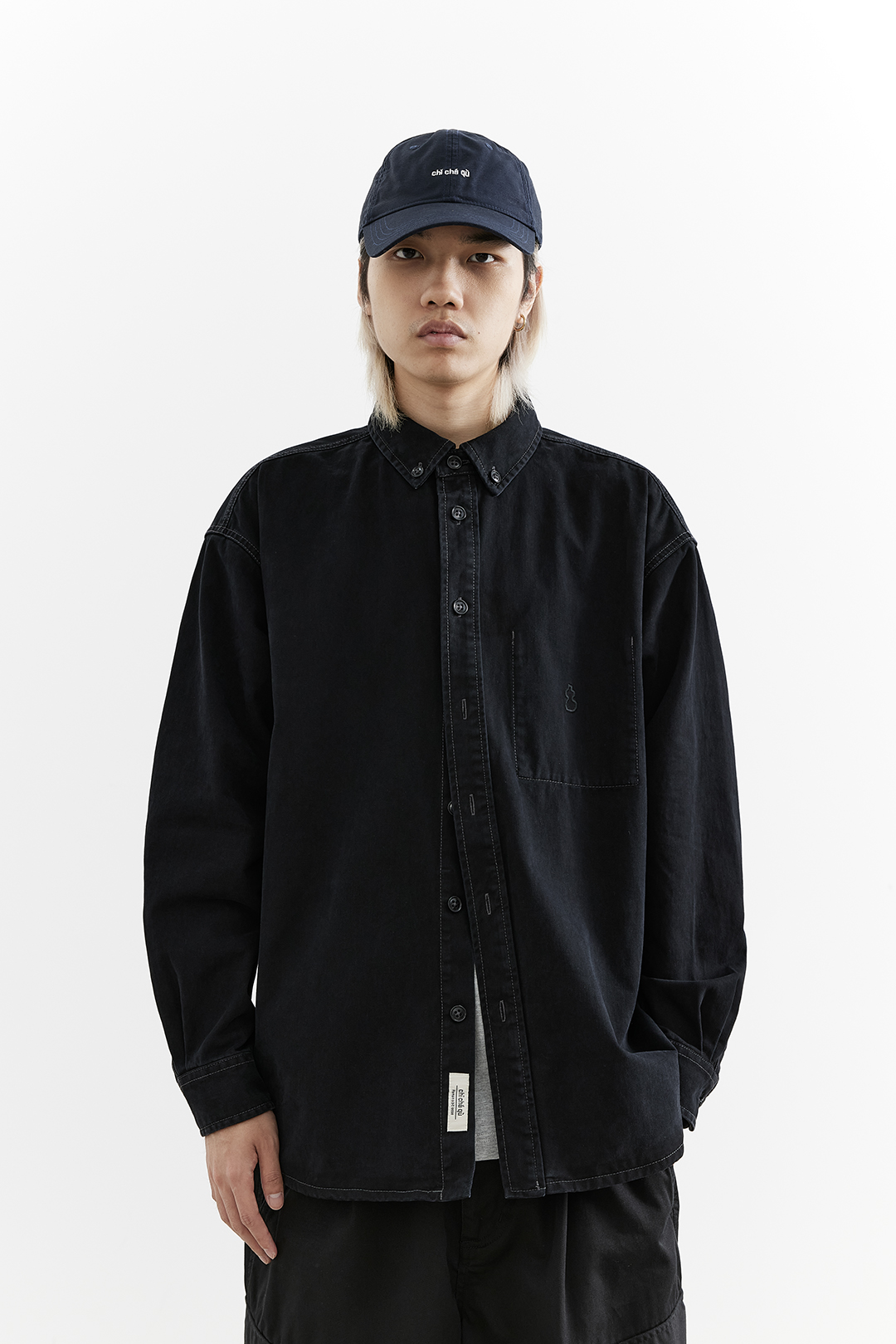 吃茶去chichaqu25全棉重磅洗水做旧长袖衬衫复古宽松街头休闲百搭